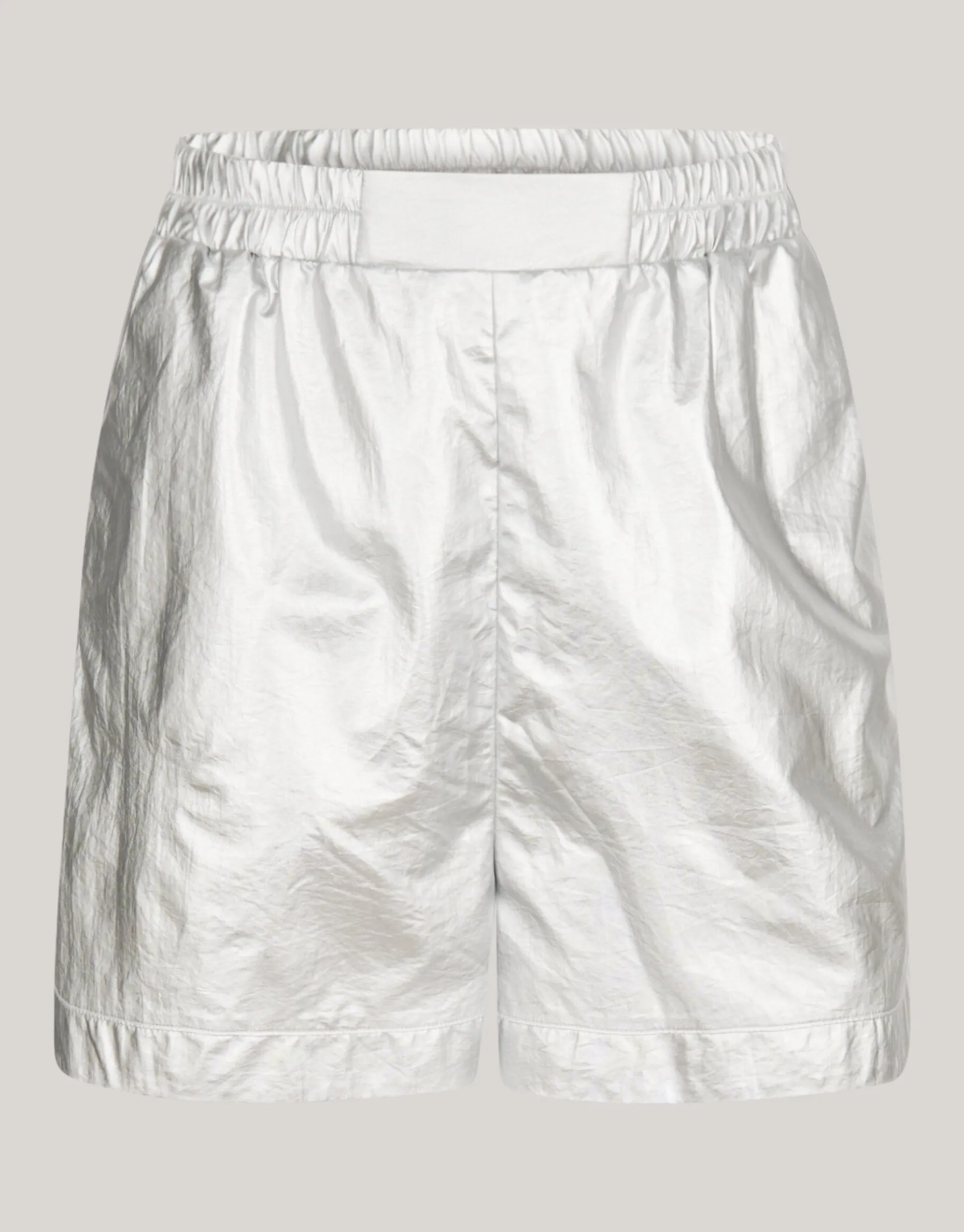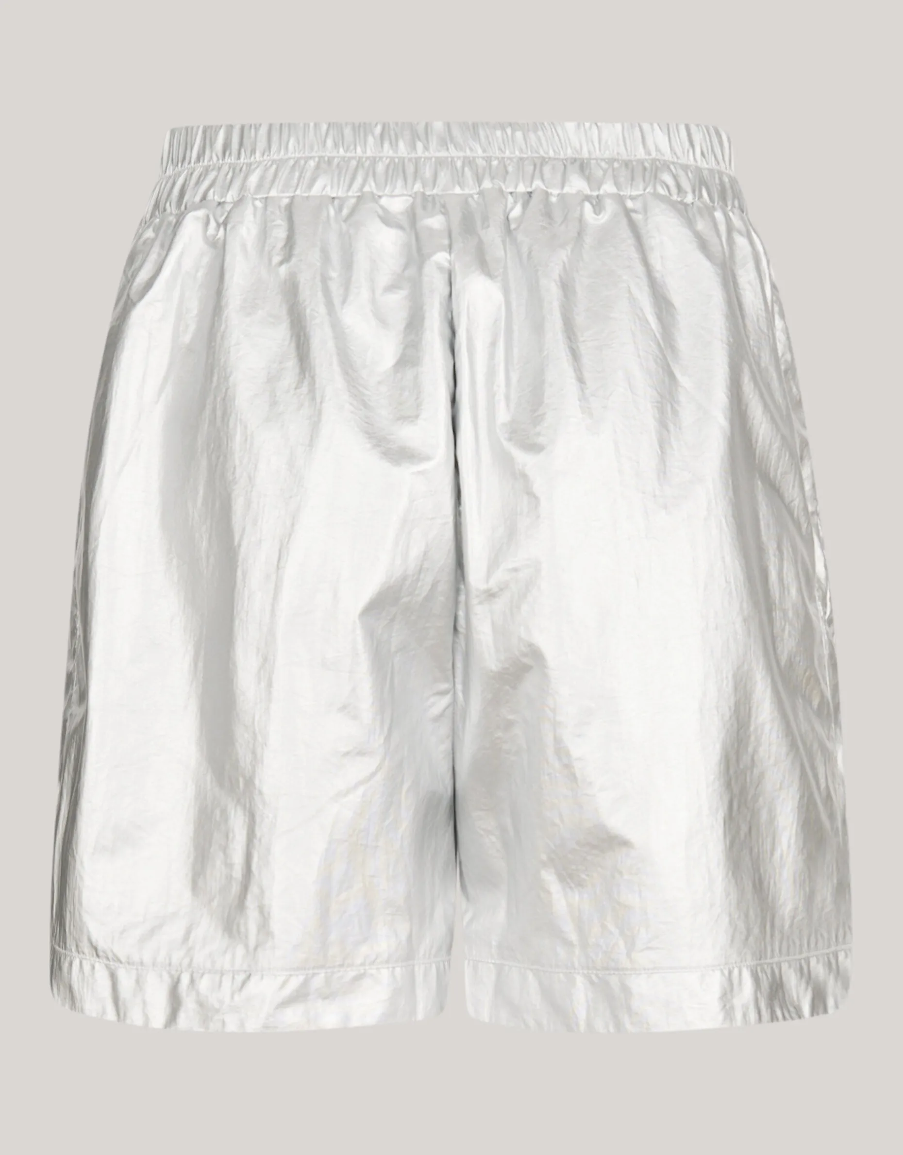 Musthave! De Zilveren Short heeft een regular fit, korte broekspijpjes en een elastische tailleband. Het item wordt gekenmerkt door de metallic zilveren kleur. Verder is het shortje gemaakt van polyamide. Hierdoor is het sterk van kwaliteit, vormvast en kreukt het niet.