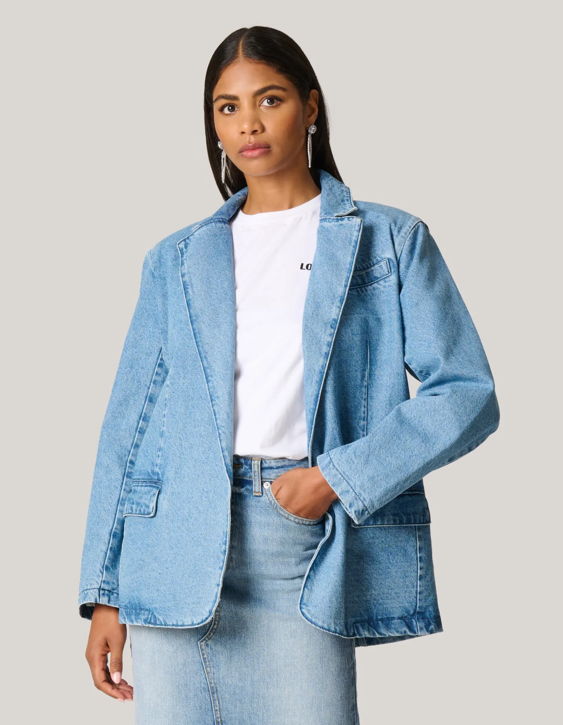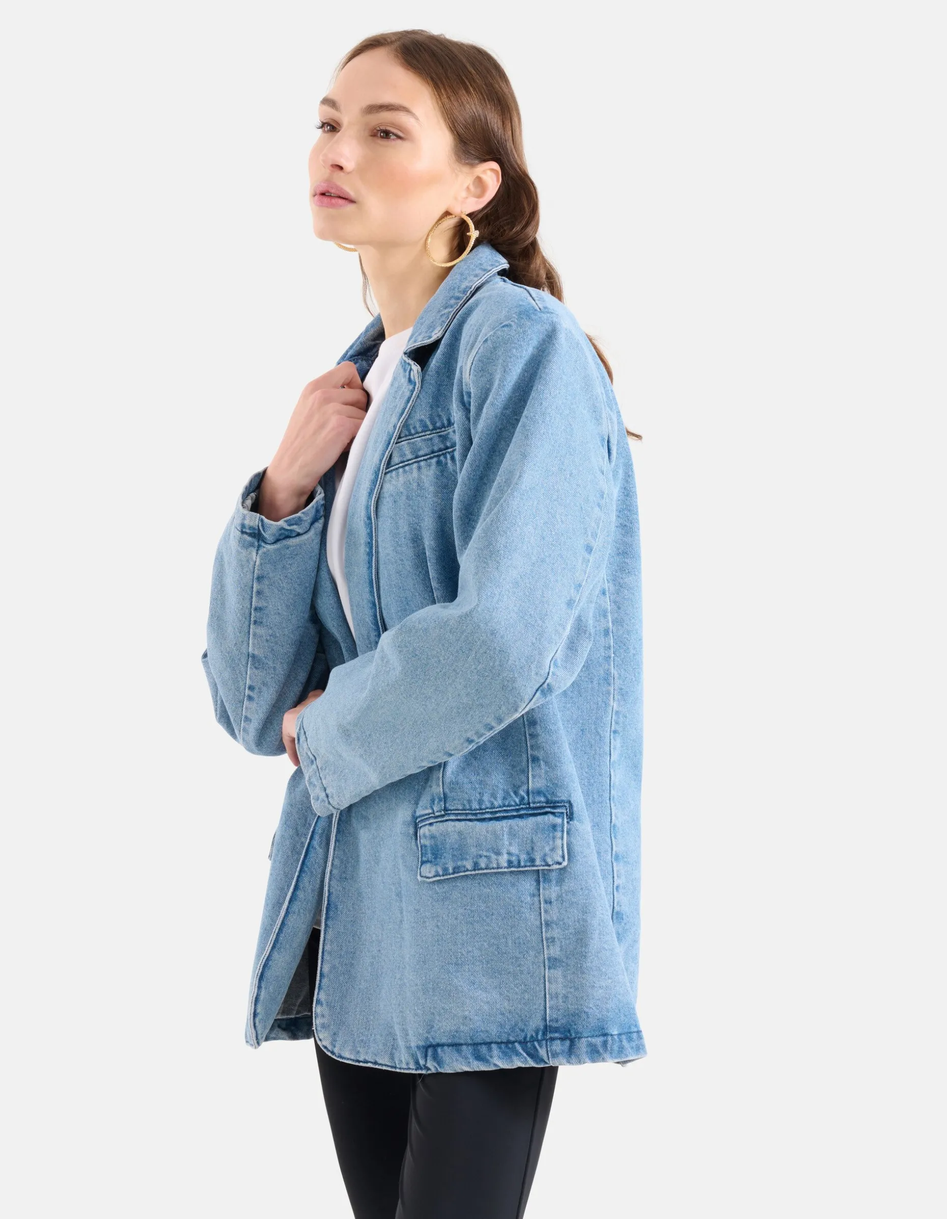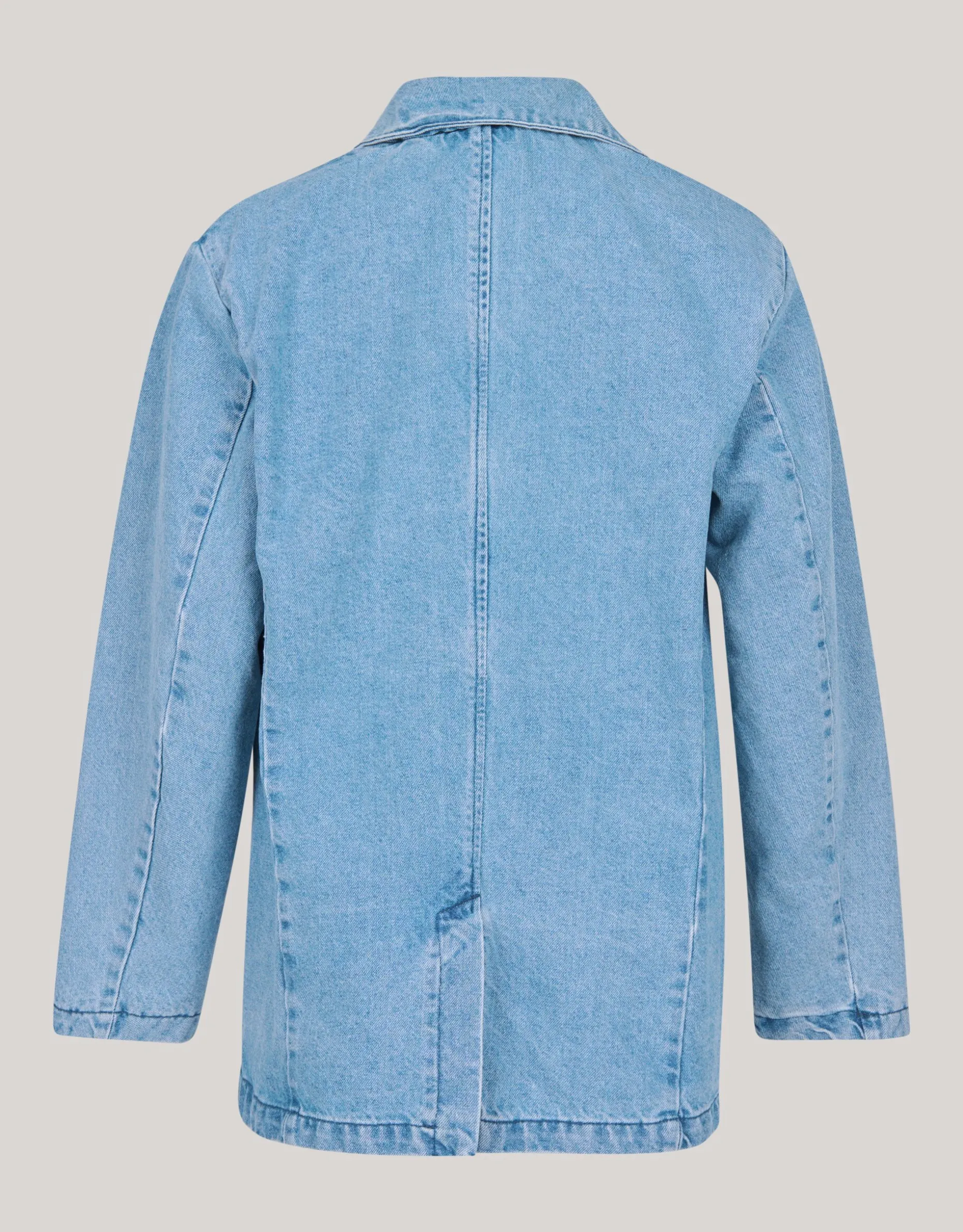 Stap in de spotlight met deze stoere denim blazer! De oversized pasvorm en de lange rechte mouwen geven je een relaxte en trendy uitstraling. De klassieke denim stijl met een twist geeft je de vrijheid om je eigen unieke stijl te laten zien, terwijl je toch comfortabel blijft dankzij de ruime pasvorm.Deze denim blazer is perfect voor diegenen die op zoek zijn naar een moeiteloze stijl die past bij elke casual gelegenheid. De bleached kleur voegt een vleugje vintage charme toe, terwijl de lange mouwen je warm houden op frissere dagen. Of je het nu combineert met een simpele jeans en een t-shirt of over een jurkje draagt, deze blazer geeft je look een instant upgrade. Met zijn relaxte en toch trendy uitstraling, is deze denim blazer een must-have item voor je garderobe! De blazer is gemaakt van 100% katoen.