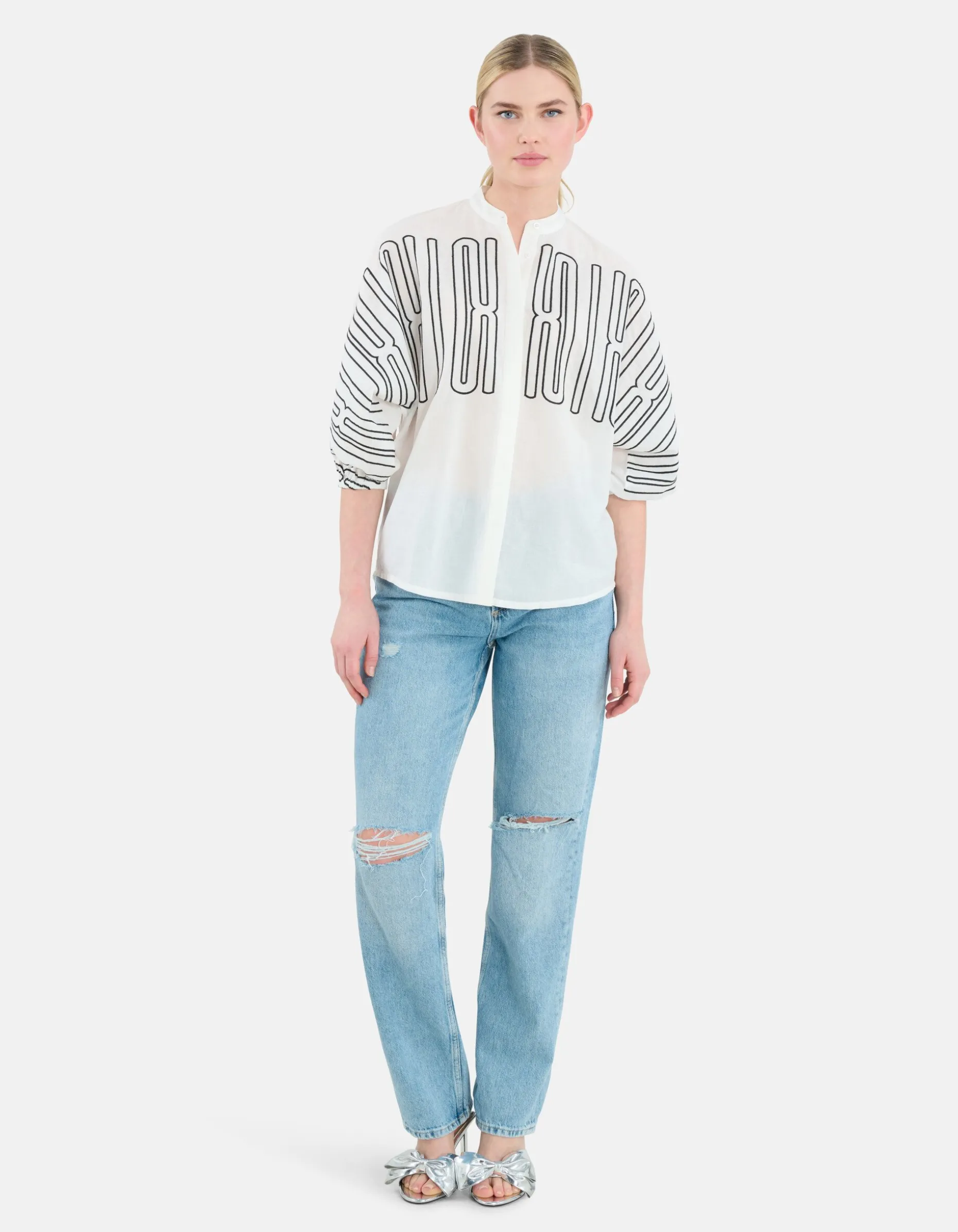 Signature patterns! De Patch Blouse heeft lange mouwen, een hoge hals, een non-stretch stof, een knoopsluiting en een relaxed fit. Het item wordt gekenmerkt door de witte kleur met een opvallende grafische patch borduursel op de voorzijde. Verder is de blouse licht transparant. Wil je dit liever niet? Combineer het dan een witte Shoeby basis tanktop voor eronder. Combineer het samen met een wide leg jeans en je bent good to go!