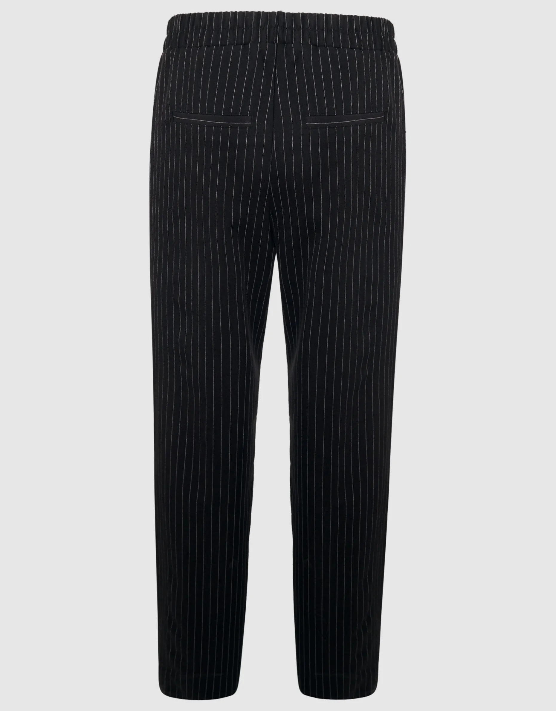 Iconic! De Pinstripe Wide Leg Broek Zwart heeft een wide leg leg, high-stretch stof, elastische taiileband en een zwarte kleur. Verder wordt de broek gekenmerkt door het streepjes patroon. Het model heeft een lengte van 176 cm en draagt een maat S. De broek heeft een binnenbeenlengte van 82 cm bij een maat S. De broek is gemaakt van polyester, viscose en elastaan. Deze samenstelling zorgt ervoor dat de broek sterk van kwaliteit, vormvast en subtiel rekbaar is. Draag de broek samen met de accessoires van Shoeby voor een complete look!