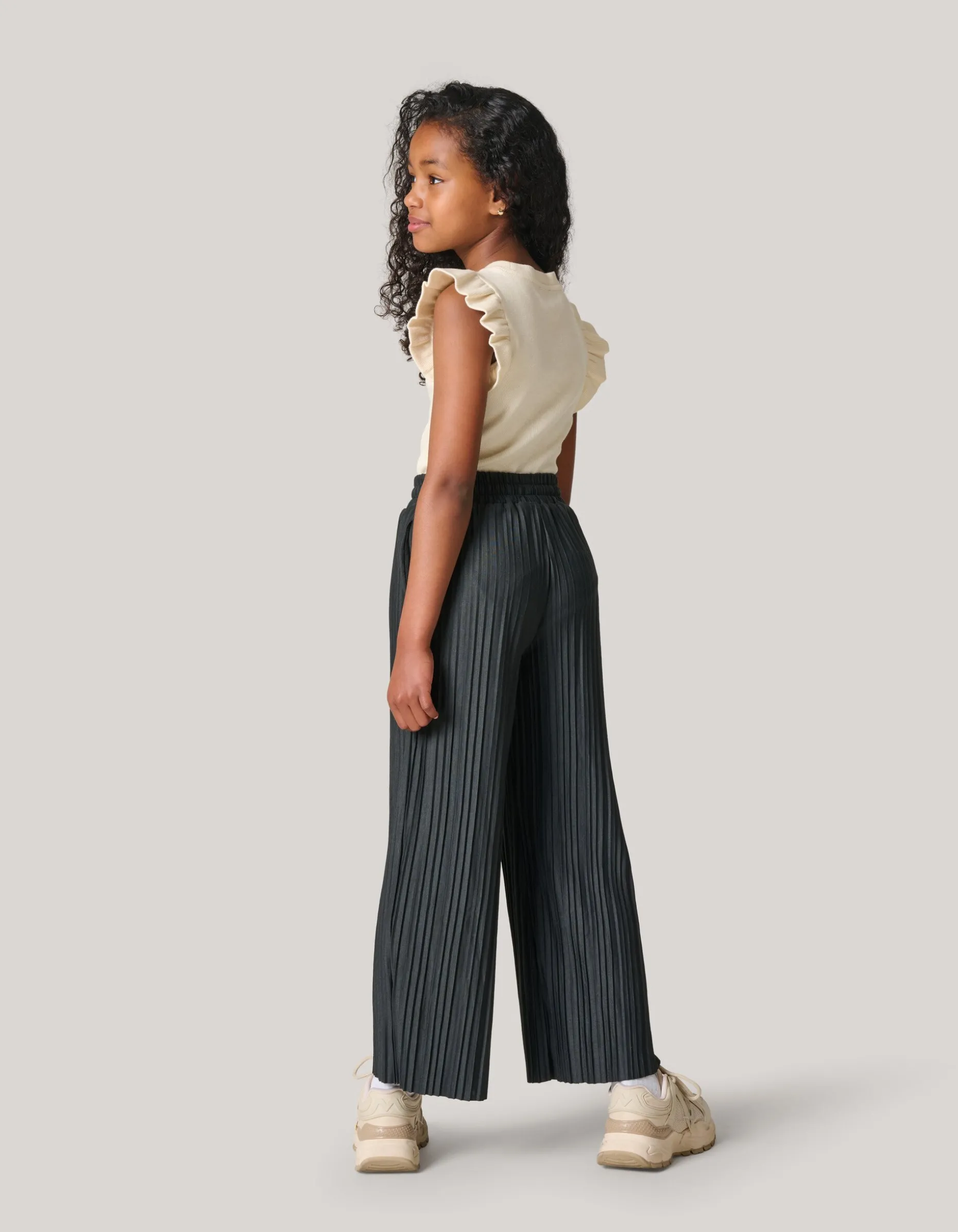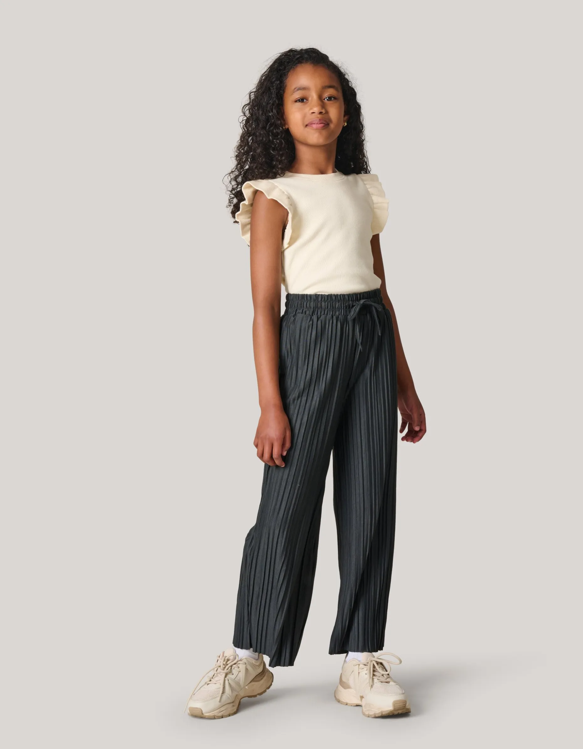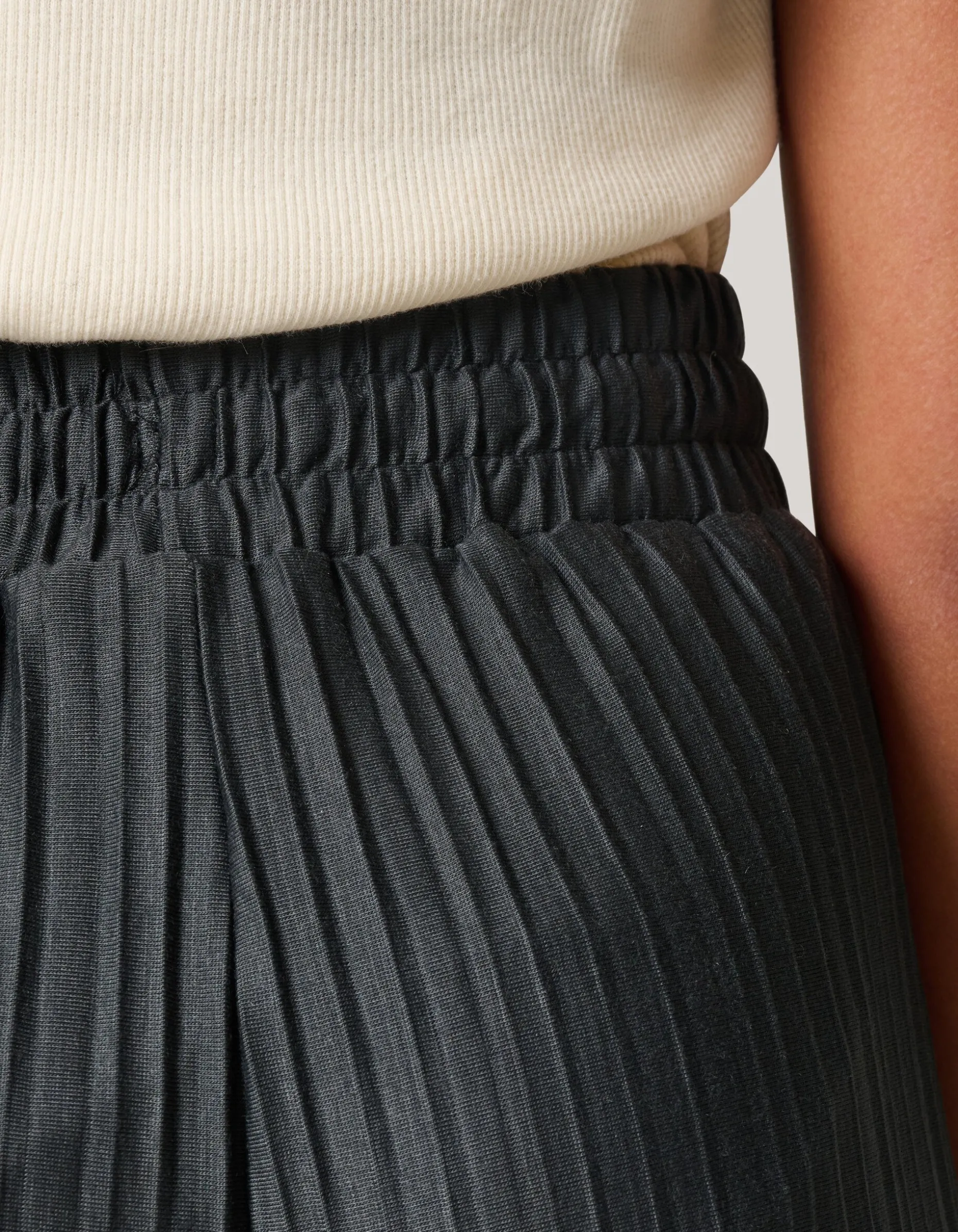 When comfy meets stylish! De Plissé Broek Donkergrijs heeft een hoge taille, een loose fit en een kortere lengte. Het item wordt gekenmerkt door de donkergrijze kleur en de plisse stof. Met een plissé zijn er plootjes verwerkt in de stof, waardoor de broek een speels effect krijgt. Verder kan je door middel van de aansnoerkoord de broek sluiten. De broek is gemaakt van polyester en elastaan. Door deze samenstelling is het vormvast, rekbaar, sterk van kwaliteit en comfortabel.