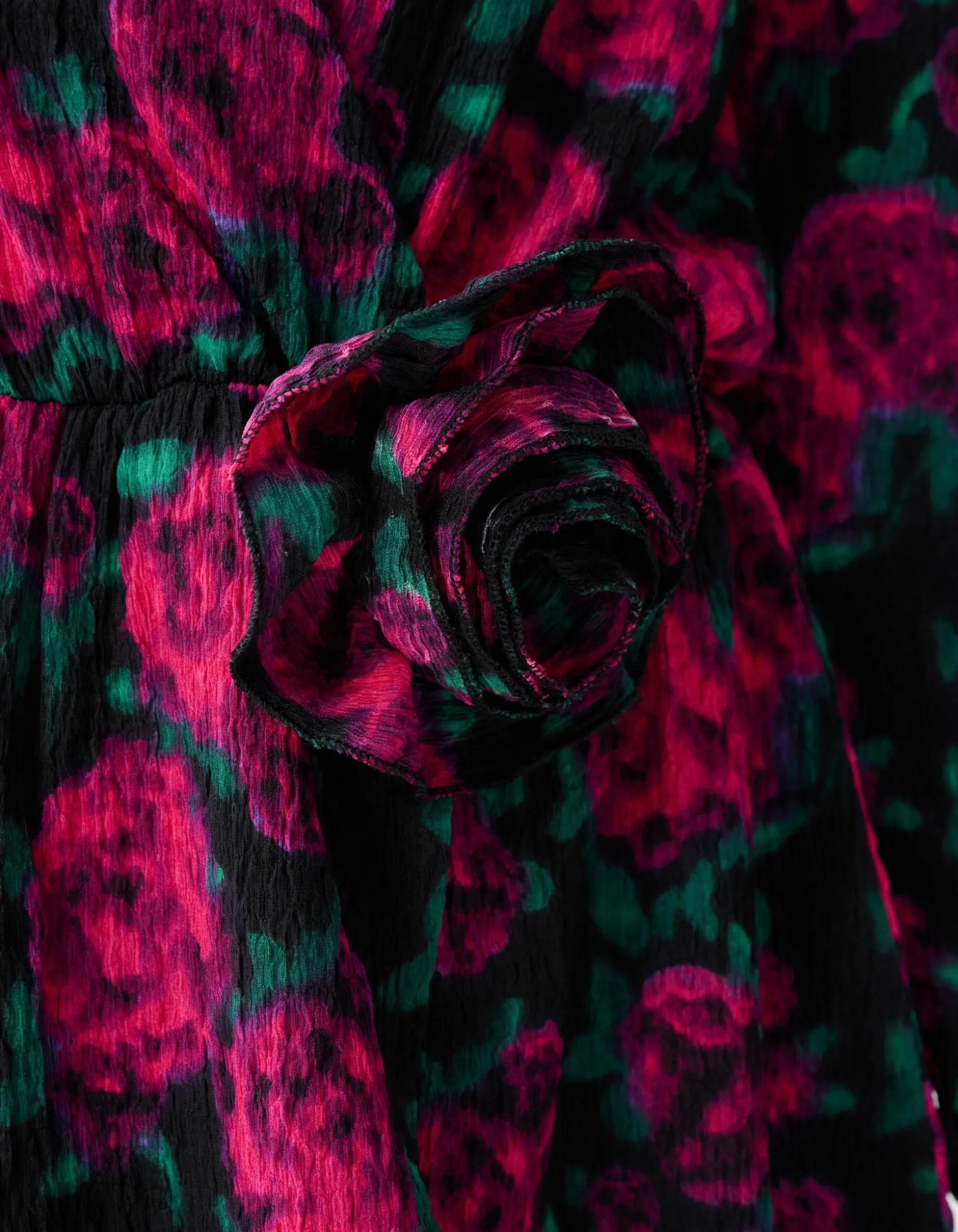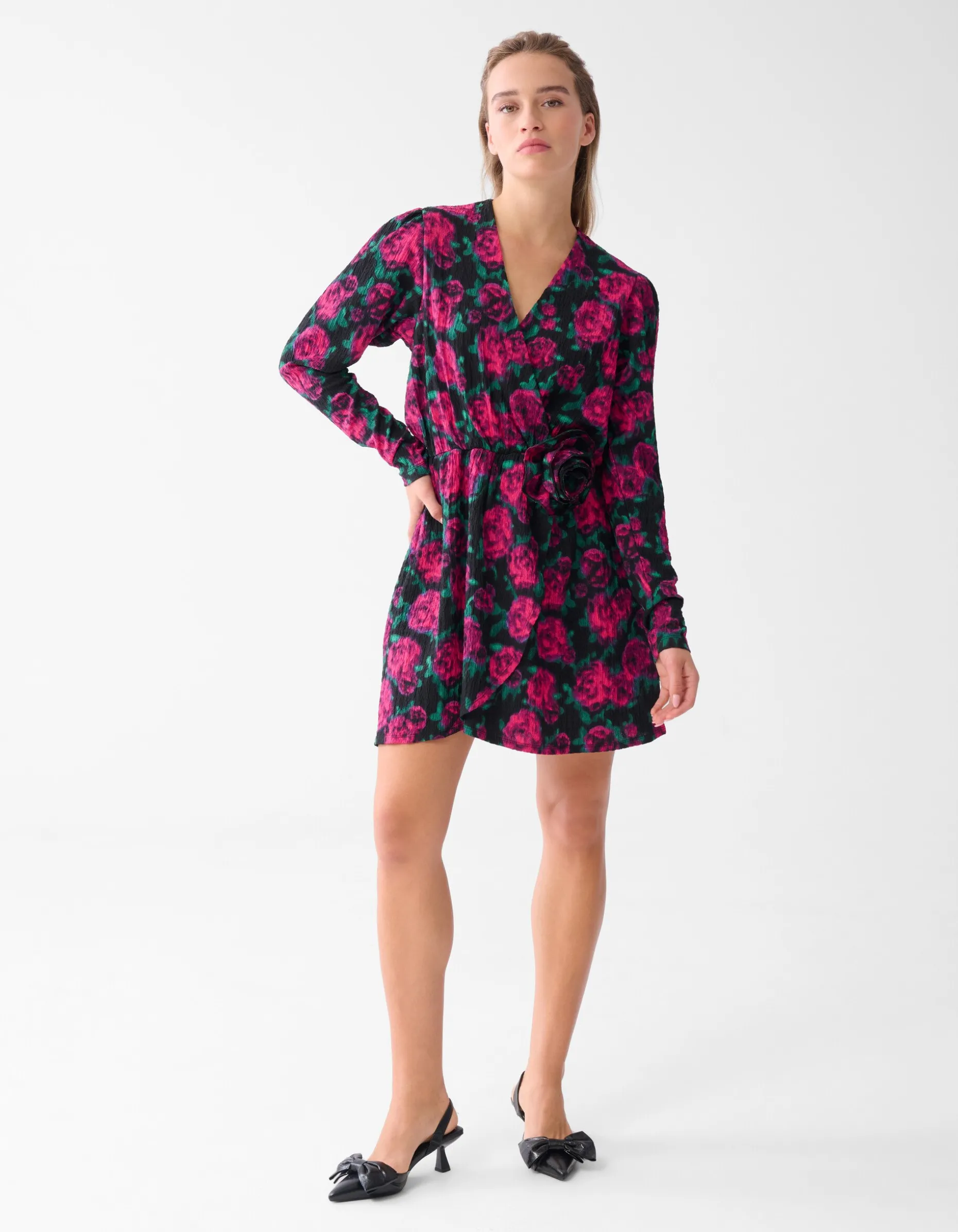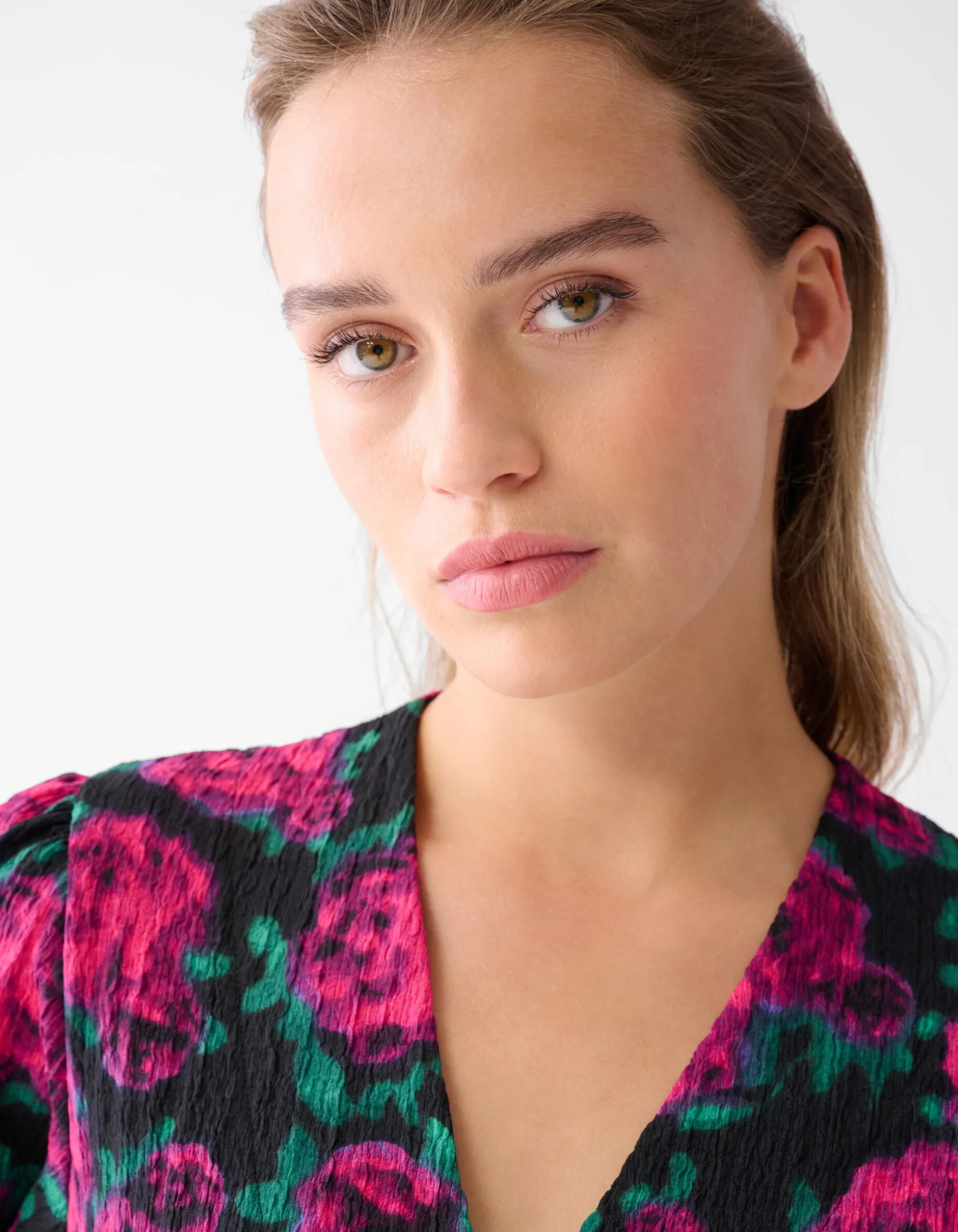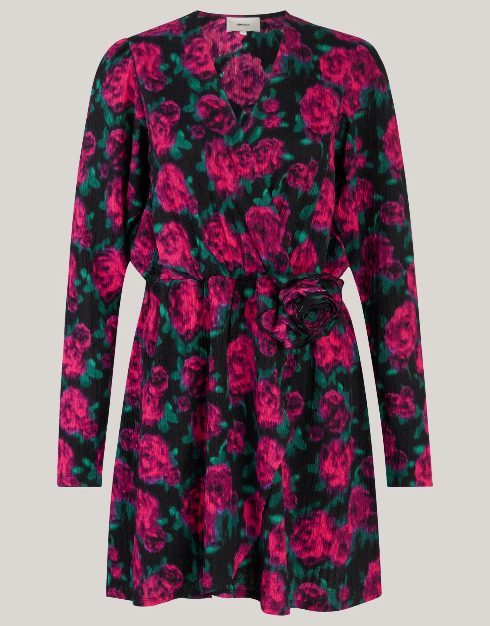 Musthave! De Printed Crinkle Jurk Zwart heeft een v-hals, lange mouwen, regular fit, en een pof detail bij de mouwen. Verder wordt het gekenmerkt door de all-over rozen print en een roos bij de elastische tailleband van de jurk . De jurk is gemaakt van polyester en elastaan. Deze samenstelling zorgt ervoor dat de top sterk van kwaliteit, vormvast en subtiel rekbaar is. De jurk heeft een totale lengte van 91 cm bij een maat S. Het model heeft een lengte van 172 cm bij een maat S. Combineer de jurk met de accessoires van Shoeby voor een complete look!