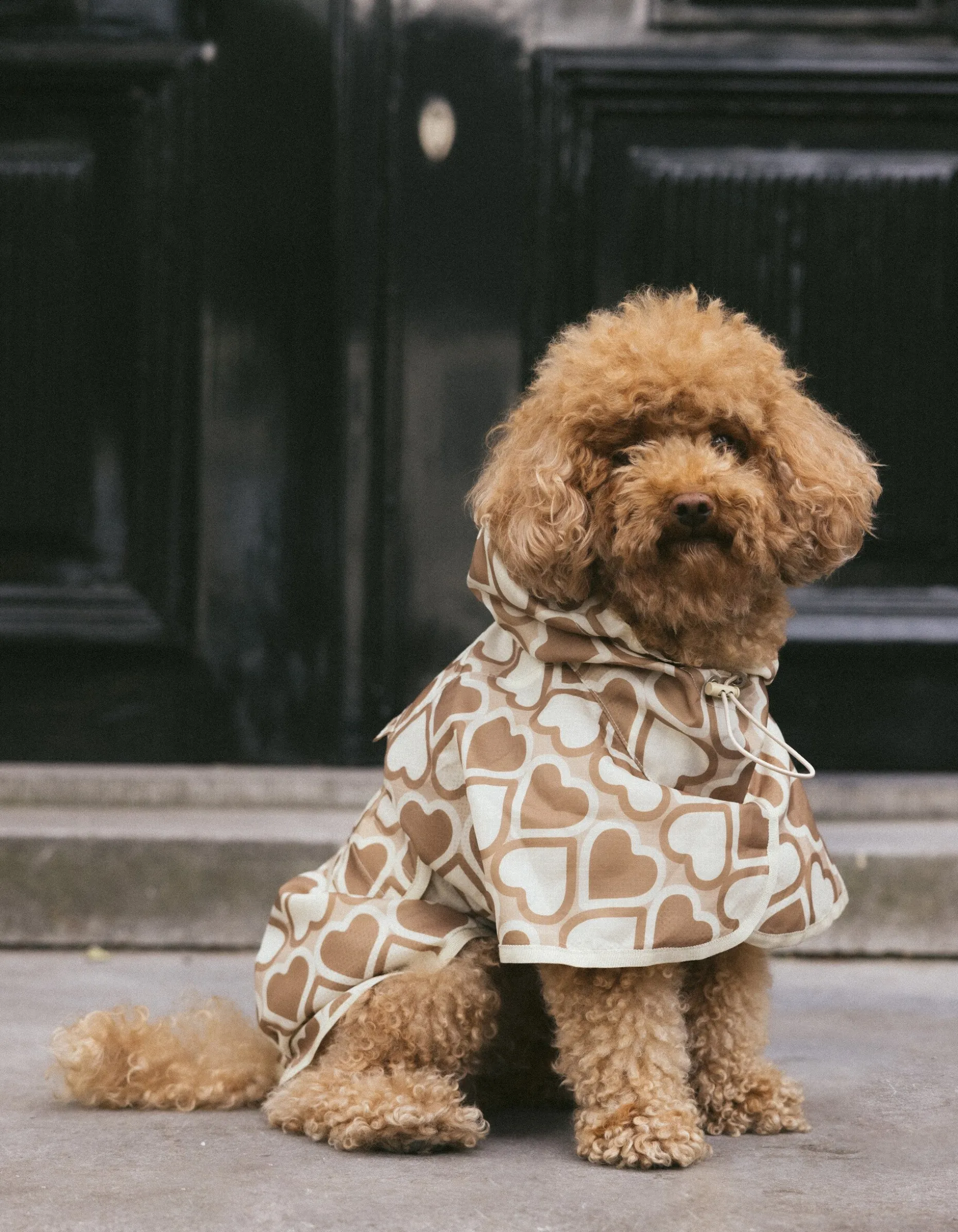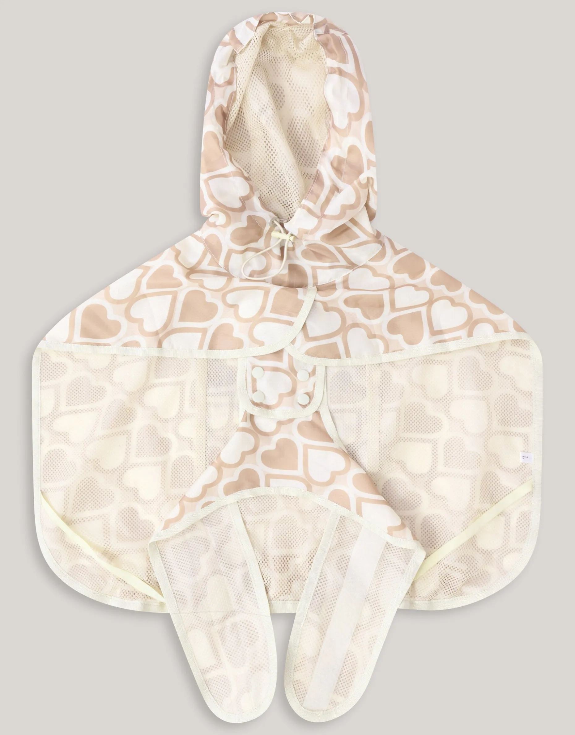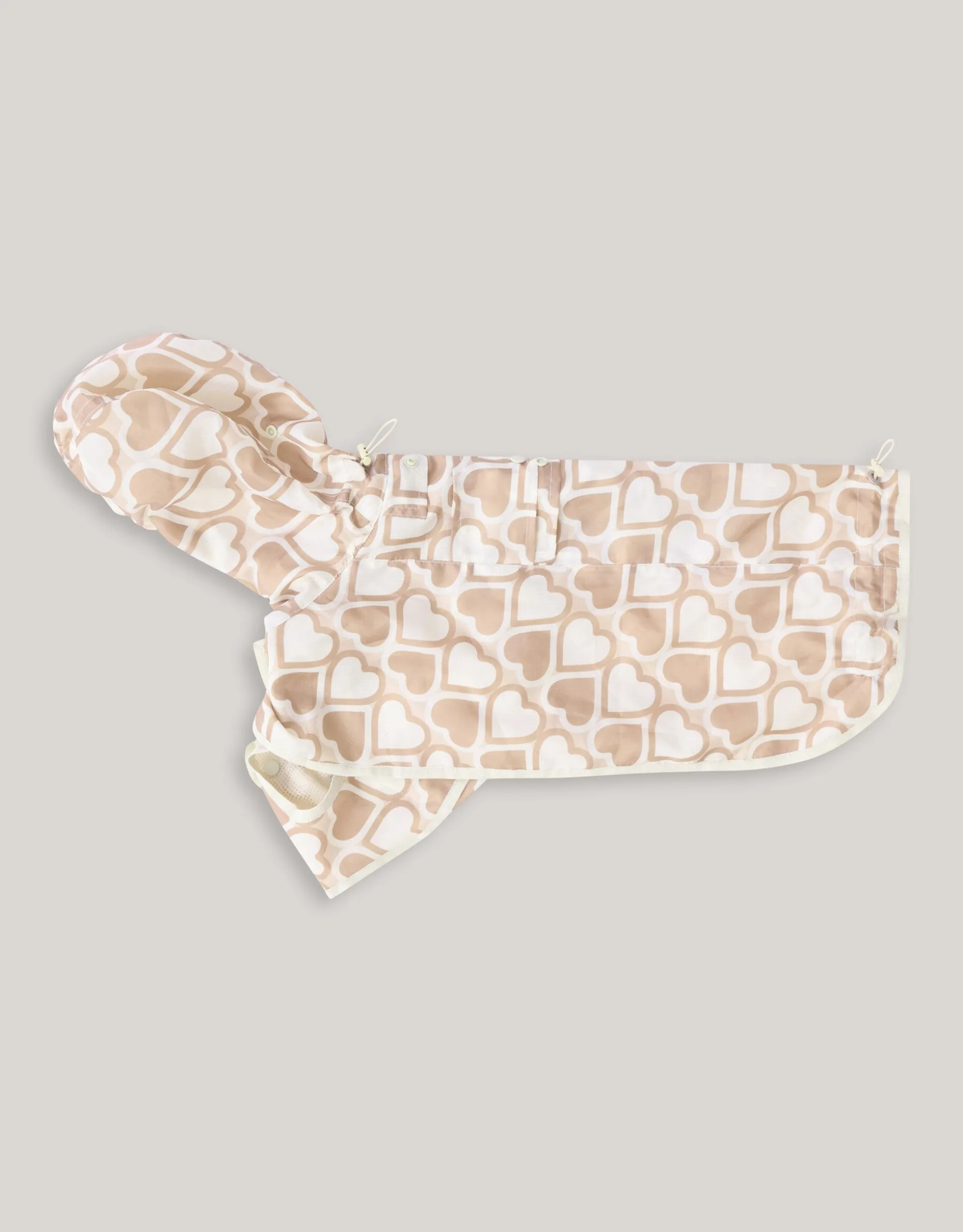 Ready for rainy days! De Printed Honden Regenjas Gebroken Wit By Furmey wordt gekenmerkt door de gebroken witte kleur en de all-over beige hartjesprint. Het artikel is gemaakt van polyester, waardoor het kleur- en vormvast is en bestand is tegen de regen.