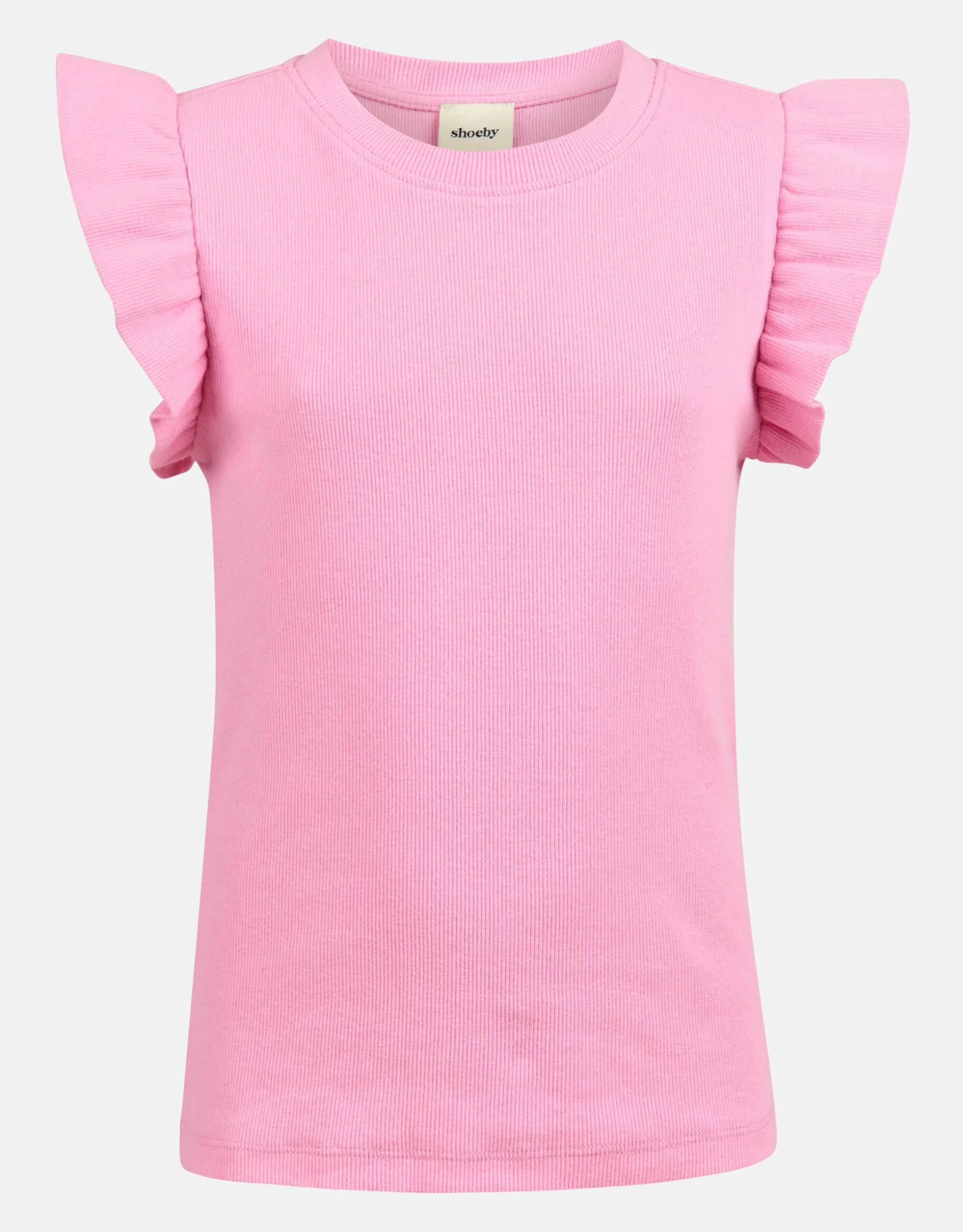 Pink is the ultimate power color! De Ruffle Rib Top heeft een hoge ronde hals, een stretch stof, een aansluitende fit en is mouwloos. Het item wordt gekenmerkt door de ribstof, de roze kleur en de ruffles bij de schouders. Het is gemaakt van katoen en elastaan. Door deze samenstelling is het sterk van kwaliteit, rekbaar en draagt het comfortabel. Combineer het samen met jouw favoriete jeans of een rokje voor een stijlvolle look!