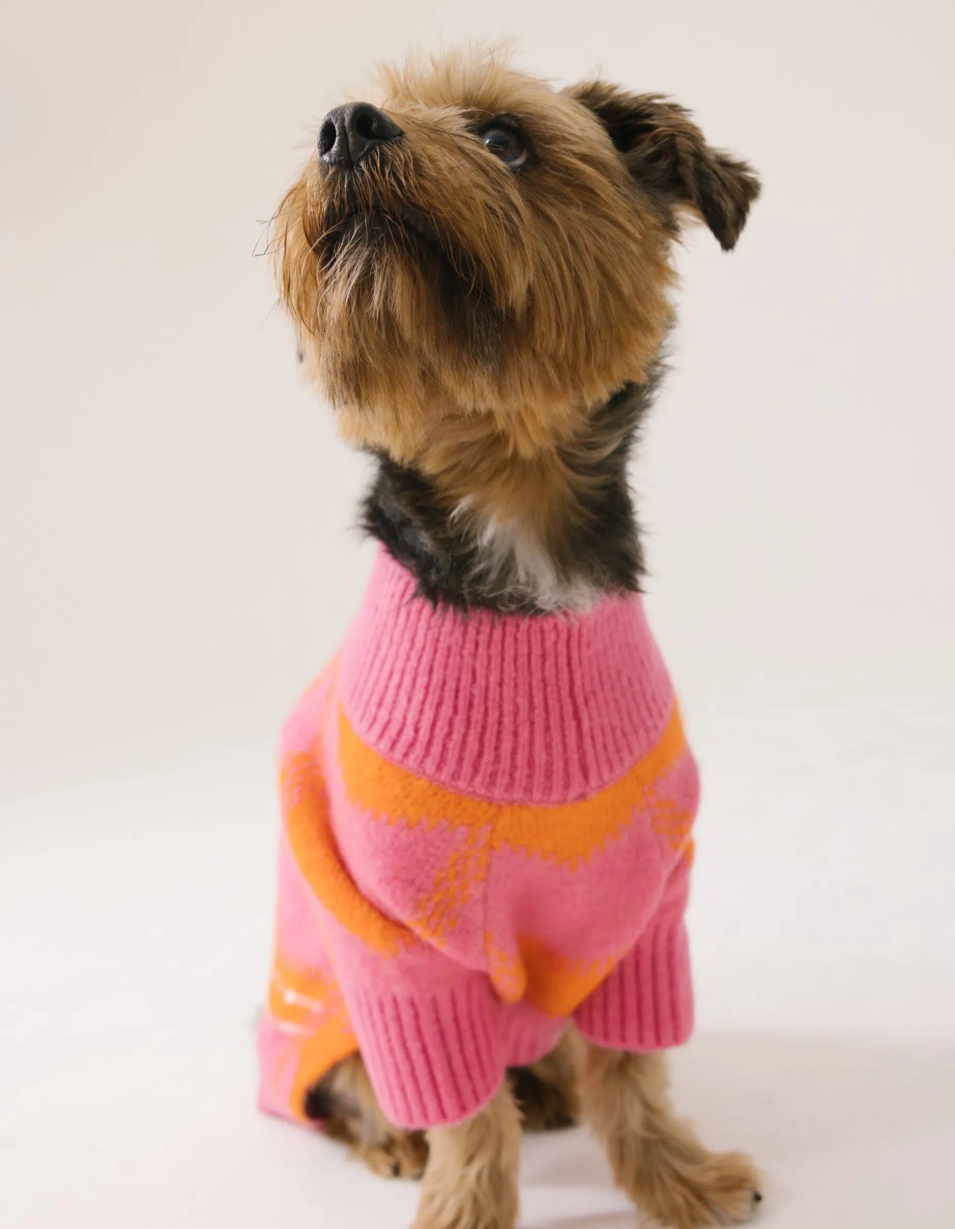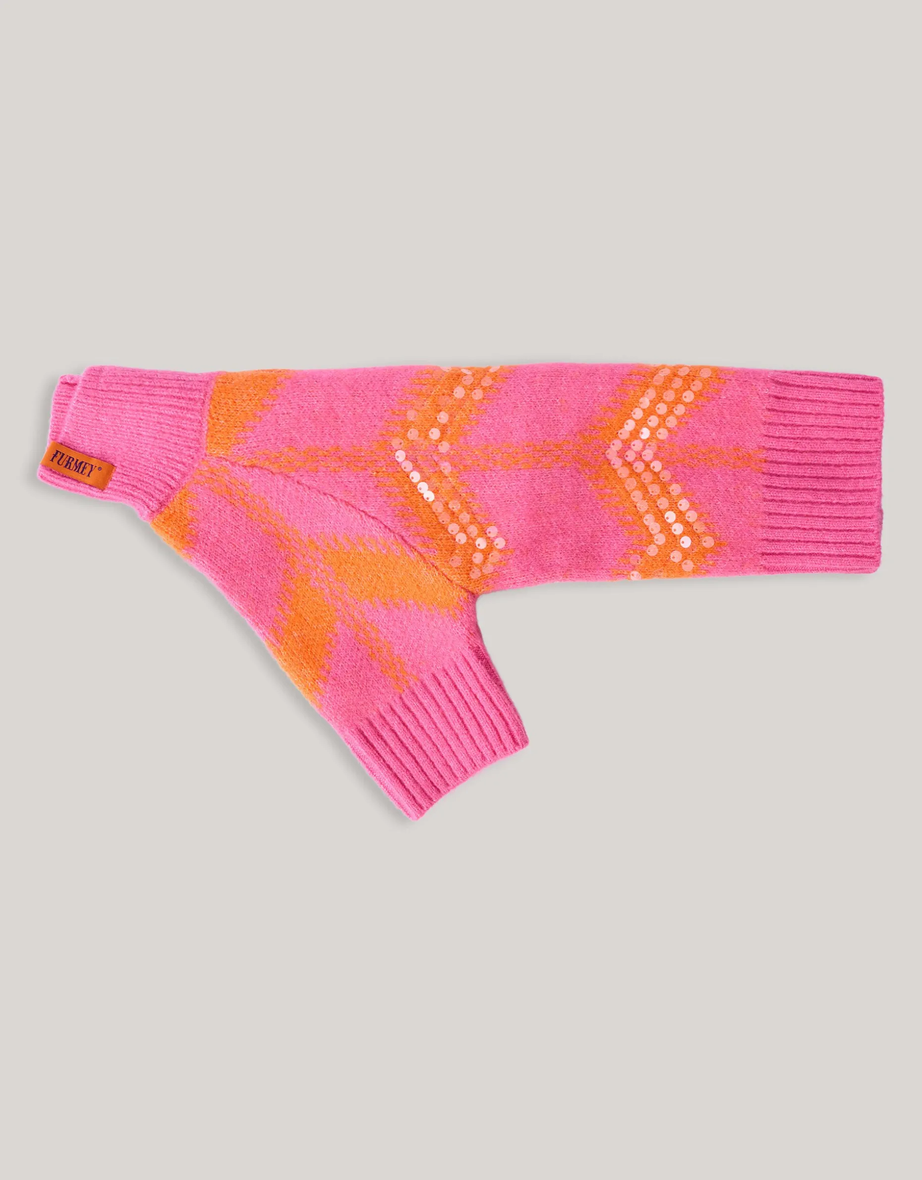Get ready to match! De Sequin Honden Trui Roze By Furmey wordt gekenmerkt door de roze kleur, de oranje print en de all-over sequins. Het artikel is gemaakt van acrylic, polyester en elastaan. Match samen met de bijpassende trui voor dames of meisjes en jullie zijn ready to go!