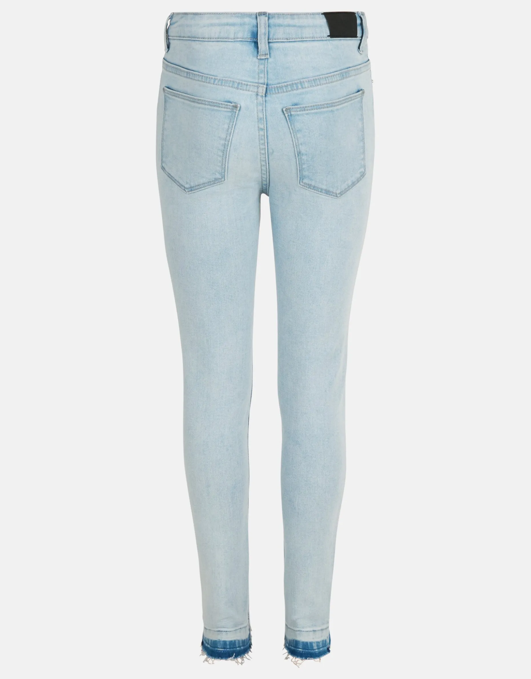 Een fijne jeans is onmisbaar in je garderobe! De Skinny Jeans is daarom een favoriet van ons. De jeans heeft een hoge taille, een skinny fit, een 5-pocket model, een verstelbare band in de taille en een knoop-en ritssluiting. Het item wordt gekenmerkt door de lichtblauwe bleached wassing met een donker denim detail aan de onderzijde van je broekspijp. Maakje look compleet met een statement t-shirt en een bomberjack voor een on-trend look!