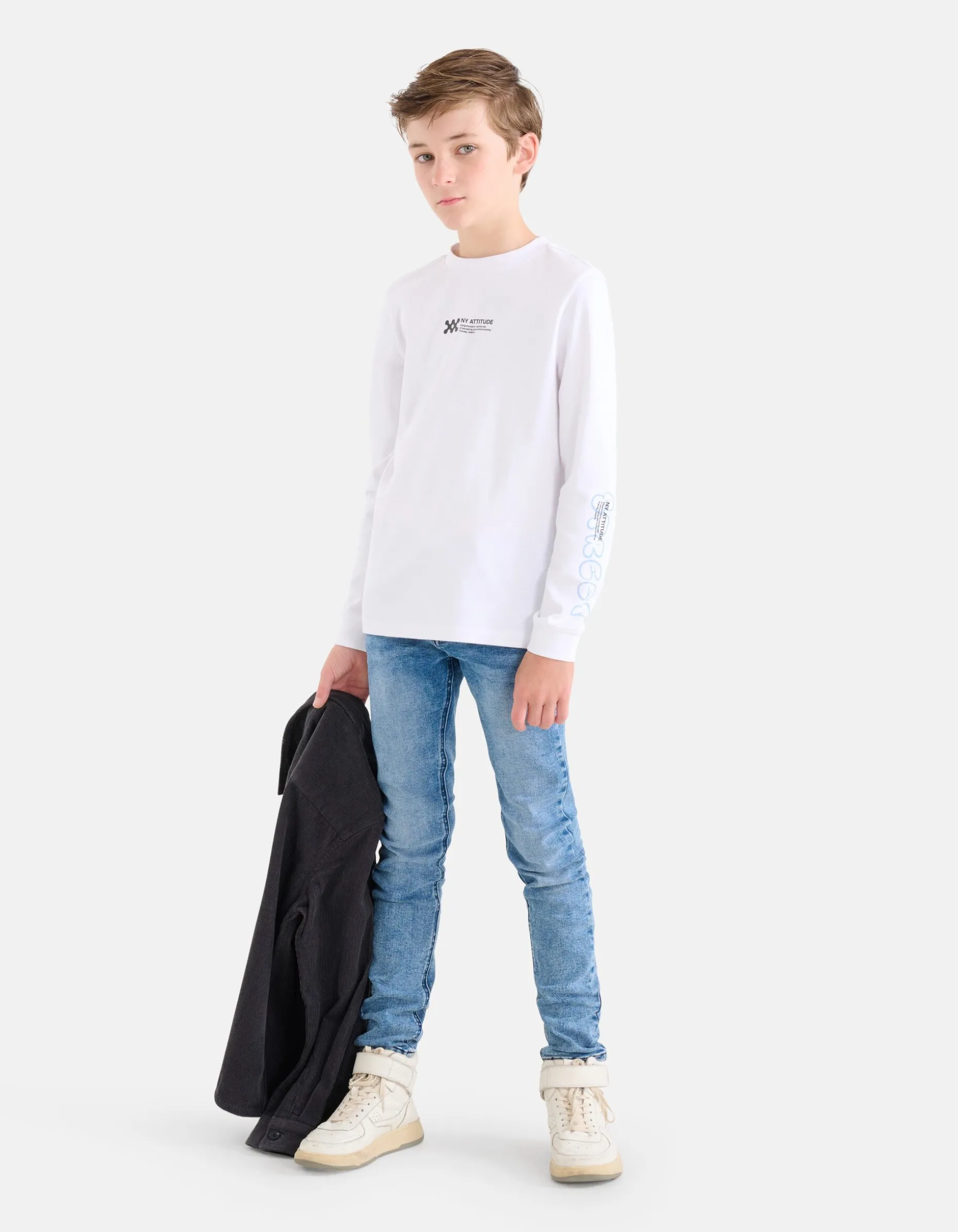Een spijkerbroek kan je nooit genoeg in de kast hebben hangen voor de boys! De Skinny jeans heeft een middelhoge taille, een 5-pocket model, een skinny fit, een knoop-en ritssluiting en een verstelbare tailleband. Het item wordt gekenmerkt door de mediumstone blauwe wassing. Verder heeft de jeans donkerblauwe stiksels voor de perfecte finishing touch. Het is gemaakt van katoen, polyester en elastaan. Door deze samenstelling draagt het comfortabel, is het sterk van kwaliteit en rekt het deels mee. Maak de look af met een sweater of een stoer statement t-shirt voor een sportieve look!