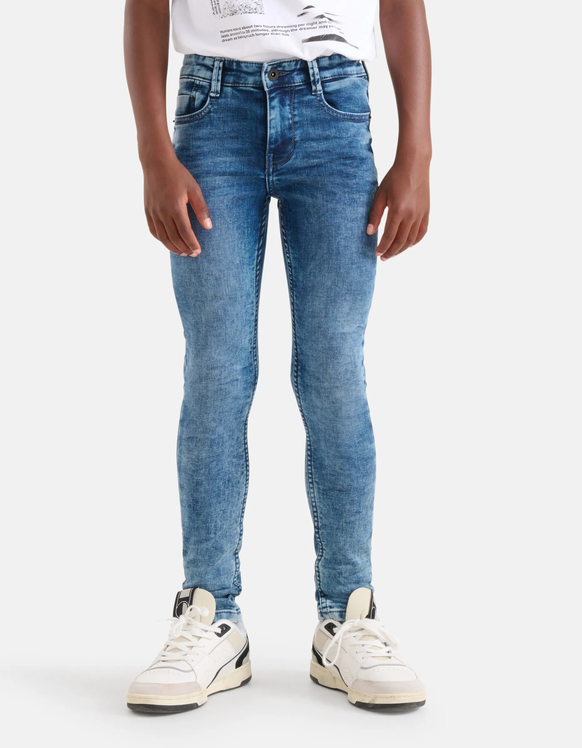 Have a jeanious day! De Skinny Jeans heeft een middelhoge taille, een 5-pocket model, een skinny fit, een knoop- ritssluiting en een verstelbare tailleband. Het item wordt gekenmerkt door de middenblauwe medium stone wassing en de jog denim kwaliteit, waardoor het item eruitziet als een jeans maar voelt en zit als een joggingbroek. Het is gemaakt van katoen, polyester en elastaan. Door deze samenstelling is het sterk van kwaliteit, rekt het subtiel mee en draagt het comfortabel. Maak de look compleet met een stoer statement T-shirt of een casual sweater.