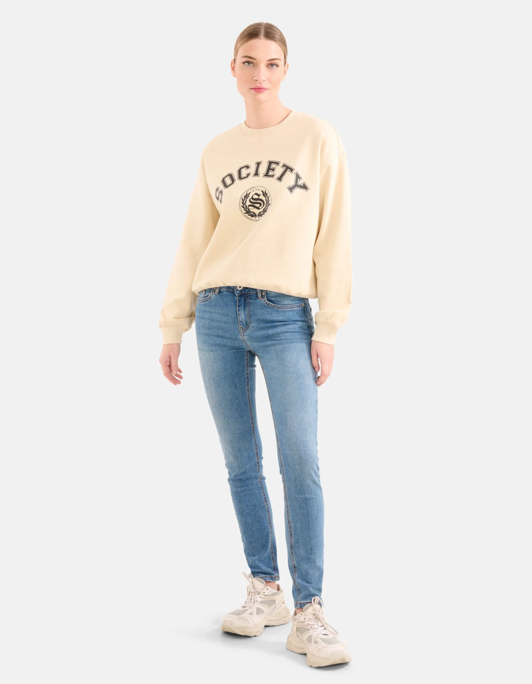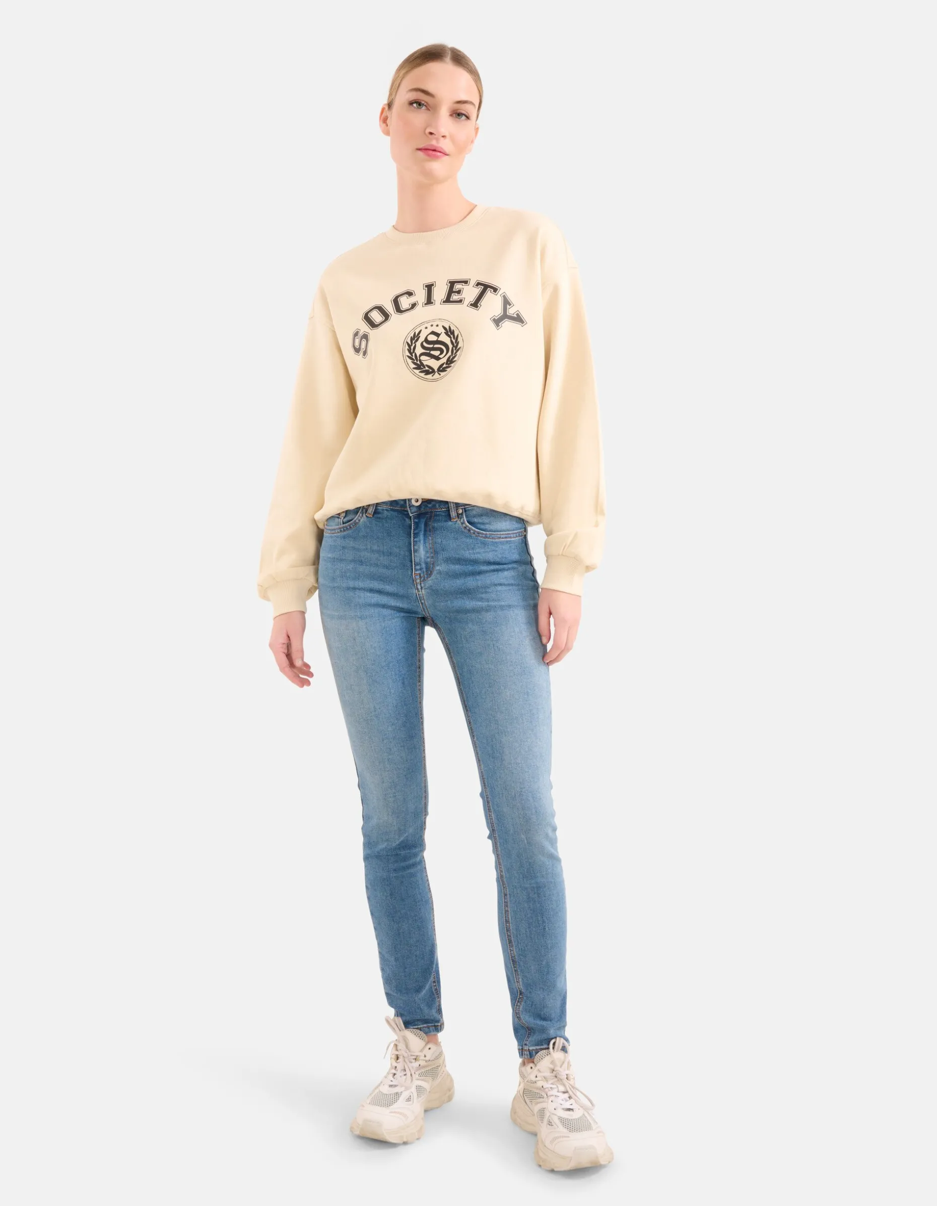 When in doubt wear denim! Een skinny fit is perfect voor vrouwen die houden van een aansluitende fit. Deze jeans valt namelijk op alle plekken mooi en aansluitend aan. De Skinny Jeans heeft een regular waist, een skinny fit, een 5-pocket model, een lengtemaat 30 en een knoop-en ritssluiting. Het item wordt gekenmerkt door de mediumstone blauwe wassing. Deze kleur is tijdloos en oneindig te combineren met artikelen uit jouw garderobe. Verder geven de oranje stiksels de perfecte finishing touch aan de jeans! Een fijn detail is de hoge stretch stof in de jeans wat zorgt voor een hoog draagcomfort. Combineer het samen met een ajour top en een chunky sneaker en je bent good to go! Het model heeft een lengte 177 cm en draagt maat 27. Het artikel heeft een binnenbeenlengte van 76 cm bij maat 27.