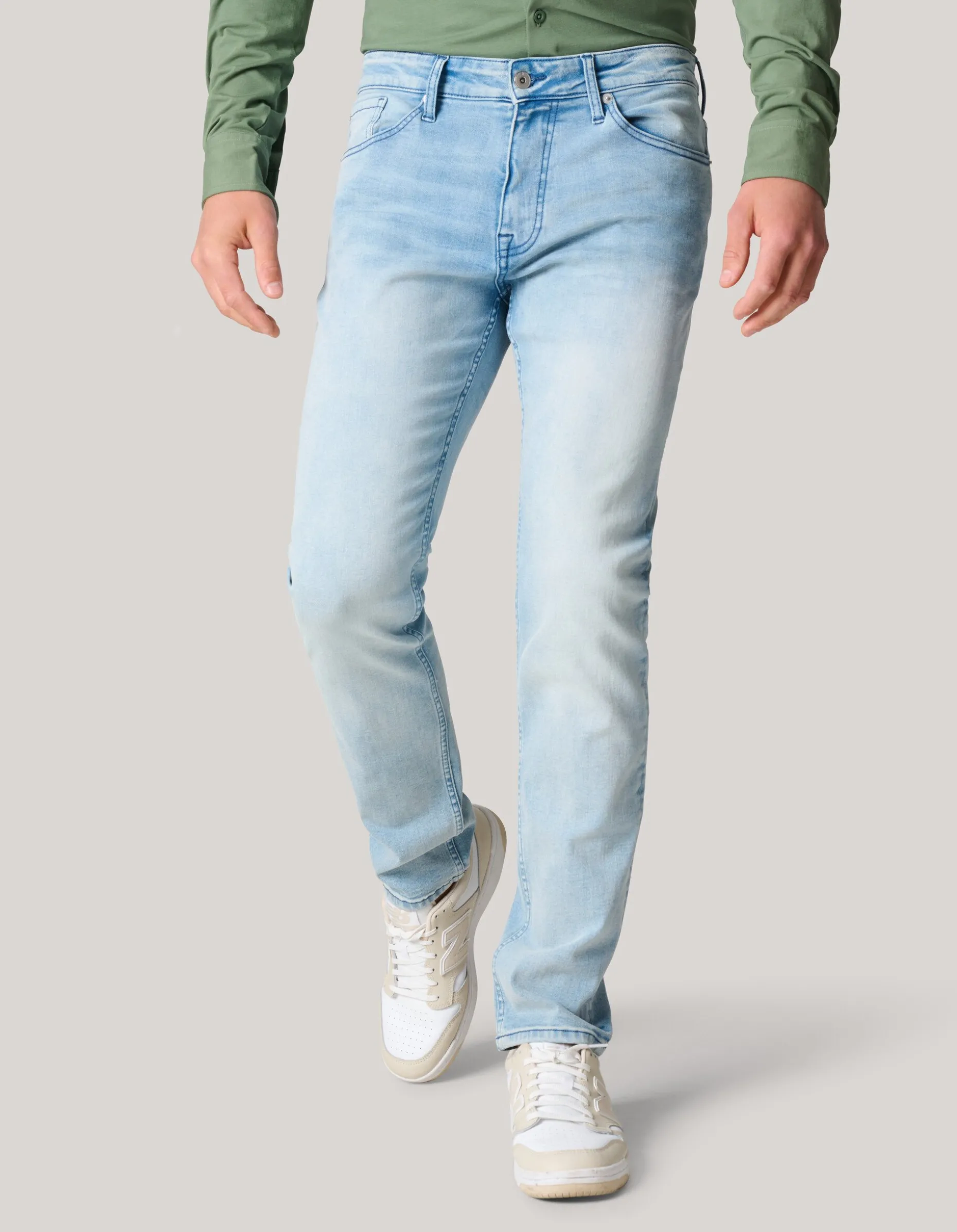 Denim is not just a fabric, it’s a lifestyle! De Slim Fit Jeans heeft de uitstraling van een jeans maar is volledig gemaakt van een jog fabric voor extra comfort. Verder heeft de jeans een slim fit model, wat betekent dat het item slank valt van het bovenbeen tot aan de enkels. Het item wordt gekenmerkt door de lichtblauwe wassing met donkerblauwe stiksels voor de perfect finishing touch. Combineer de jeans met een stoere hoodie of met een net overhemd voor een casual look. Het model heeft een lengte van 185 cm en draagt maat 32. De binnenbeenlengte van de jeans is 81 cm bij lengtemaat 32.