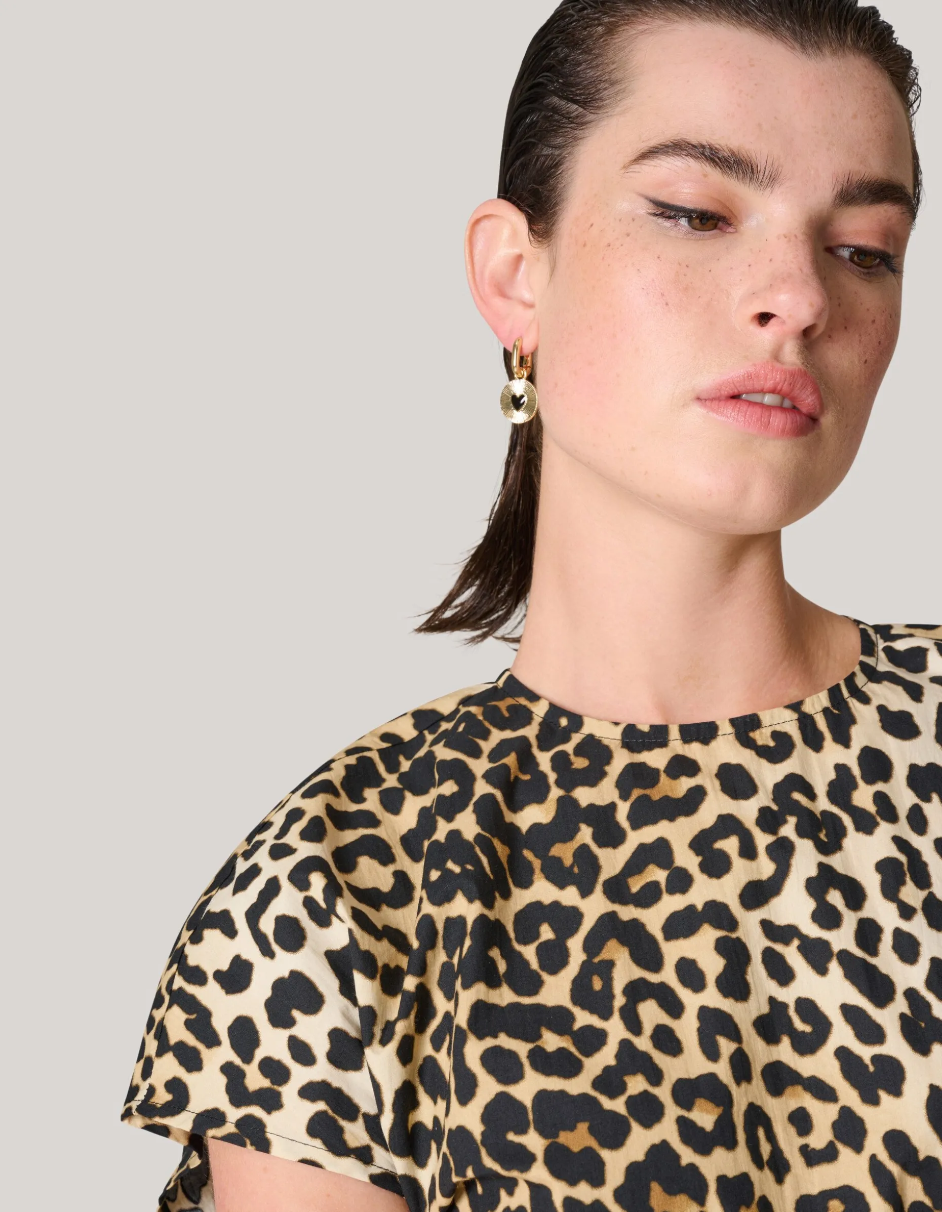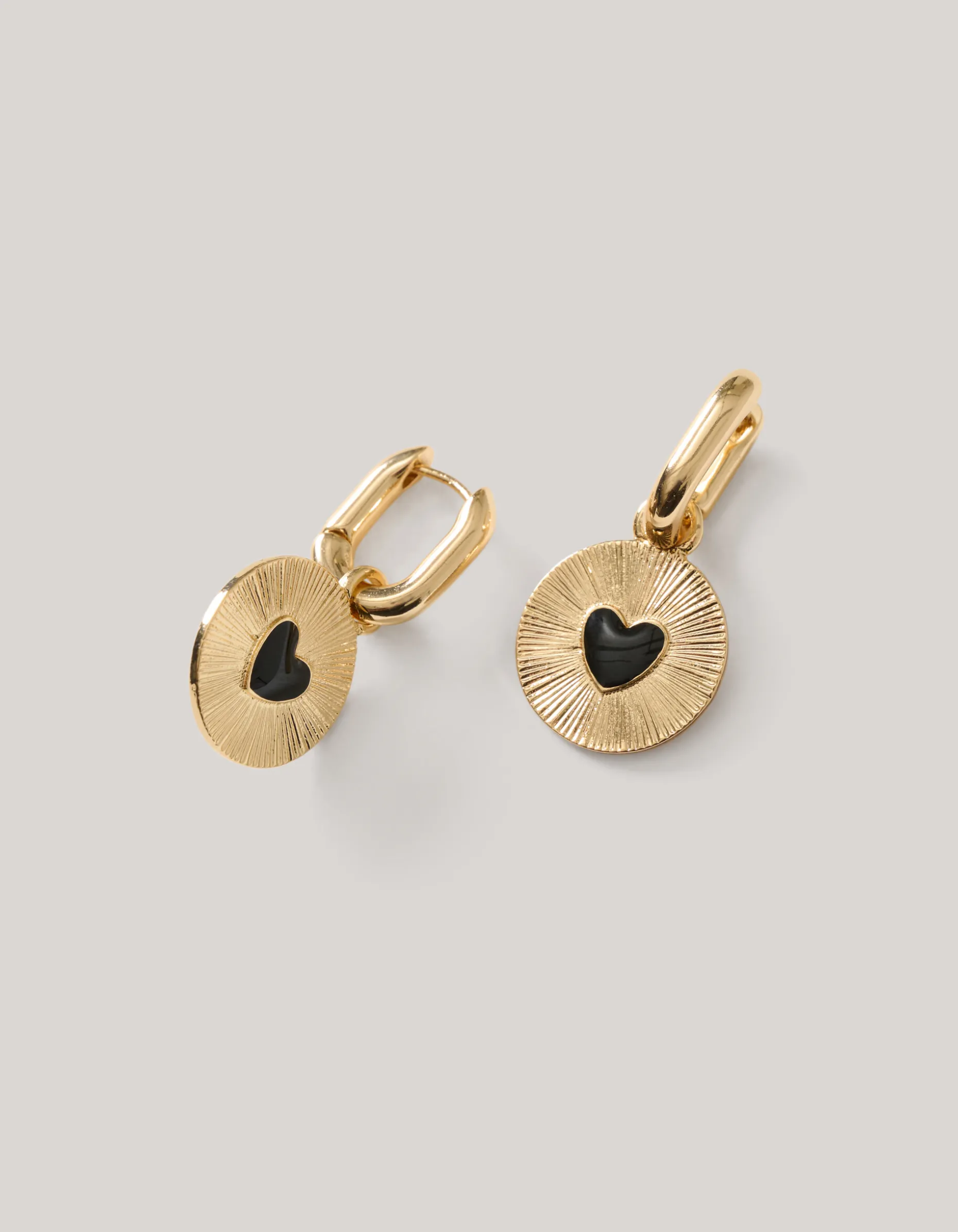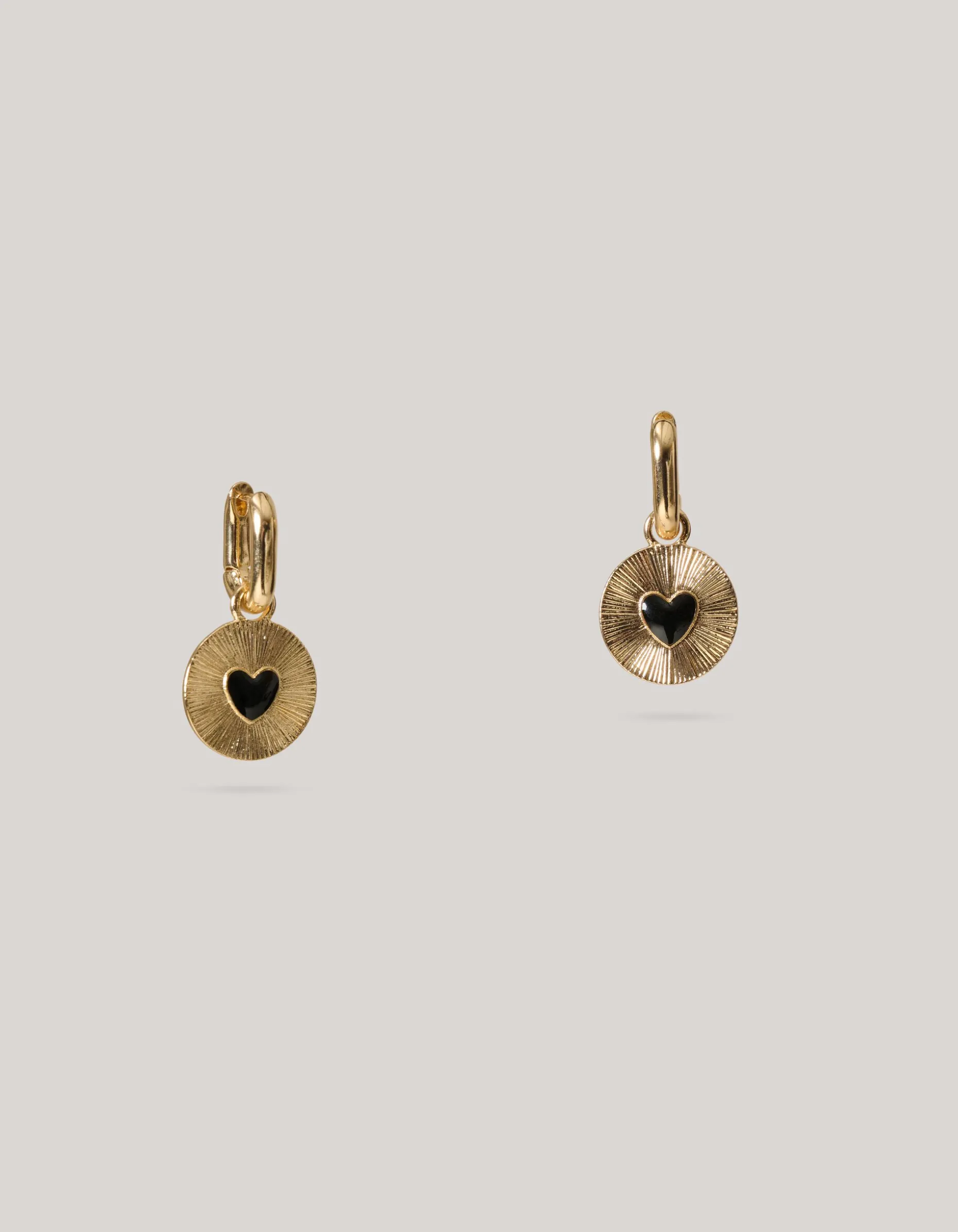 Verhoog je stijl met de Small Heart Oorbellen. De oorbellen worden gekenmerkt door de gouden, ronde hanger met gestreept patroon en een zwart hart detail aan de binnenkant. De oorbel sluit met een kliksluiting, waardoor de oorbel goed op zijn plek blijft zitten.