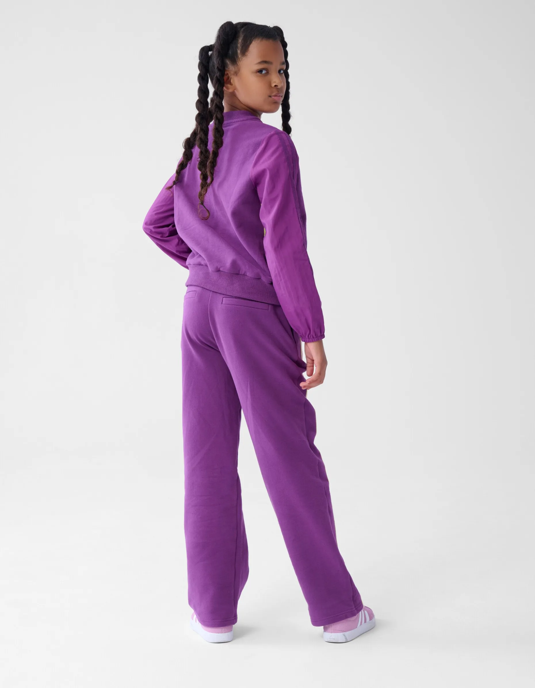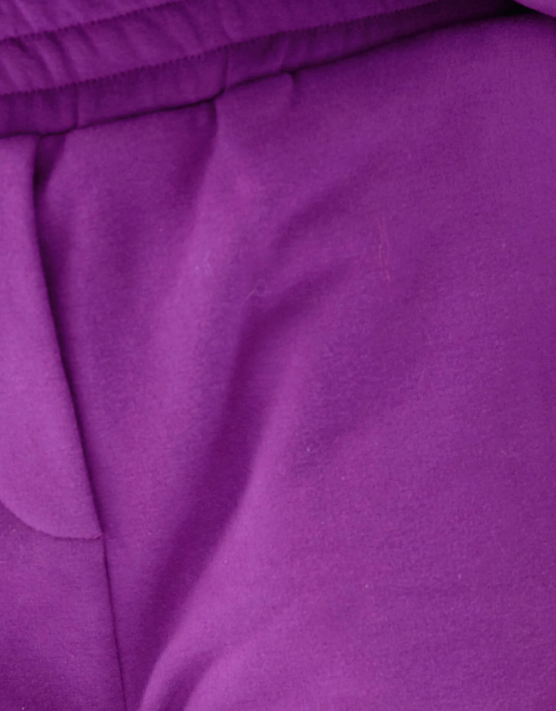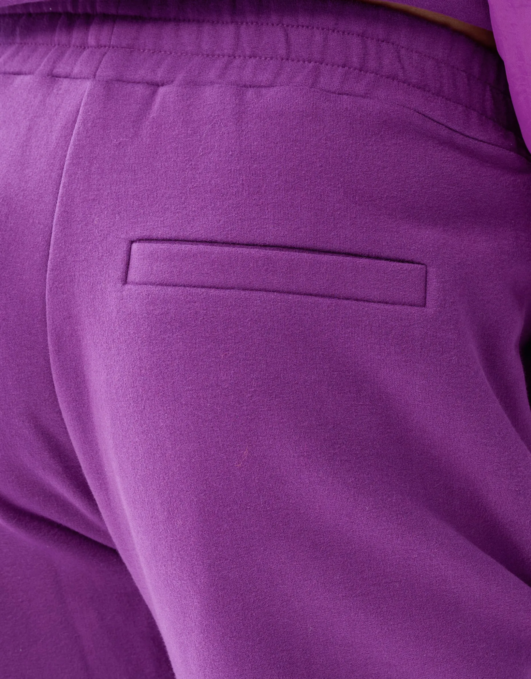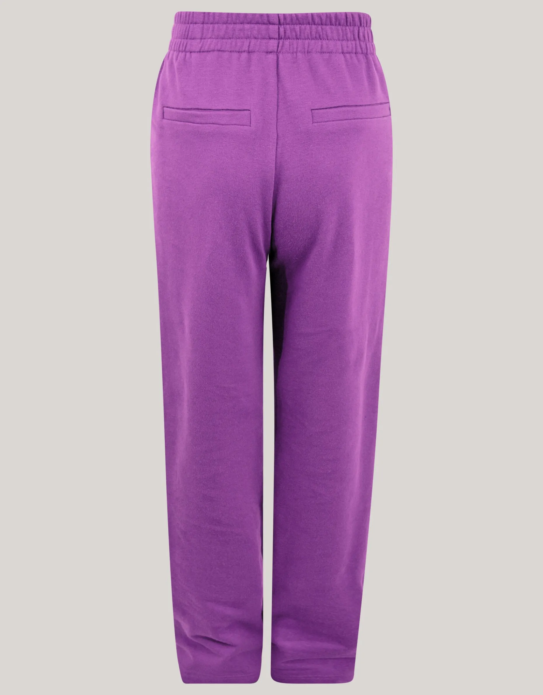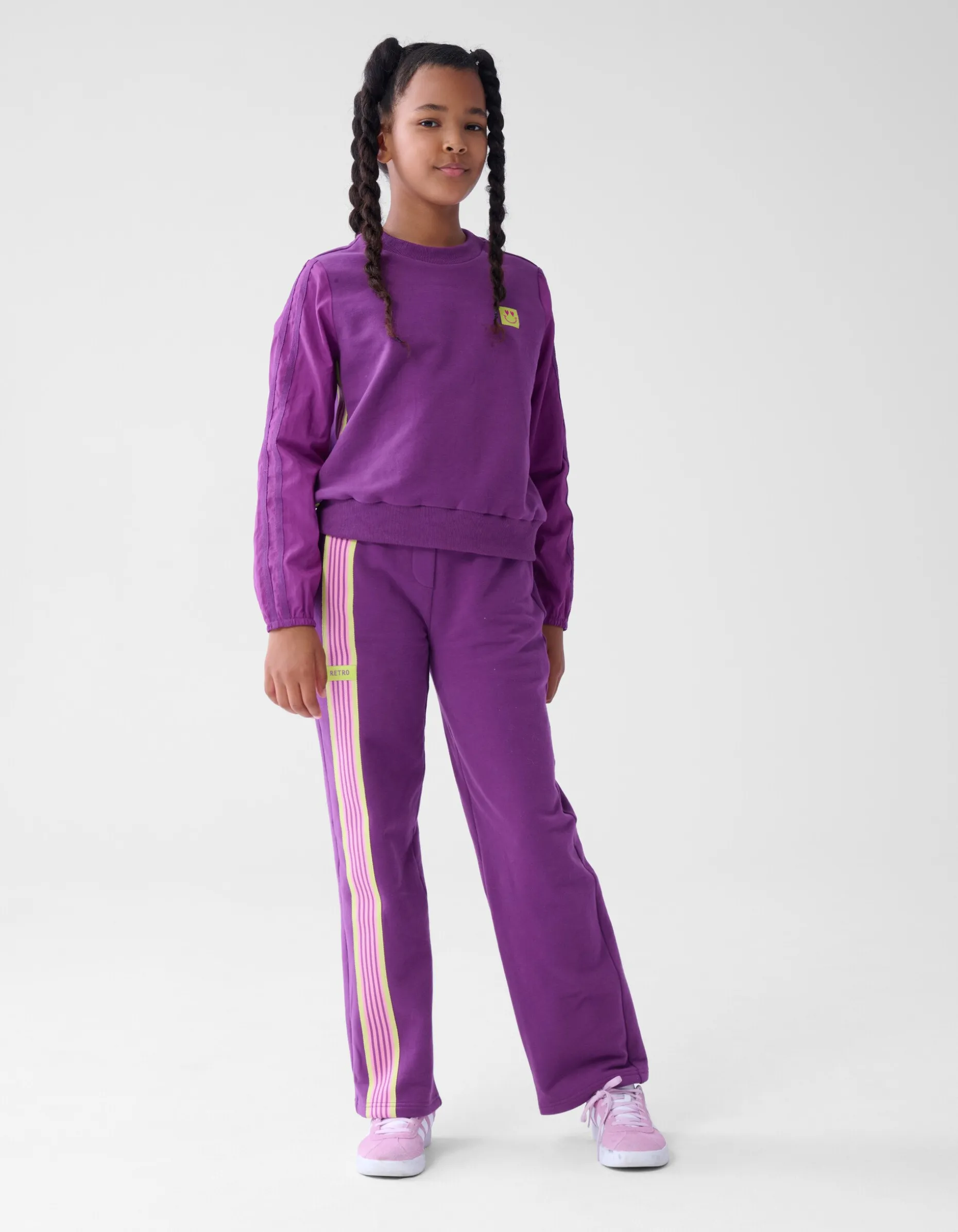 Ontdek de Sporty Stripe Broek Paars! Comfortabel en stijlvol, met kleurrijke strepen aan de zijkant. De elastische tailleband zorgt voor een perfecte pasvorm. Ideaal voor speelse en actieve dagen! Verder heeft de broek een high-stretch stof, straight fit en een paarse kleur. De broek is gemaakt van katoen en elastaan. Deze samenstelling zorgt ervoor dat de broek comfortabel draagt en subtiel rekbaar is. Draag de broek samen met de bijpassende sweater voor een stijlvolle look!
