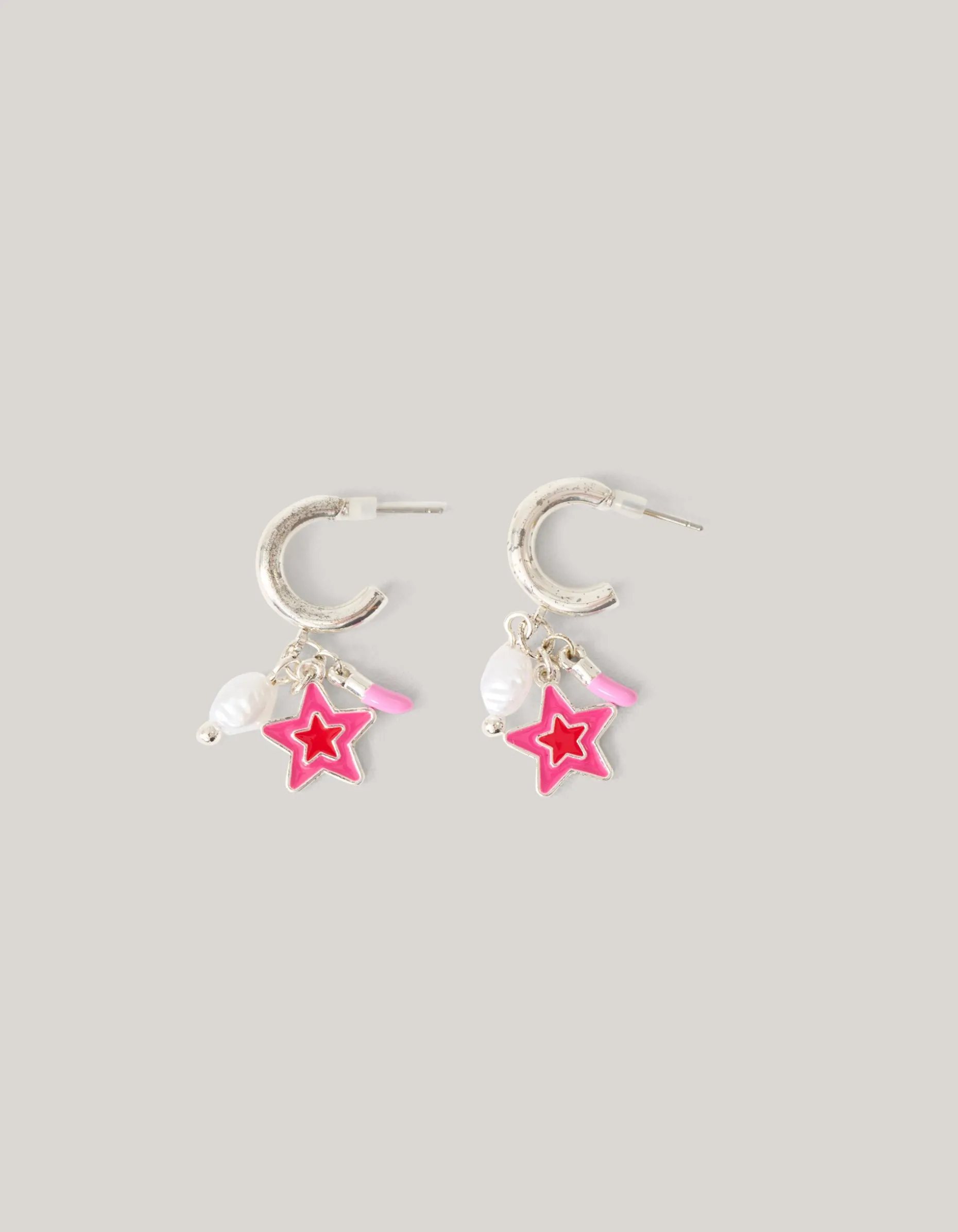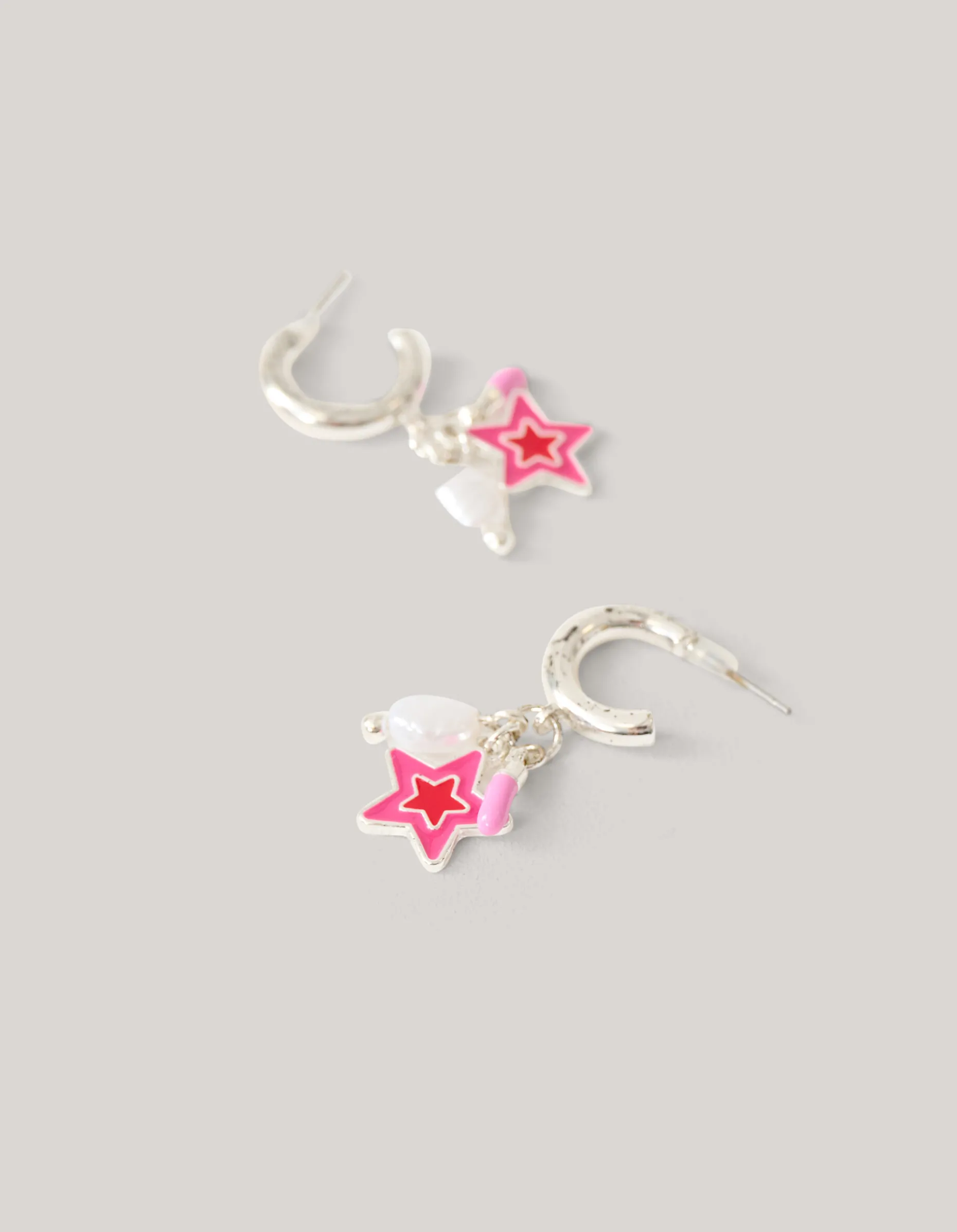 Summer musthave! Voeg een vleugje speelsheid toe aan je outfit met deze Ster Oorbellen. De oorbellen worden gekenmerkt door de zilveren kleur, het roze sterren hangertje en het kleine pareltje. Deze sieraden zijn ideaal voor dagelijks gebruik en voegen een subtiele glans toe aan je stijlvolle look.