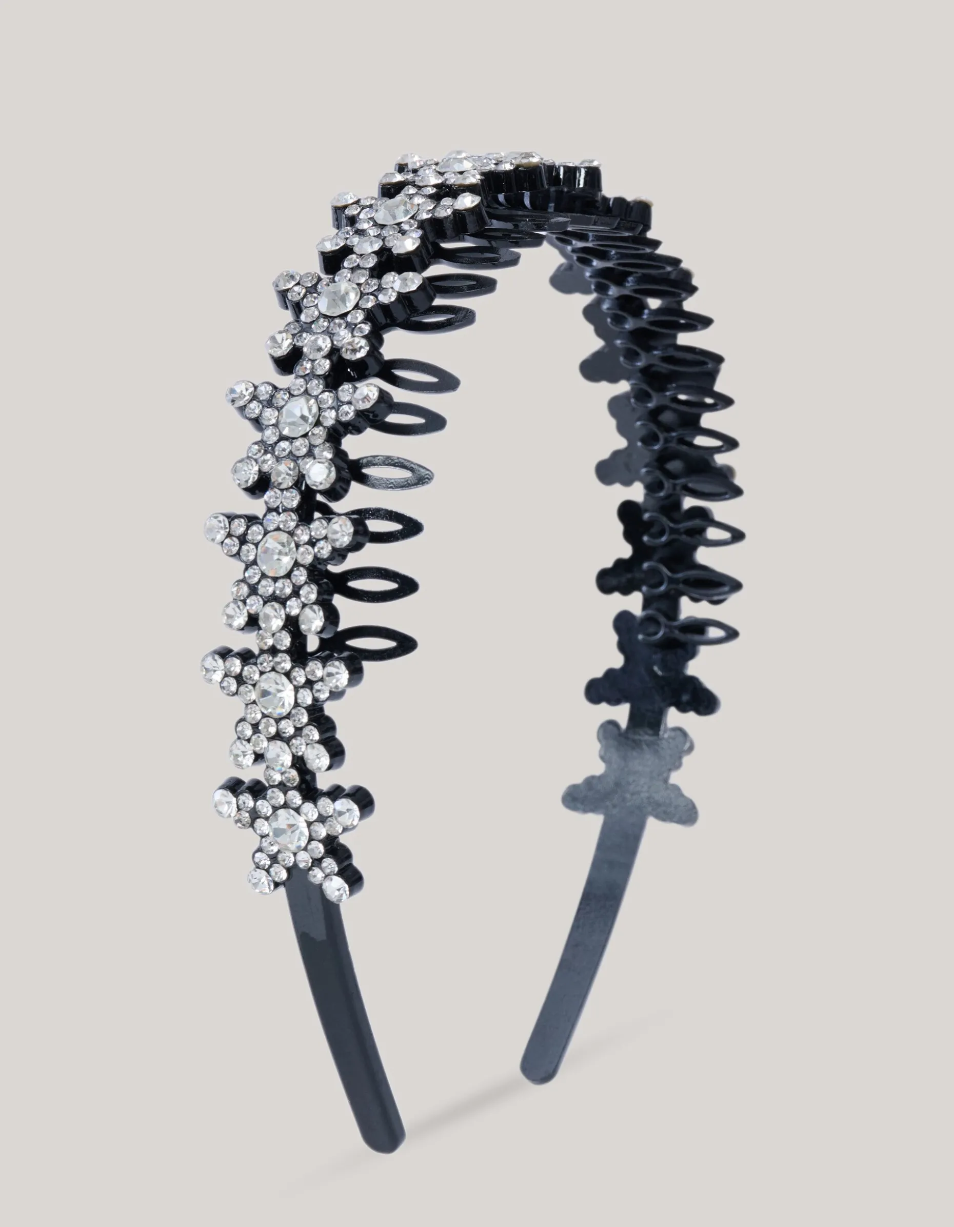 Add a touch of elegance and sparkle to your look! De Strass Haarband wordt gekenmerkt door de zwarte kleur met all-over stass steentjes voor een sparkling look. Combineer het samen met een feestelijk jurkje en je bent ready to go!
