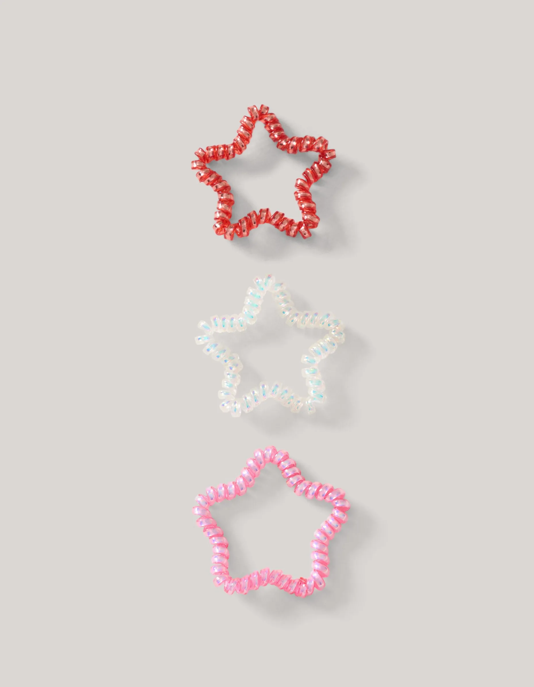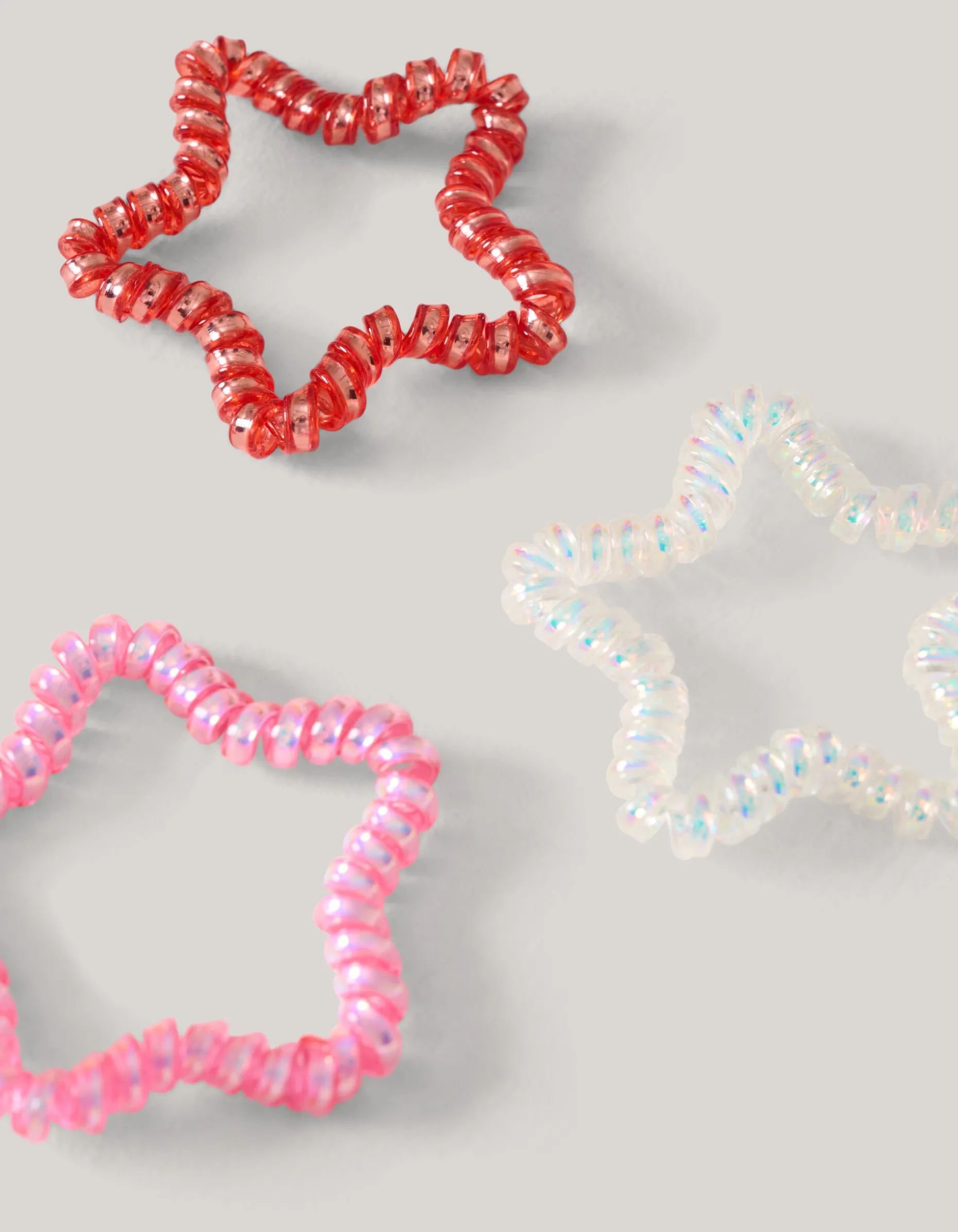 Voeg een vleugje casual vrolijkheid toe aan je outfit met de Sterren Haarelastiekjes. Deze haarelastiekjes hebben een roze, rode en witte kleur en worden gekenmerkt door de stervorm. Leuk voor in je haar, of draag ze om je pols.