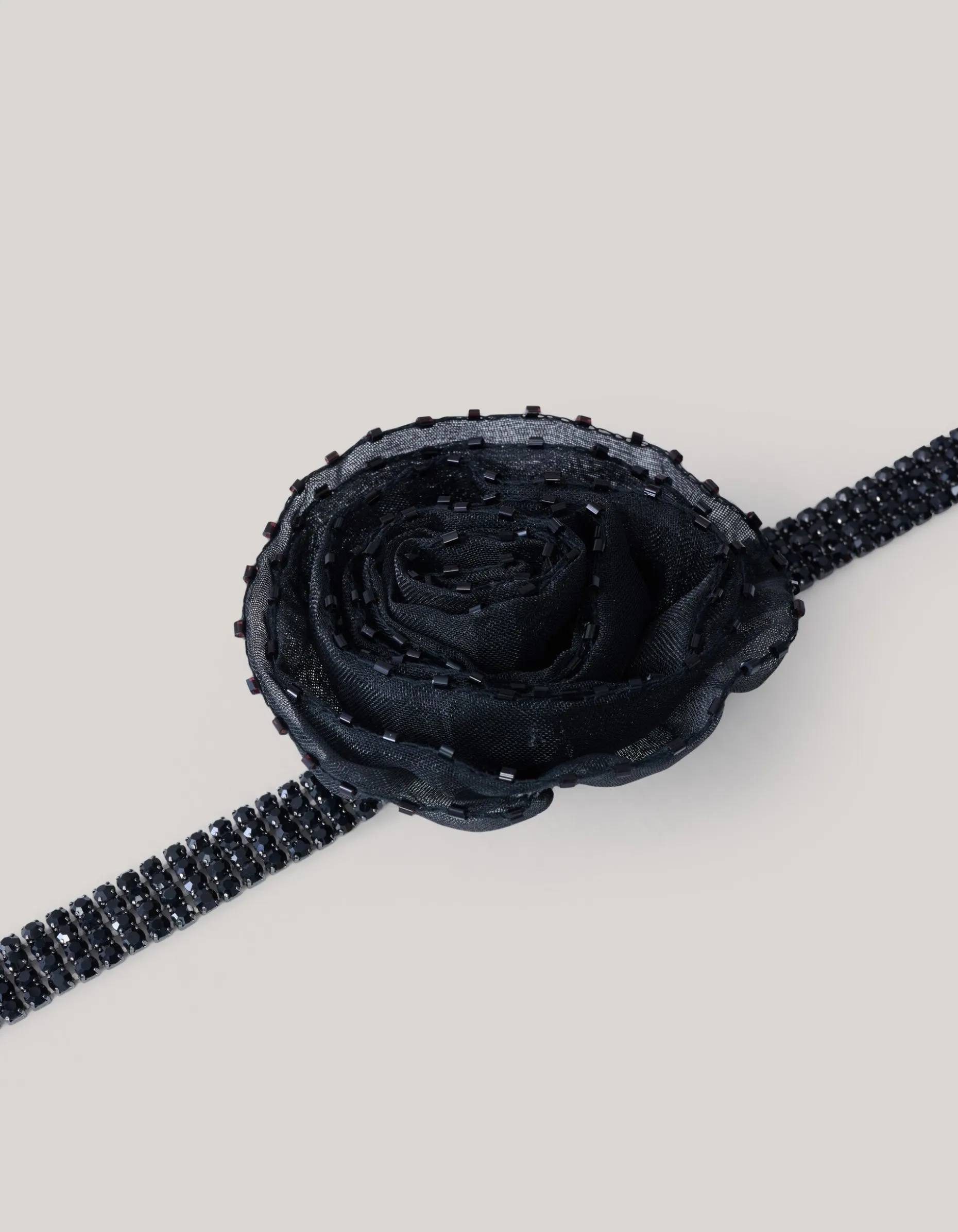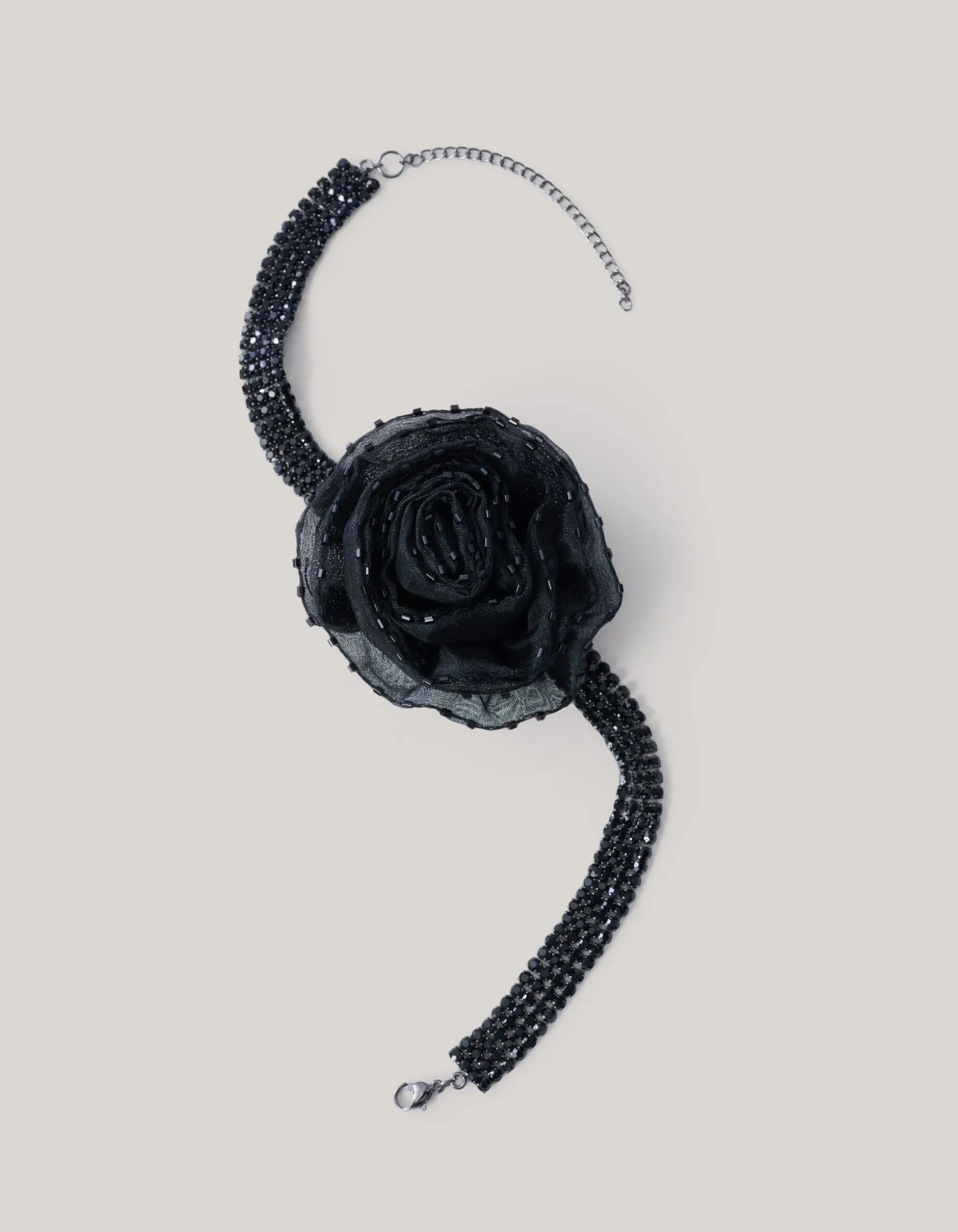Iconic! De Strass Bloem Choker Zwart is de perfecte mix van elegantie en stijl. Met de zwarte strass steentjes en de zwarte kleur is het een ideale keuze voor een avondje uit. Draag de ketting met de bijpassende oorbellen voor een complete look!