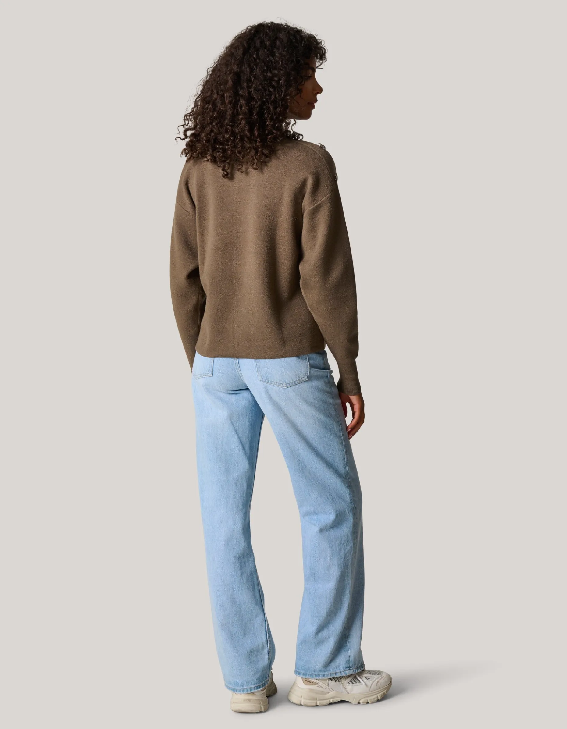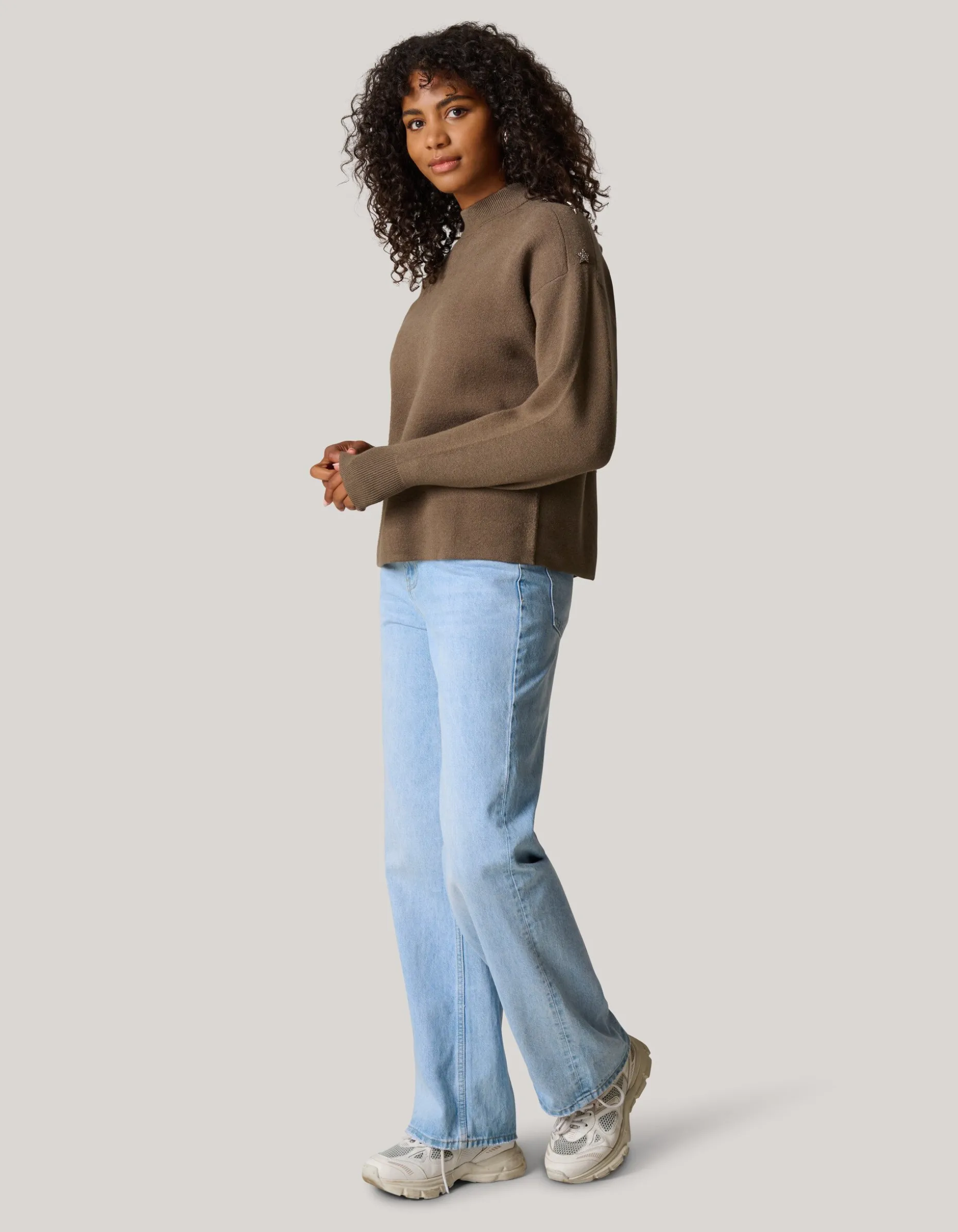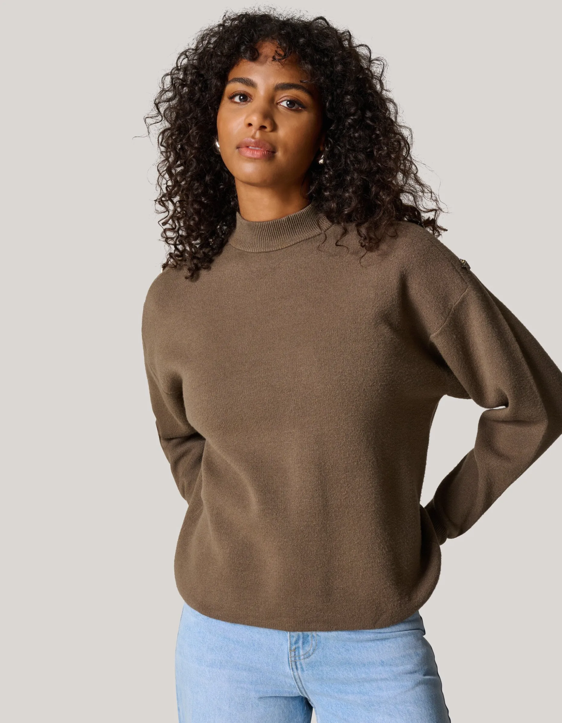 Ontdek de Button Trui Donkergroen! De trui heeft een hoge ronde hals, donkergroene kleur, relaxed fit en lange mouwen. Verder wordt de trui gekenmerkt door de sterren details op de beide schouders. De trui is gemaakt van viscose, polyester en polyamide. Deze samenstelling zorgt ervoor dat de trui sterk van kwaliteit, kleur- en vormvast is. Het model heeft een lengte van 176 cm en draagt maat S. De trui heeft een totale lengte van 57 cm bij een maat S.