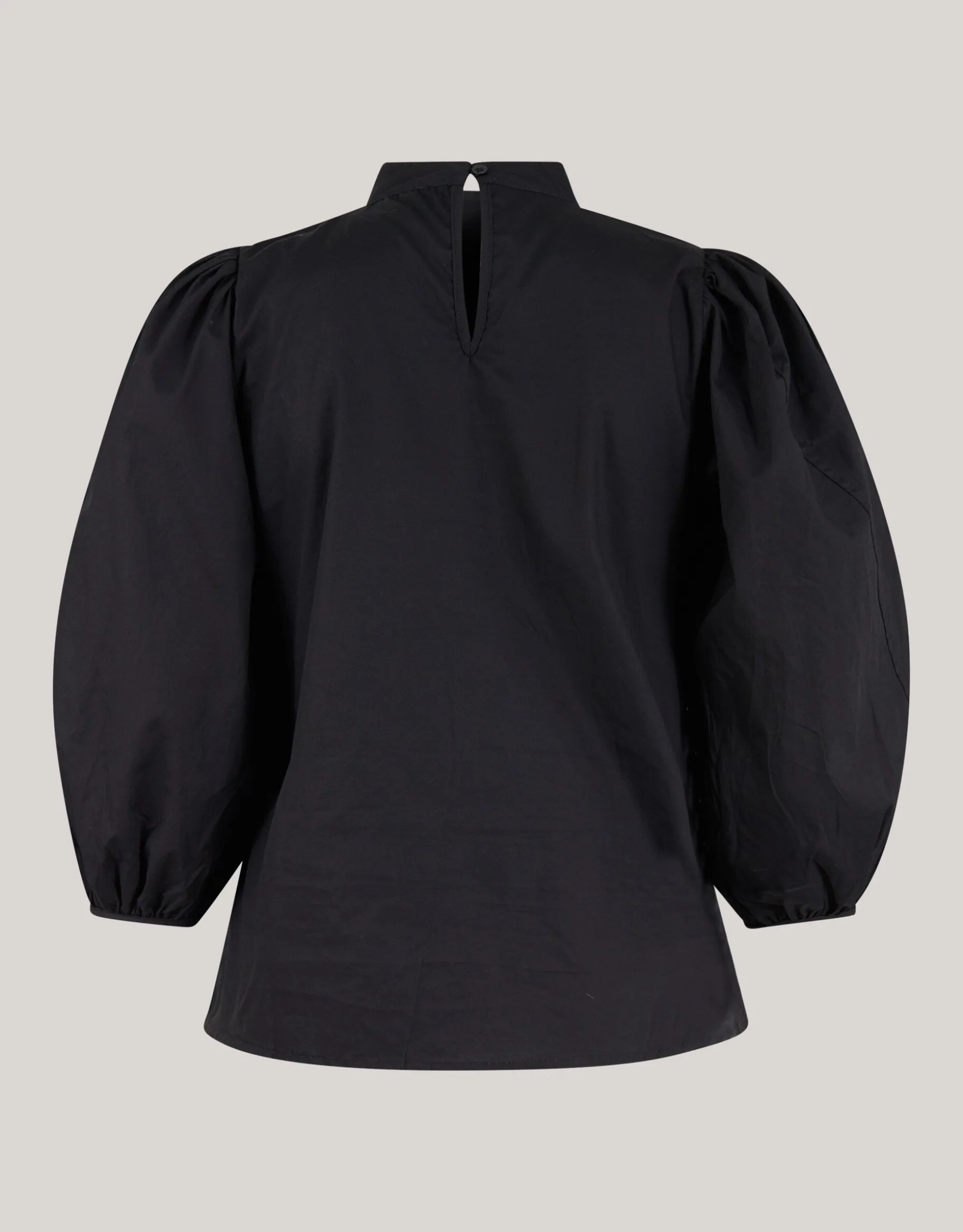 Trend alert! De Strass Heart Poplin Blouse Zwart heeft driekwart pofmouwen, een hoge kraag en een regular fit. Het item wordt gekenmerkt door de zwarte kleur en de hart details. De top is gemaakt van 100% katoen. Door deze samenstelling is het sterk van kwaliteit en draagt het comfortabel. Combineer het met een wide leg jeans en een paar hakjes voor een feminine en stijlvolle look! De totale lengte van dit item is 59,5 cm bij maat S. Het model heeft een lengte van 176 cm en draagt een maat S.