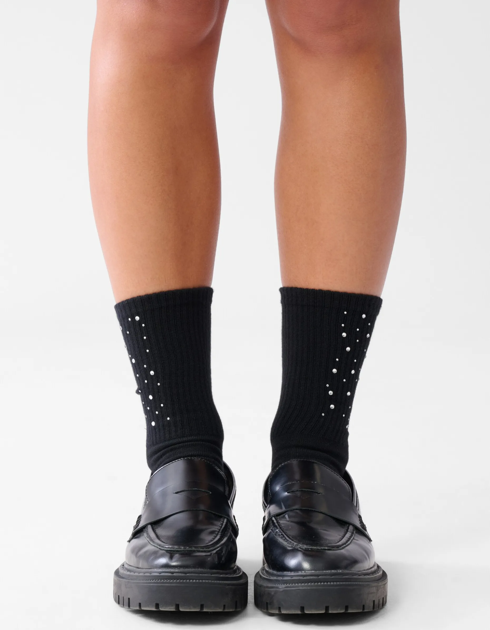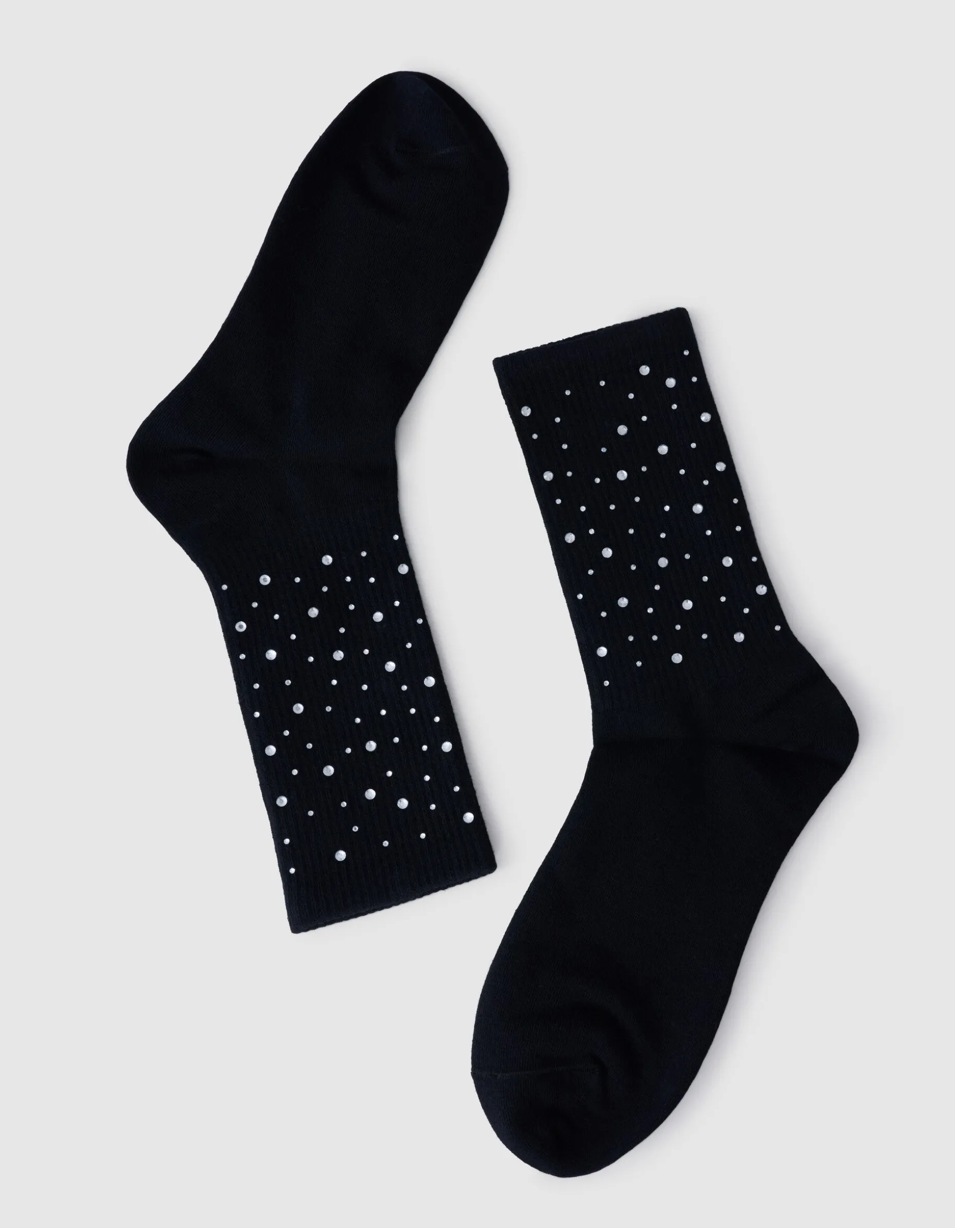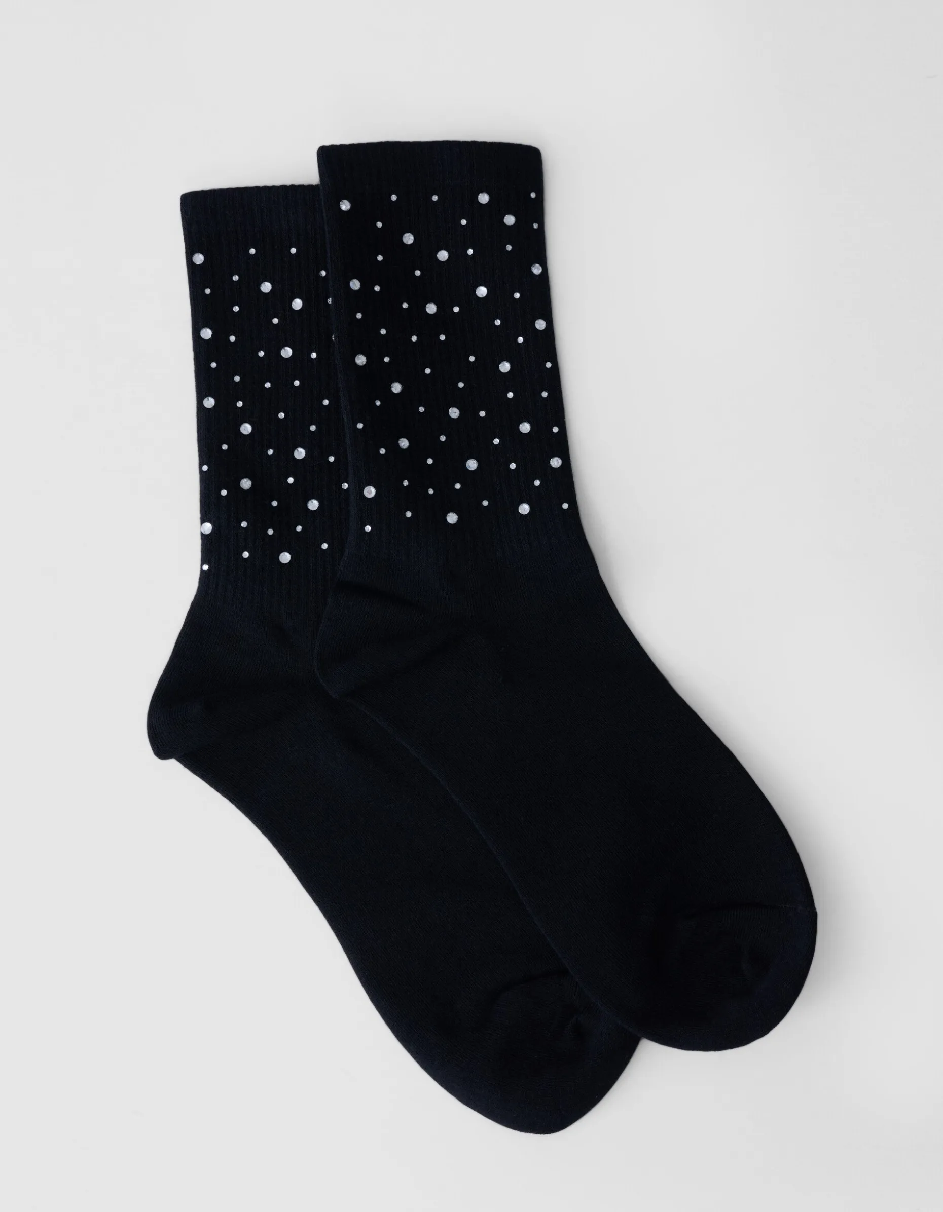 Ervaar ultiem comfort met deze stijlvolle sokken. Gemaakt van zacht materiaal en voorzien van strass steentjes, voegen ze een vleugje elegantie toe aan elke outfit. Door de zwarte kleur perfect voor dagelijks gebruik en speciale gelegenheden. Draag de sokken samen met een paar loafers of sneakers voor een stijlvolle look!
