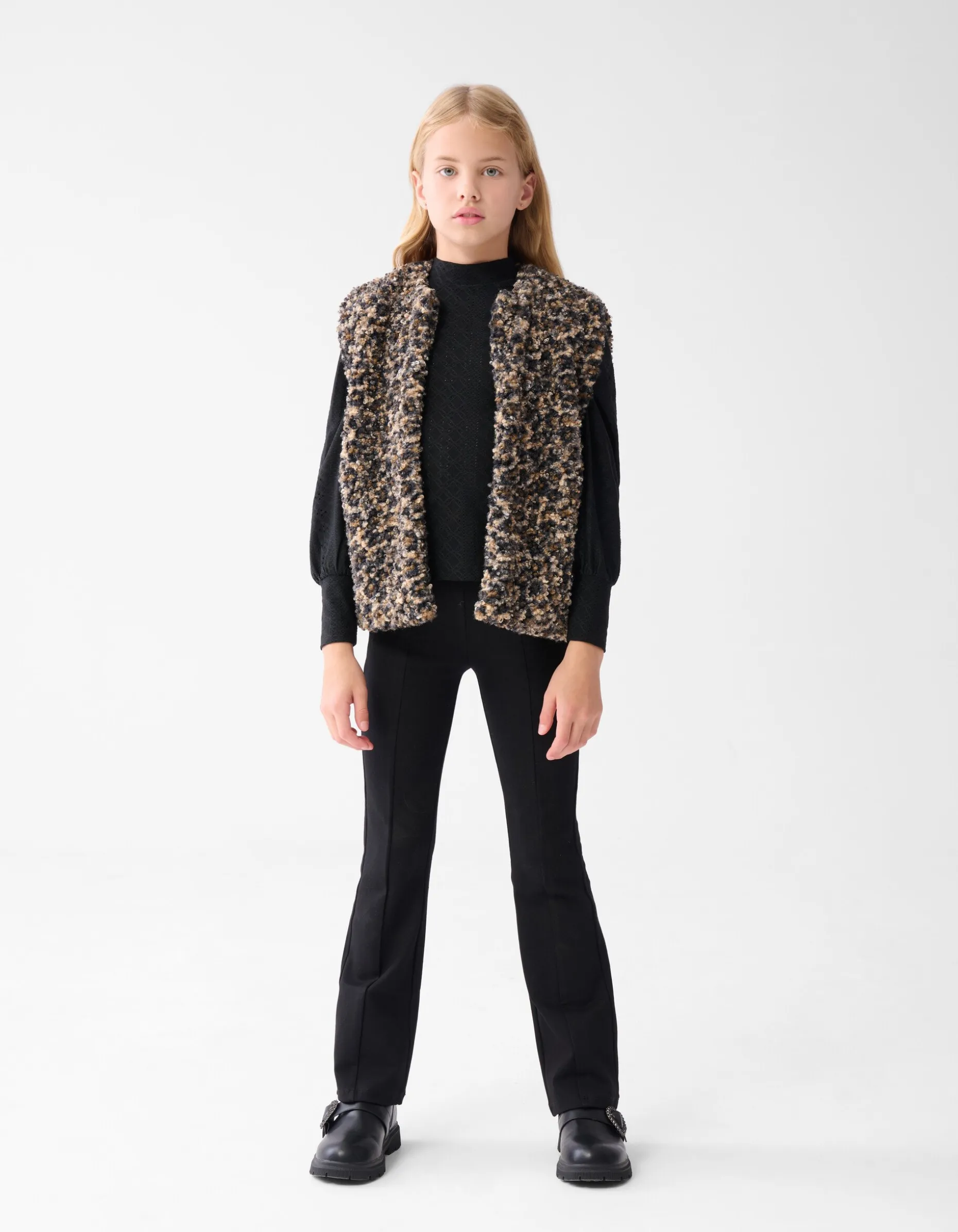 Musthave! De stretch legging heeft een hoge taille, een elastieke band en een aansluitende fit met een flared model. Het item wordt gekenmerkt door de zwarte kleur en de fijne stretch stof. Verder heeft de legging een stevige stof en een vouwnaad op de voorzijde. Het is gemaakt van viscose, polyester en elastaan. Door deze samenstelling is de broek kleurvast, vormvast, rekbaar, sterk van kwaliteit en comfortabel. Maak de look af met een gebreide trui, chunky sneakers en een lichtroze muts.