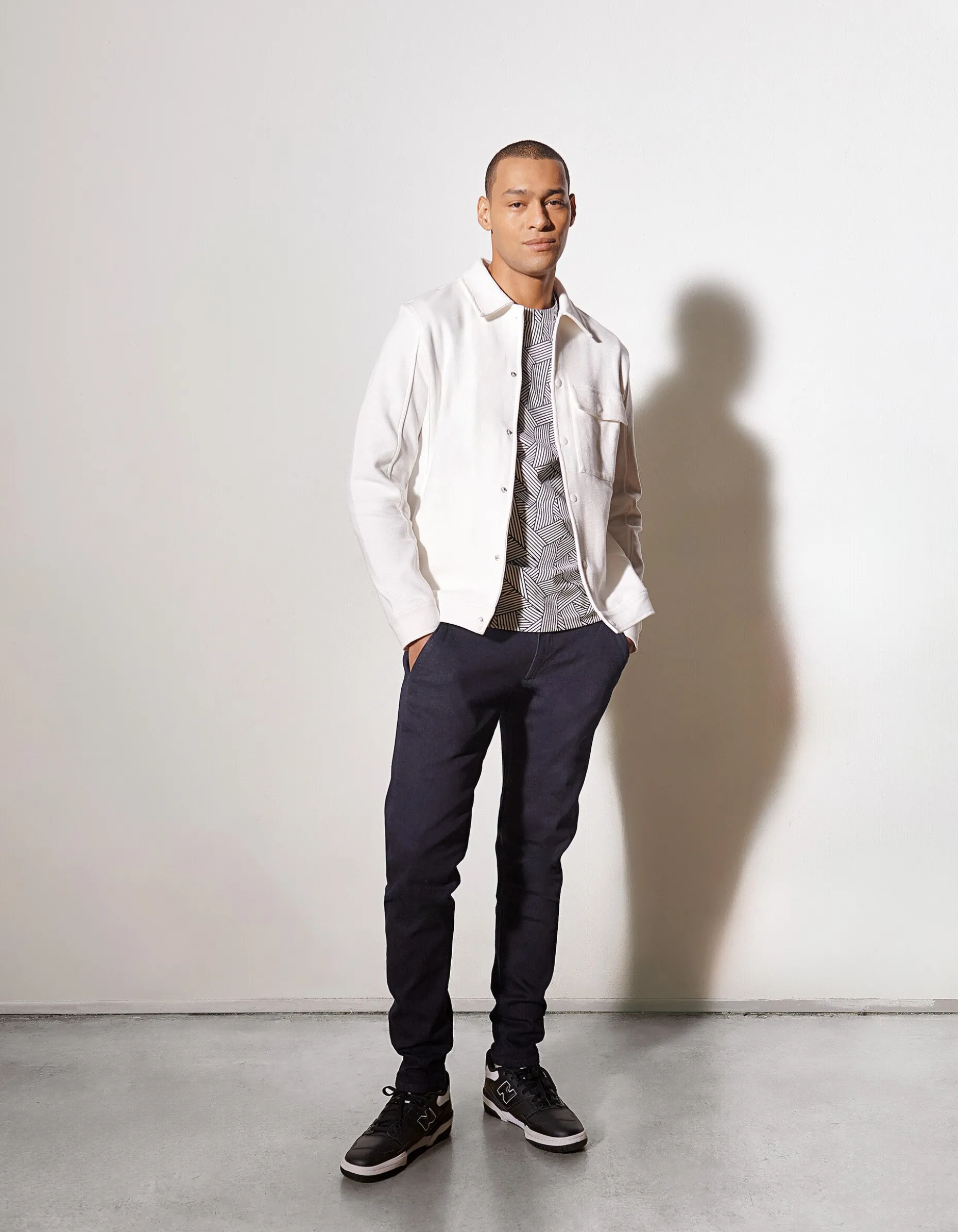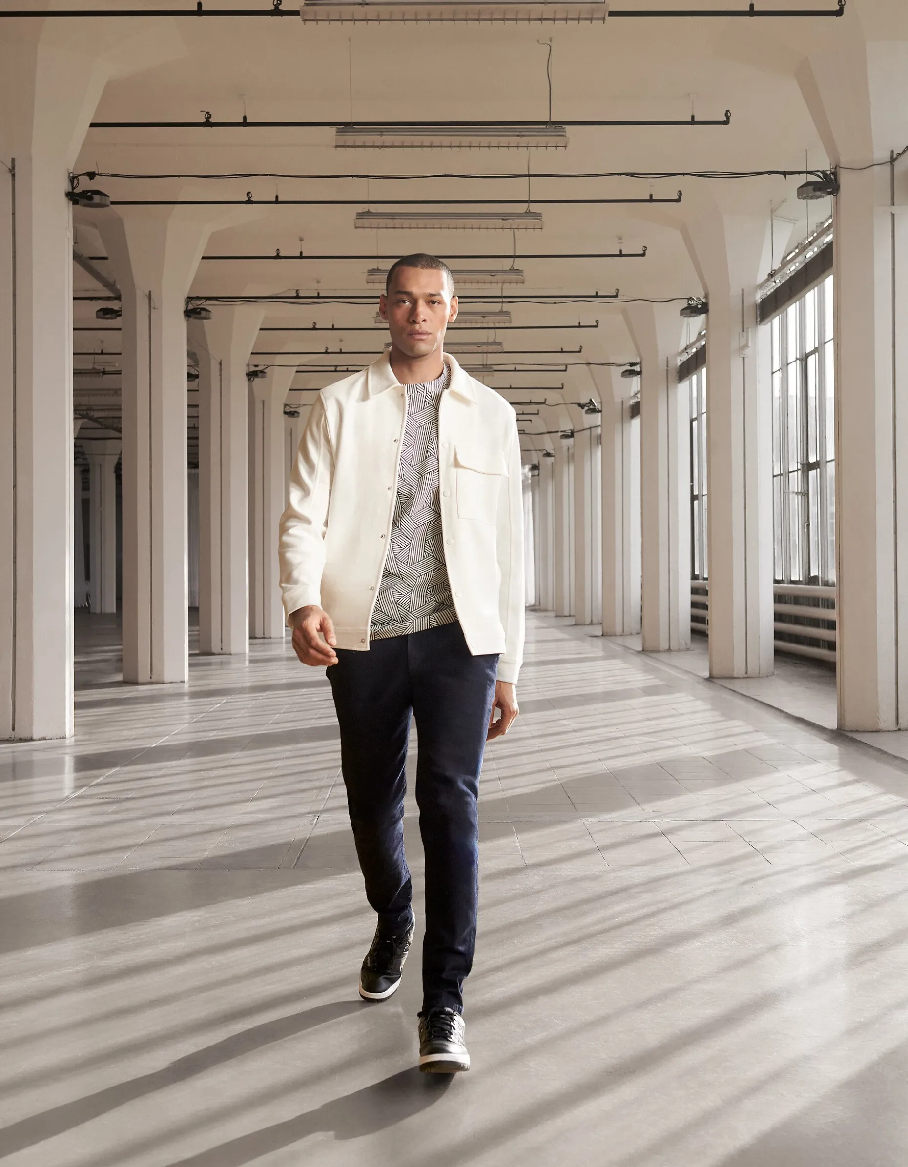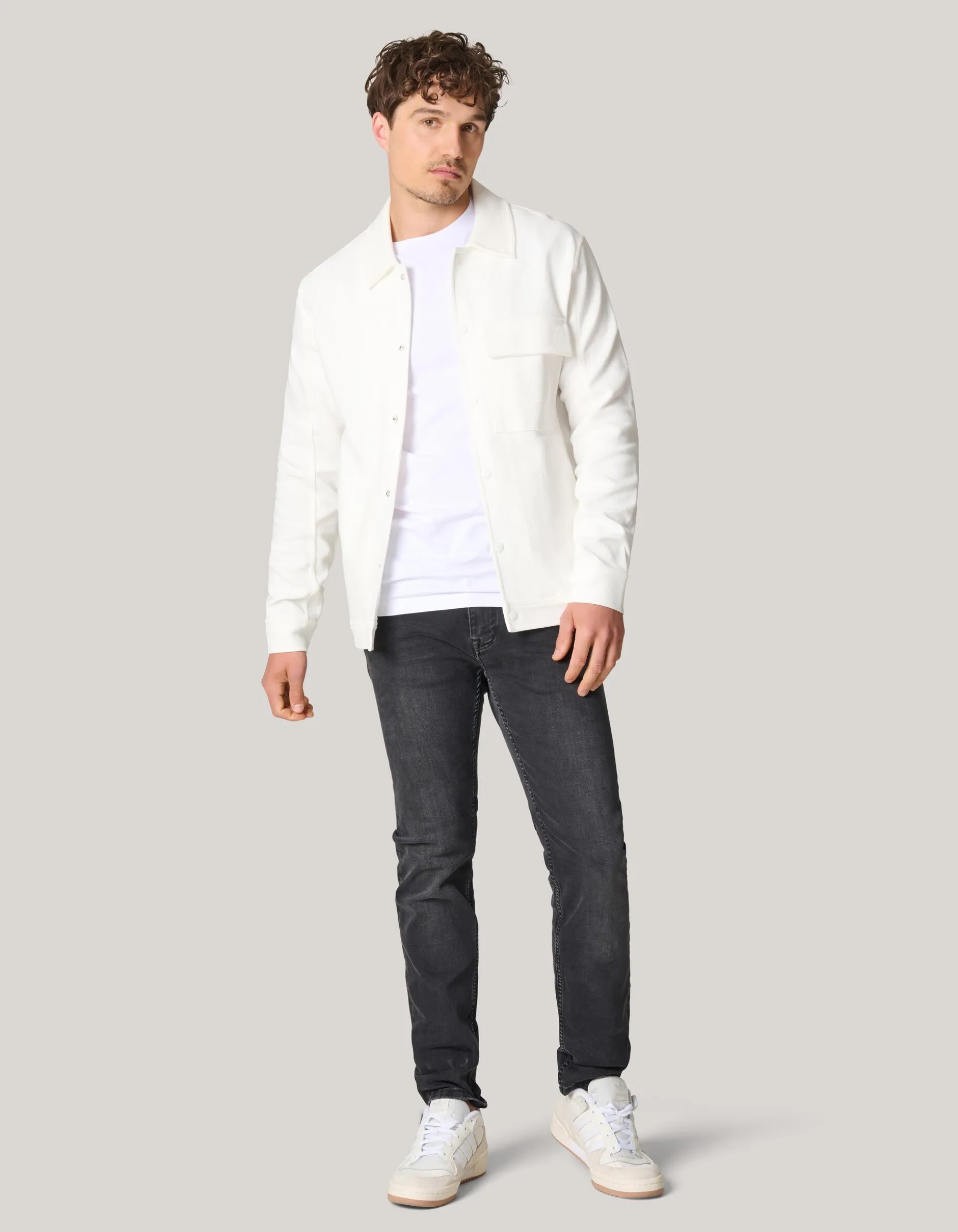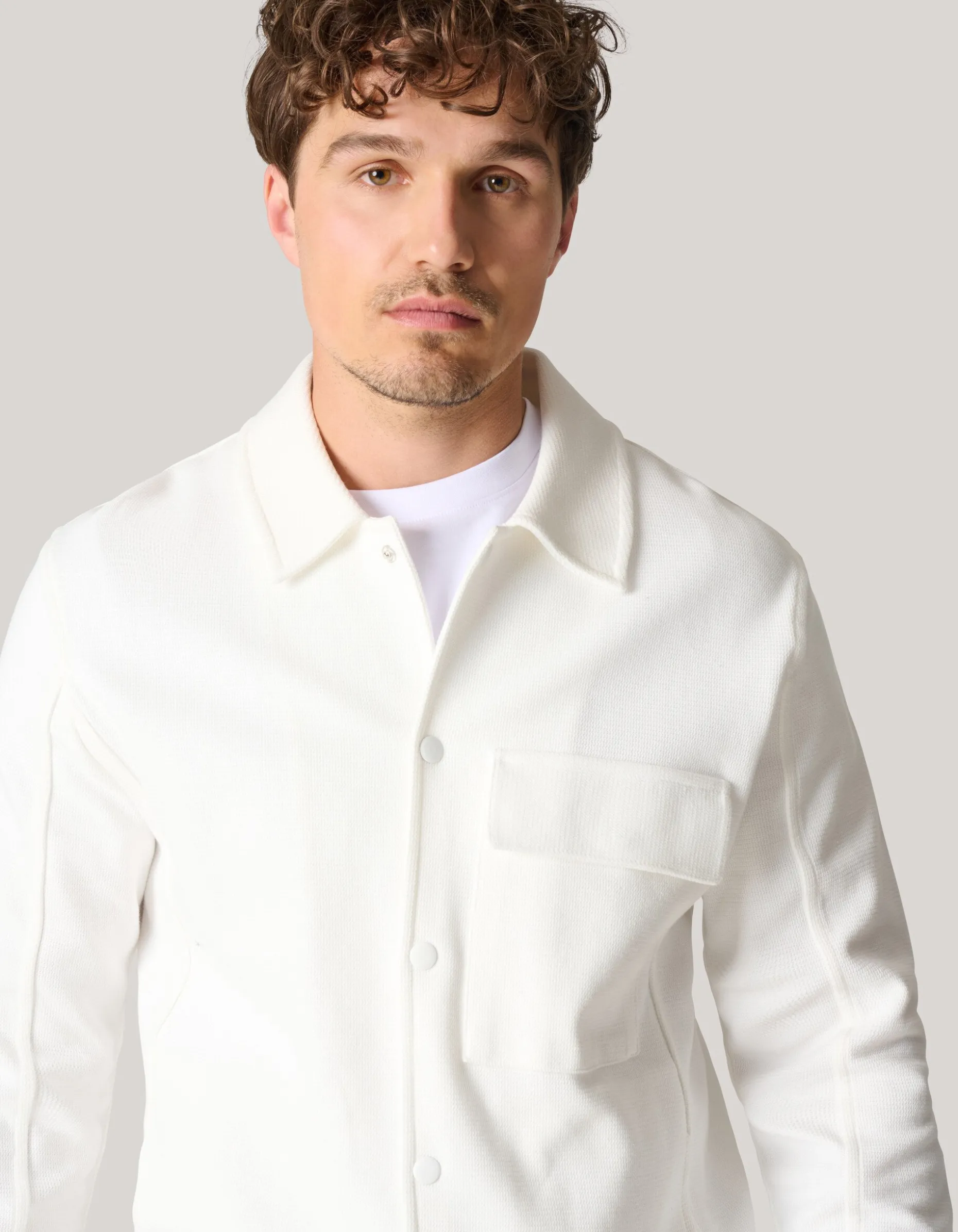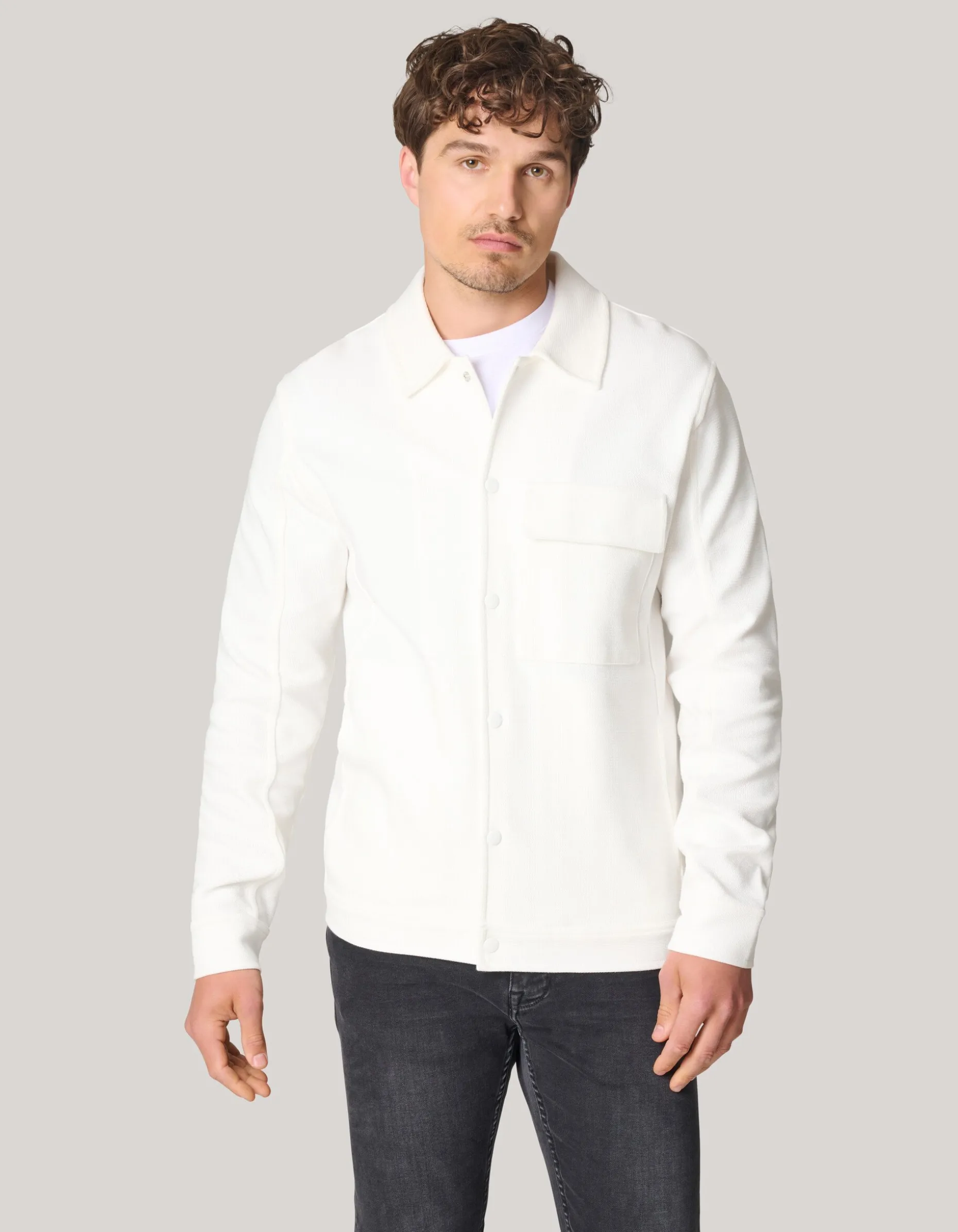 Seasonal musthave! Het Structuur Jack heeft lange mouwen, een kraag, een drukknoopsluiting, een stretch stof en een relaxed fit. Het item wordt gekenmerkt door de gebroken witte kleur met een all-over structuur in de stof verwerkt. Verder heeft het jack nog één klepzak op de voorzijde voor een stoer effect. Draag het samen met een sweater en een denim jeans en je bent ready to go! Het model heeft een lengte van 185 cm en draagt maat M. Het artikel heeft een totale lengte van 73,5 cm bij maat M.