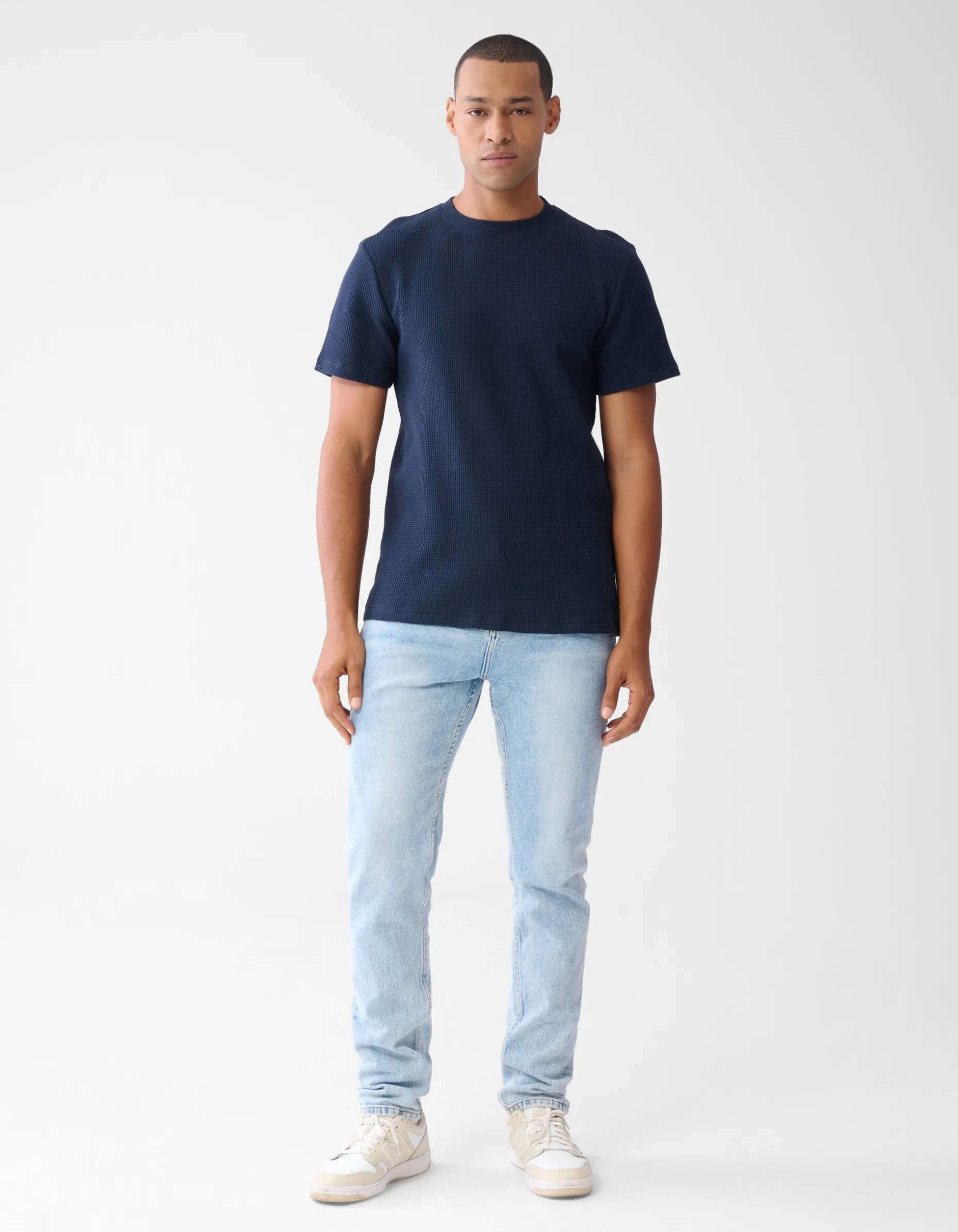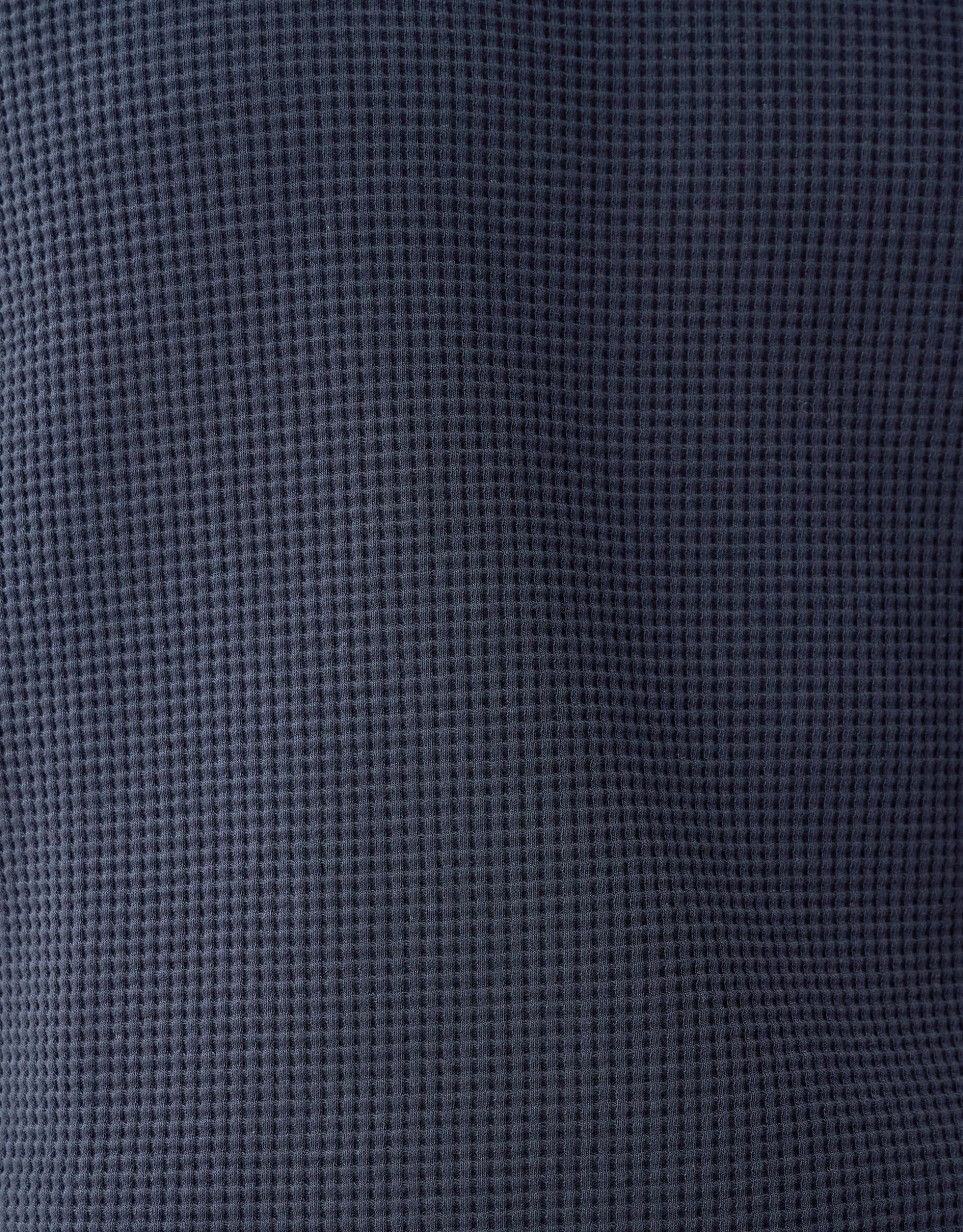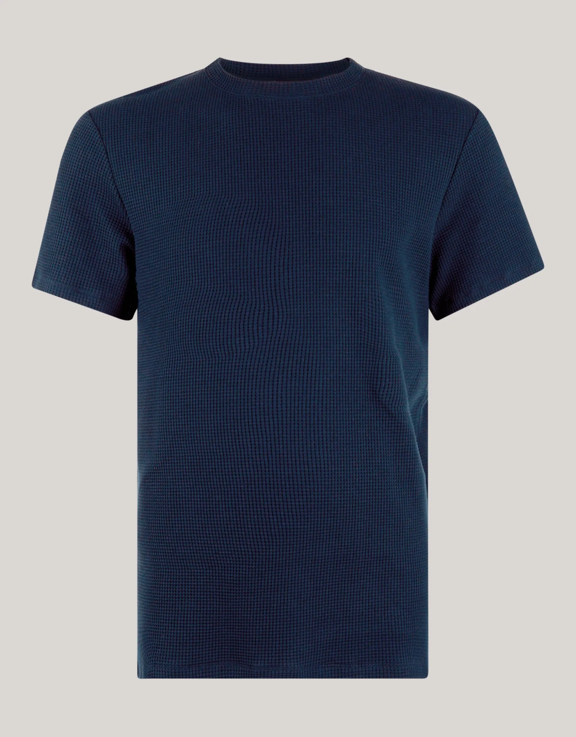 Comfy & stylish! Het Structuur T-shirt heeft korte mouwen, een ronde hals en een regular fit. Het item wordt gekenmerkt door de donkerblauwe kleur en de textuur in de stof. Verder is het shirt gemaakt van 100% katoen, hierdoor draagt het comfortabel. Het model is 185 cm en draagt maat M en het item heeft een totale lengte van 72 cm bij maat M.