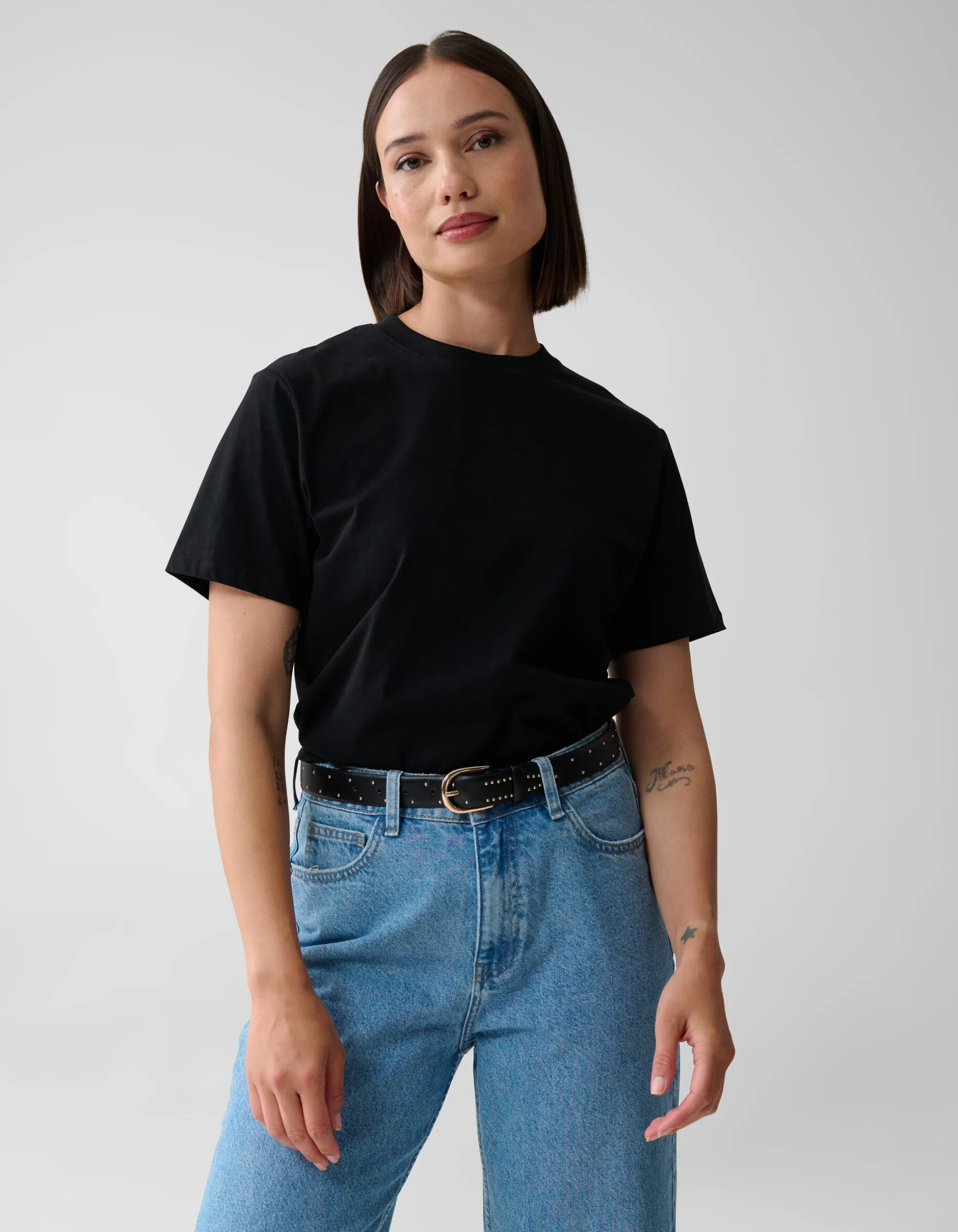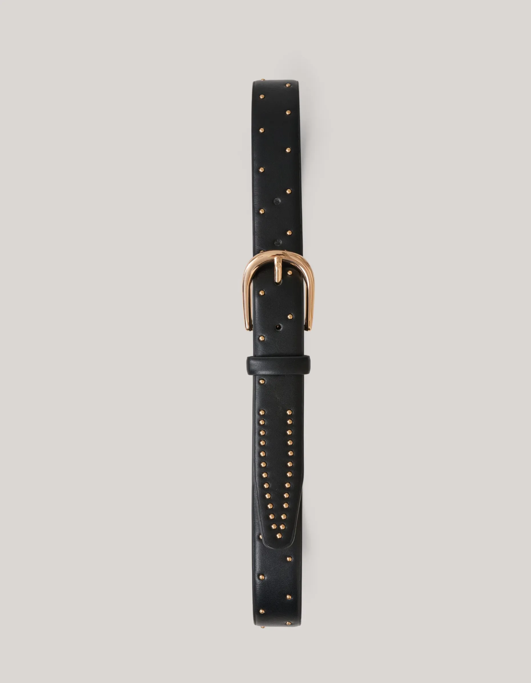 Musthave! Deze riem is de perfecte toevoeging voor al je outfits. De riem wordt gekenmerkt door de smalle vorm en de zwarte kleur. Verder heeft het item een goud kleurige gesp. De studs op de riem zorgen voor een stijlvol effect. Door de verstelgaatjes kan de riem perfect afgestemd worden met jouw lichaam. Draag de riem samen met je favoriete jeans van Shoeby!