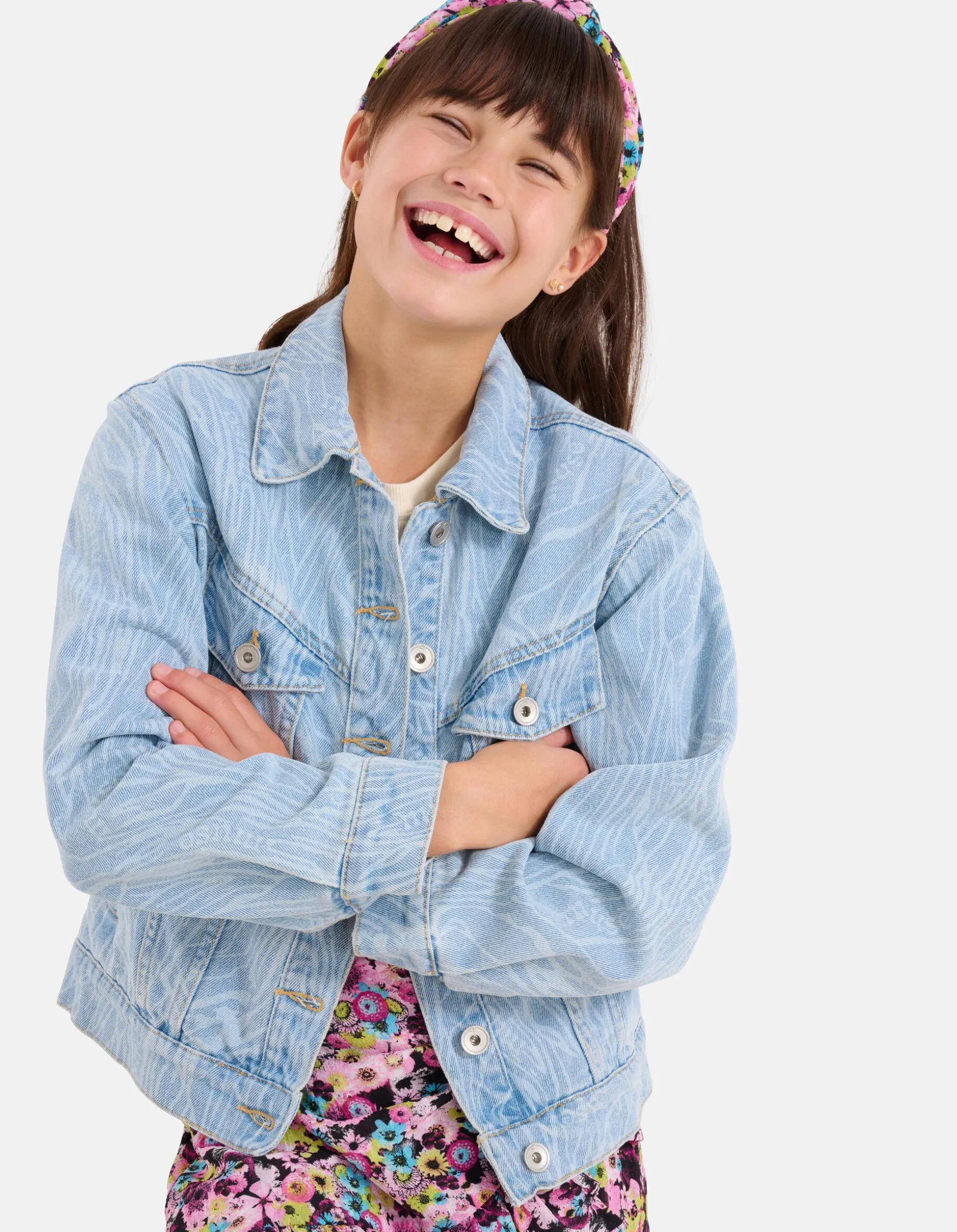 Iconic! Het Swirl Print Denim Jack heeft lange mouwen, een kraag, een knoopsluiting en een relaxed fit. Het item wordt gekenmerkt door de lichtblauwe kleur met een all-over bleached grafische swirl print. Verder heeft het jack twee klepzakken op de voorzijde en elastieke details aan de onderzijde. Het is gemaakt van katoen, polyester en elastaan. Door deze samenstelling is het jack sterk van kwaliteit, rekt het subtiel mee, draagt het comfortabel en is het vormvast. Draag het samen met een printed t-shirt en een legging voor een complete look! Door katoenproducten te kiezen van Shoeby, steunt je onze inverstering in de missie van Better Cotton.