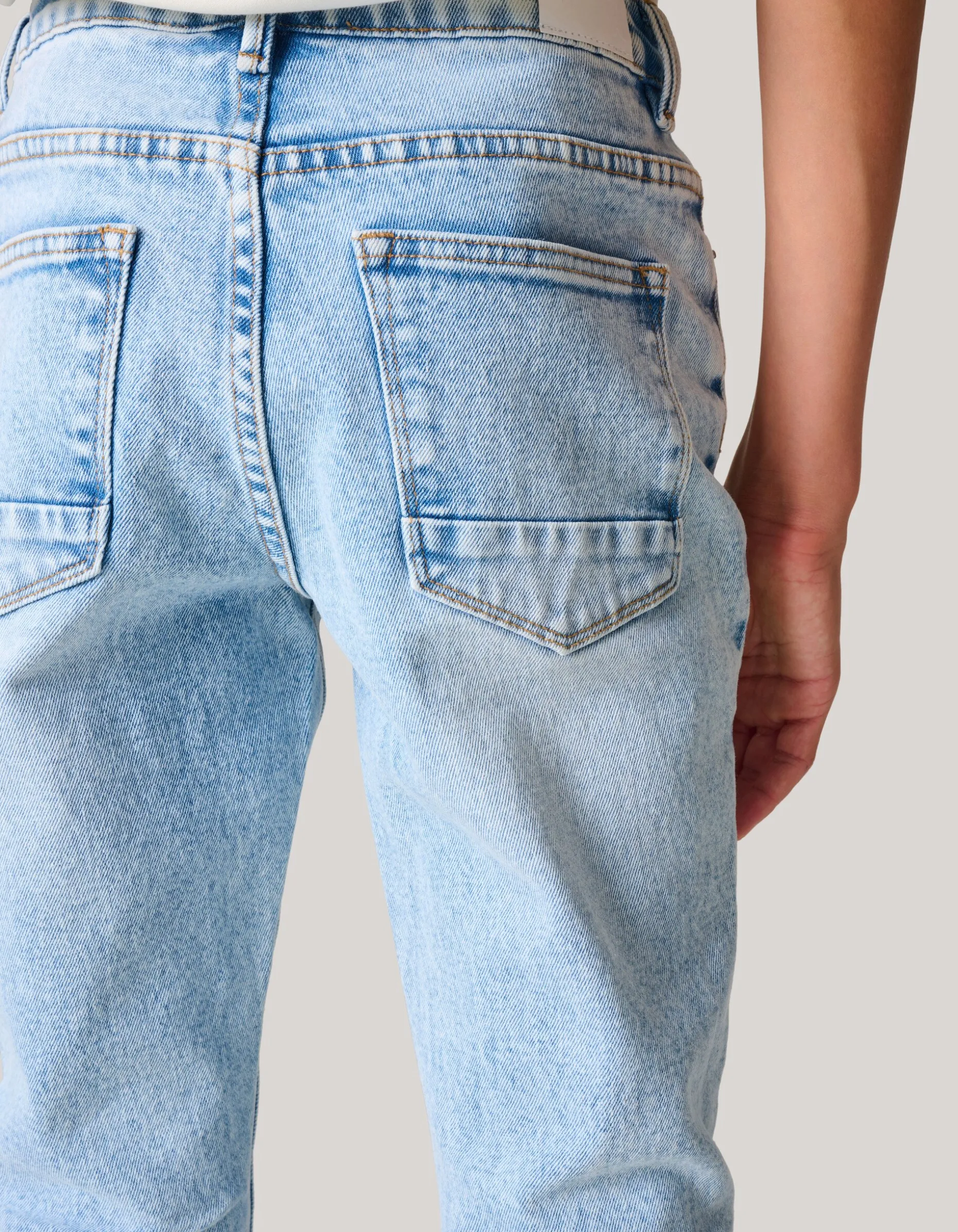 When in doubt wear denim! De Tapered Jeans heeft een middelhoge taille, een 5-pocket model, een verstelbare tailleband en een knoop-en ritssluiting. Het item wordt gekenmerkt door de lichtblauwe bleached wassing en een tapered fit. Een jeans met een tapered fit zit los bij de heupen, loopt taps naar beneden toe en vervolgens smal bij de enkels. Combineer het samen met een relaxed fit t-shirt of een printed sweater voor een casual look!