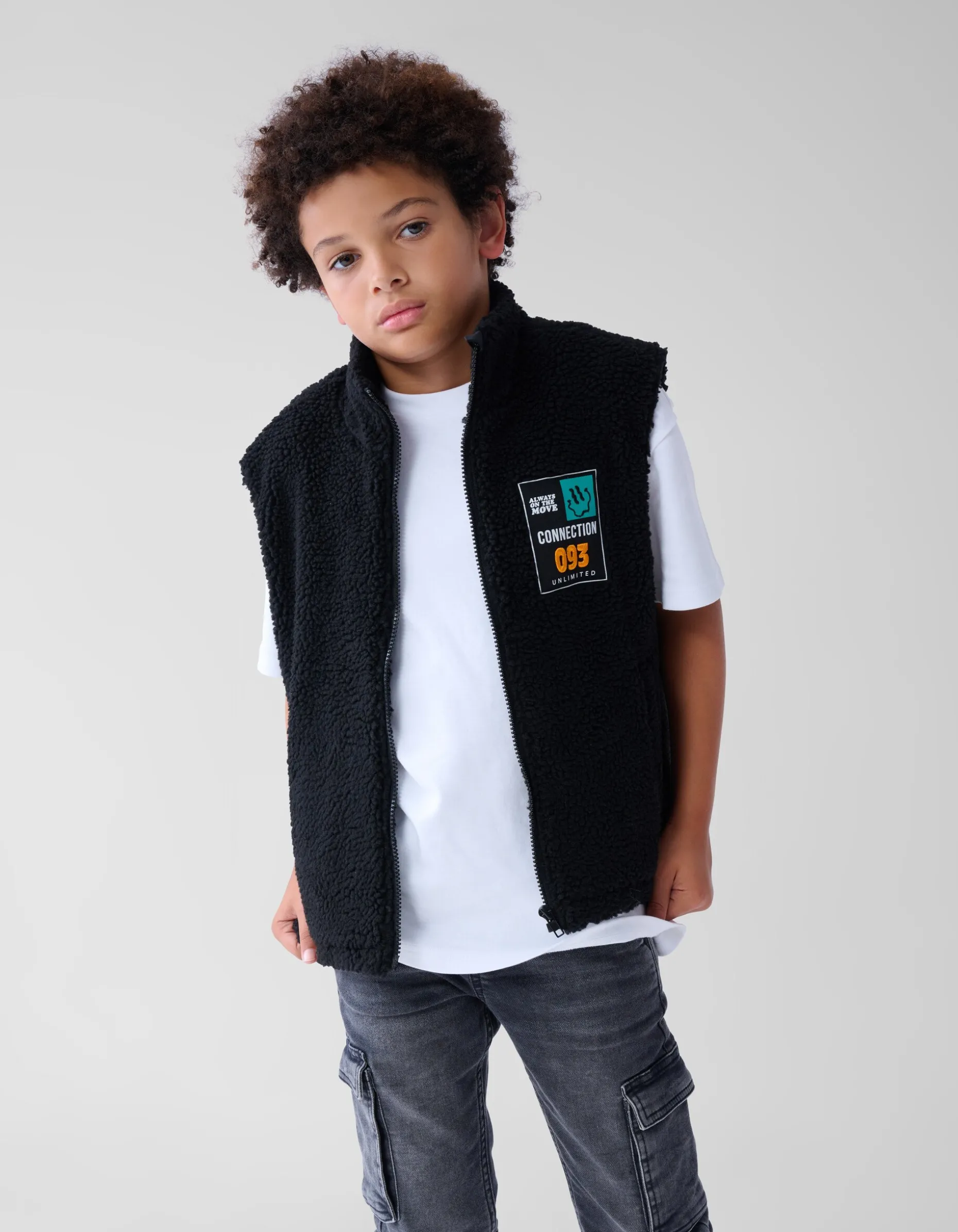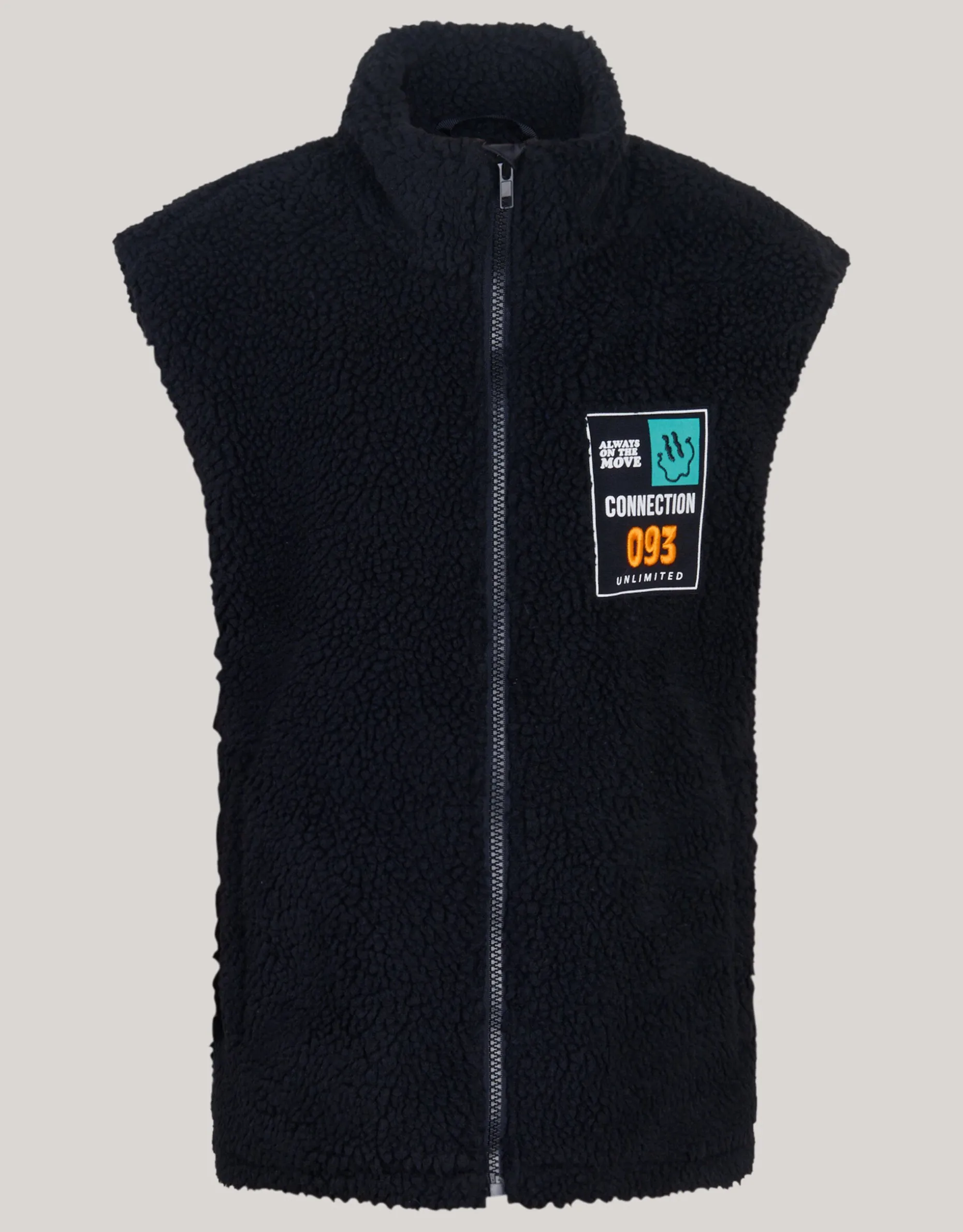 Trend Alert! Het Teddy Bodywarmer Zwart heeft een non-stretch stof, ritssluiting, hoge hals en een zwarte kleur. Verder wordt de bodywarmer gekenmerkt door de mouwloze fit en het artwork op de borst. De bodywarmer is gemaakt van polyester, hierdoor is het sterk van kwaliteit en vormvast. Combineer de bodywarmer met een stoere sweater voor een complete look!