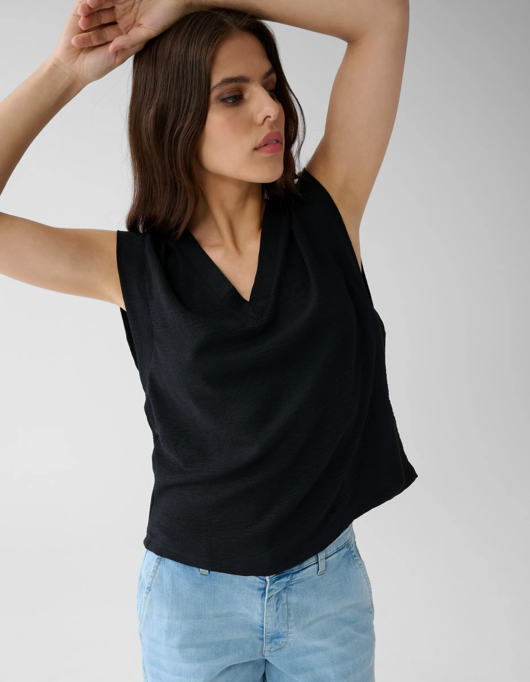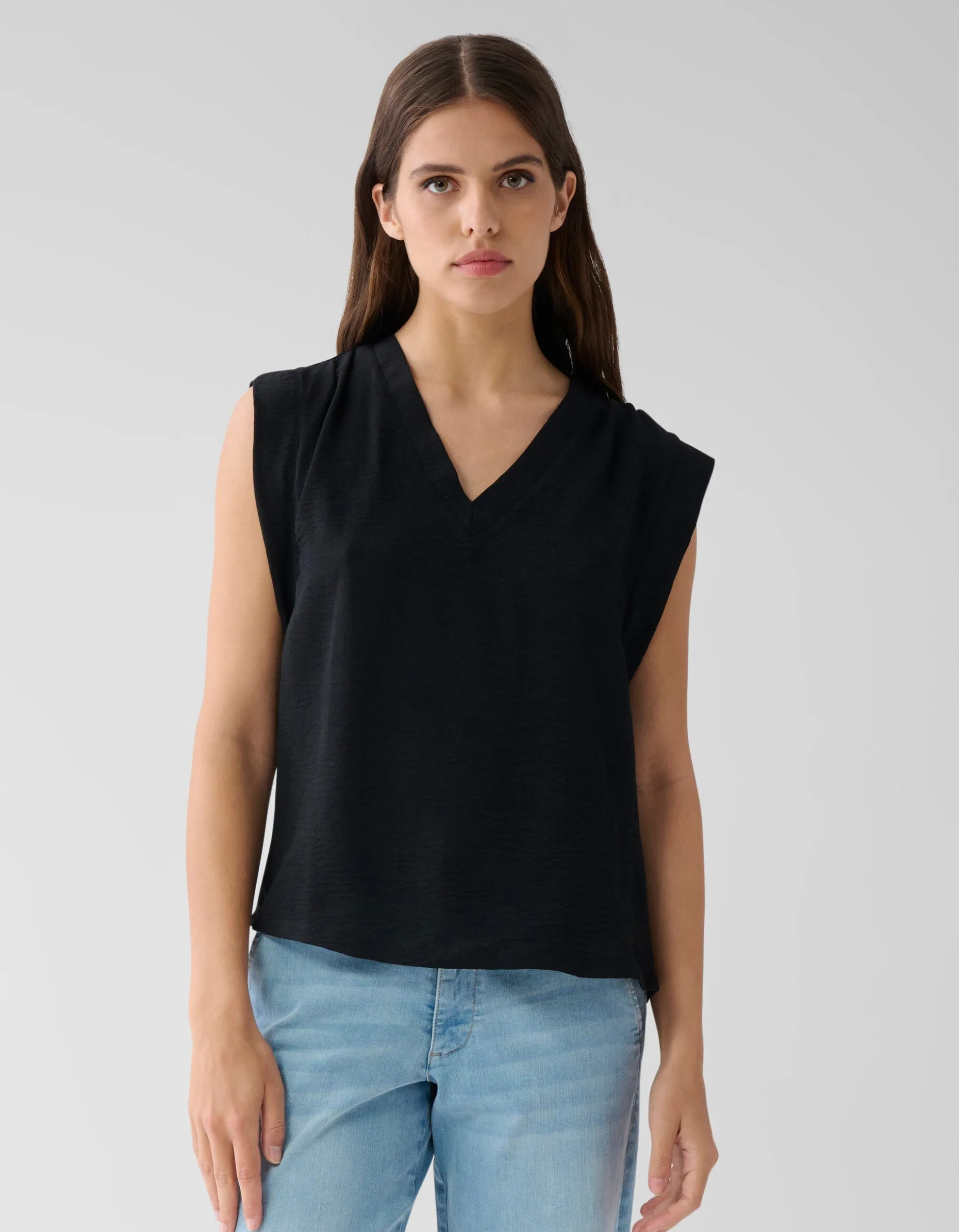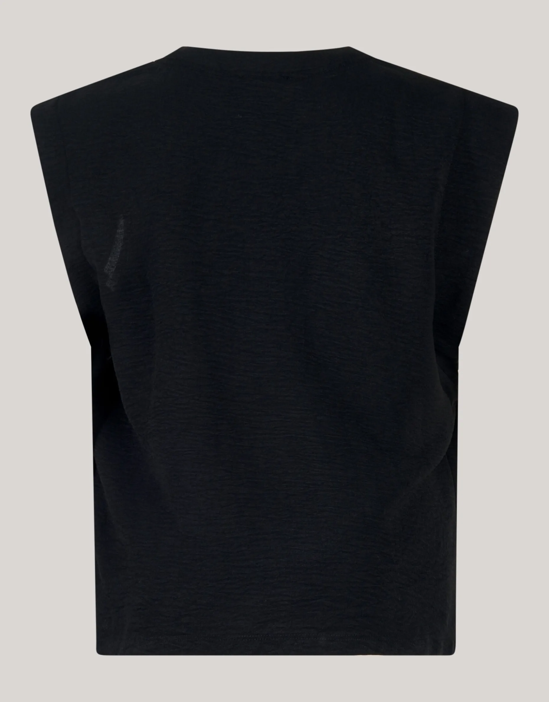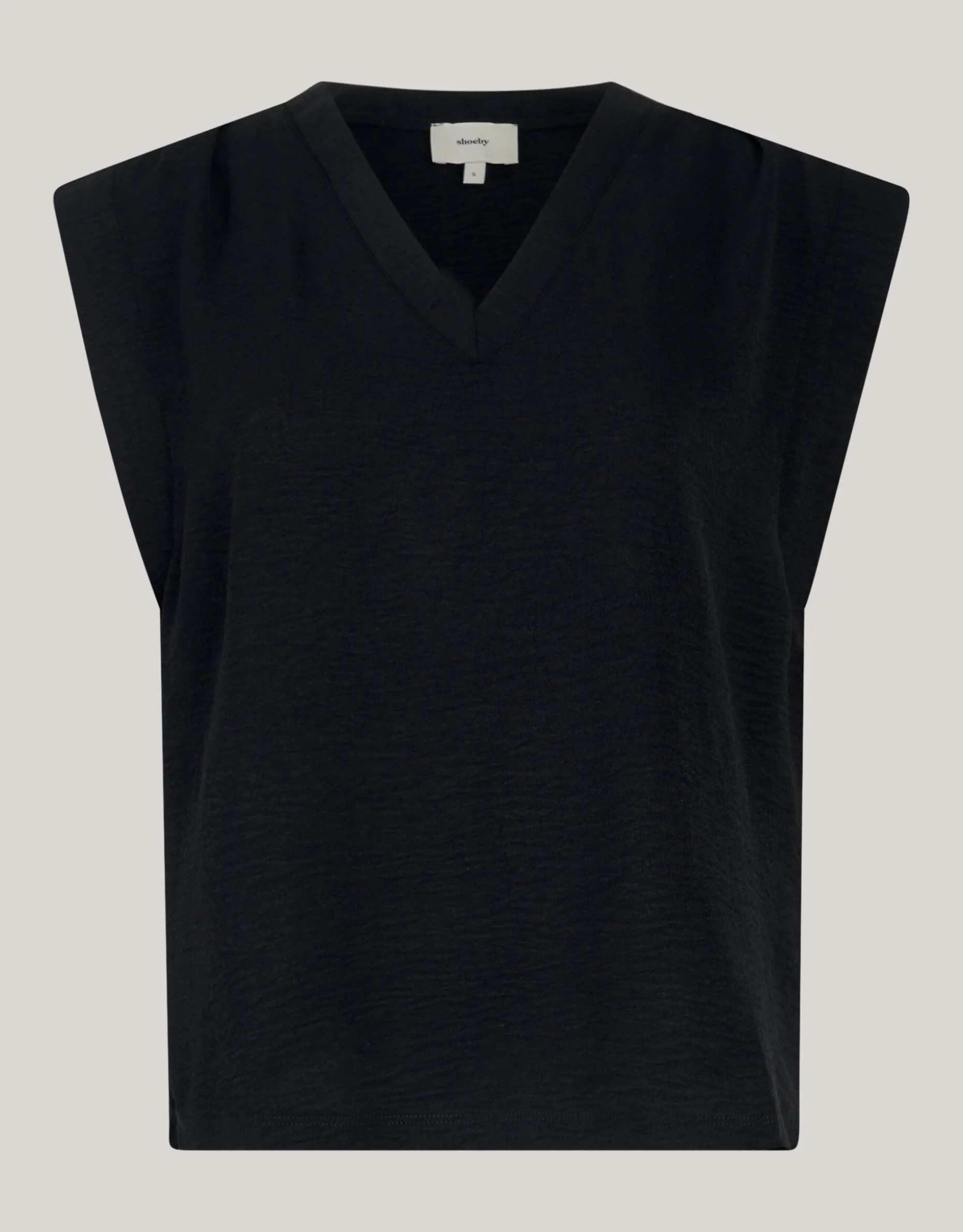 Musthave! De V-hals Top is mouwloos, heeft een v-hals en een regular fit. Het item wordt gekenmerkt door de zwarte kleur. De top is gemaakt van polyester, waardoor het kleur- en vormvast is en geen stretch heeft. Het model is 176 cm en draagt maat S. De top heeft een totale lengte van 63 cm bij maat S.