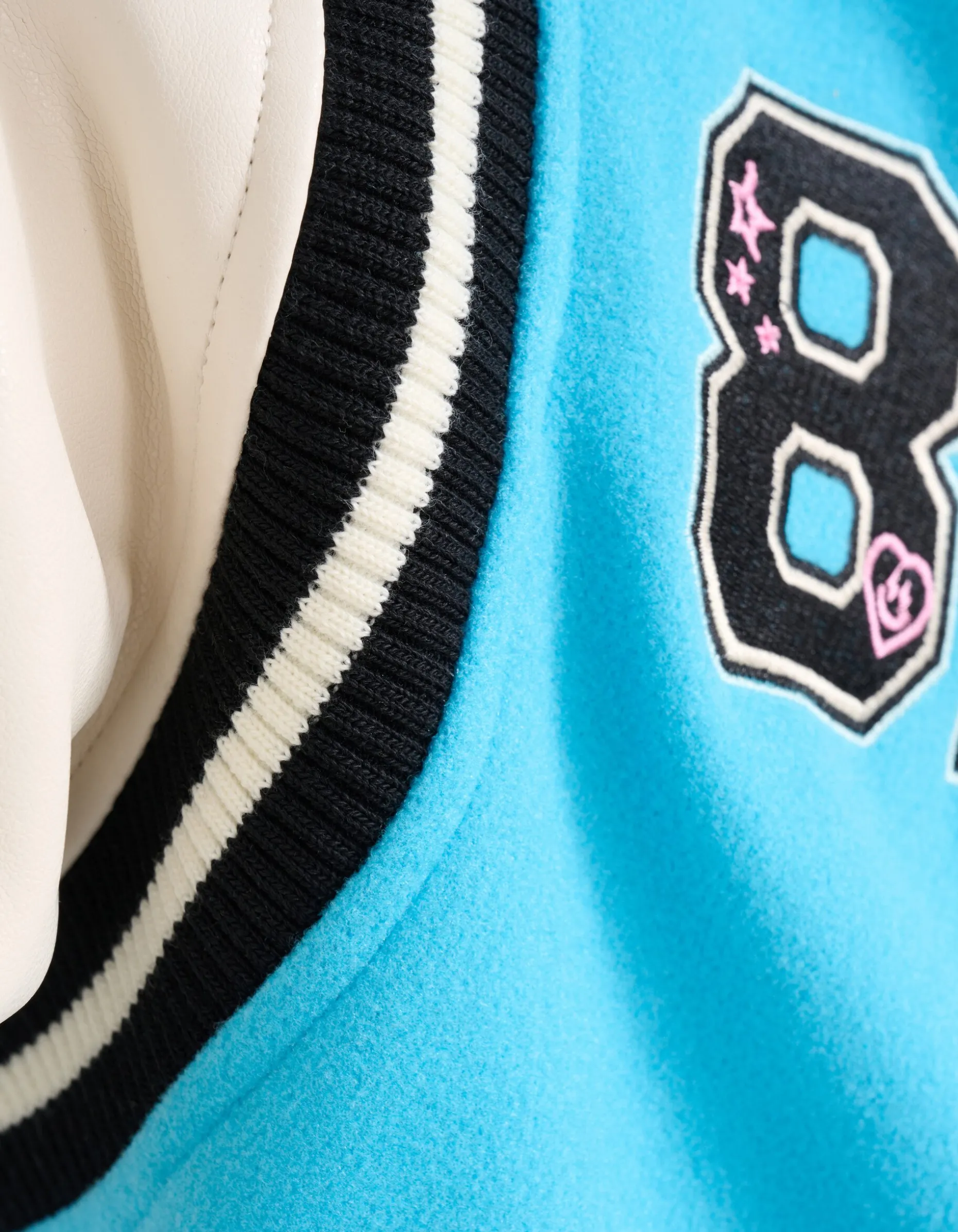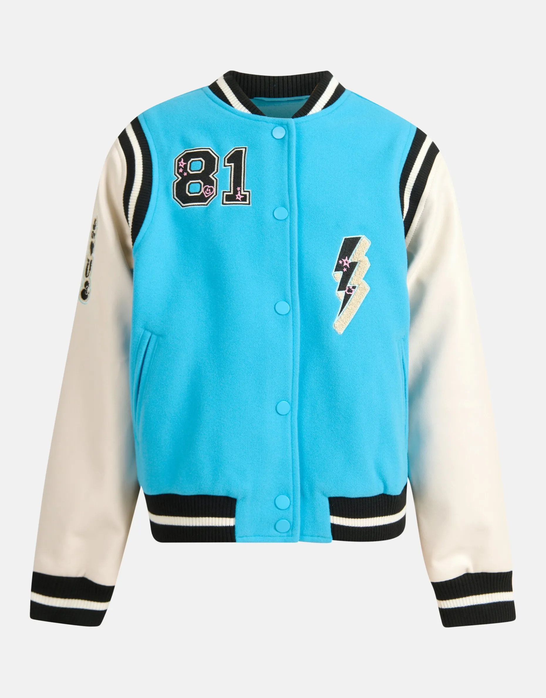 Get ready to make a statement that leaves a lasting impression! Het Varsity Jack heeft lange mouwen, een hoge ronde hals, een binnenvoering, een drukknoopsluiting, een non-stretch stof, insteekzakken en een regular fit. Het item wordt gekenmerkt door de vegan leren mouwen, de blauwe kleur met sportieve elastieke details. Verder heeft het jack geborduurde details op de voor-en achterzijde voor een edgy effect! Het is gemaakt van polyester. Door deze samenstelling is het sterk van kwaliteit en vormvast. Combineer het samen met een oversized tee en een stoere denim voor een complete look!