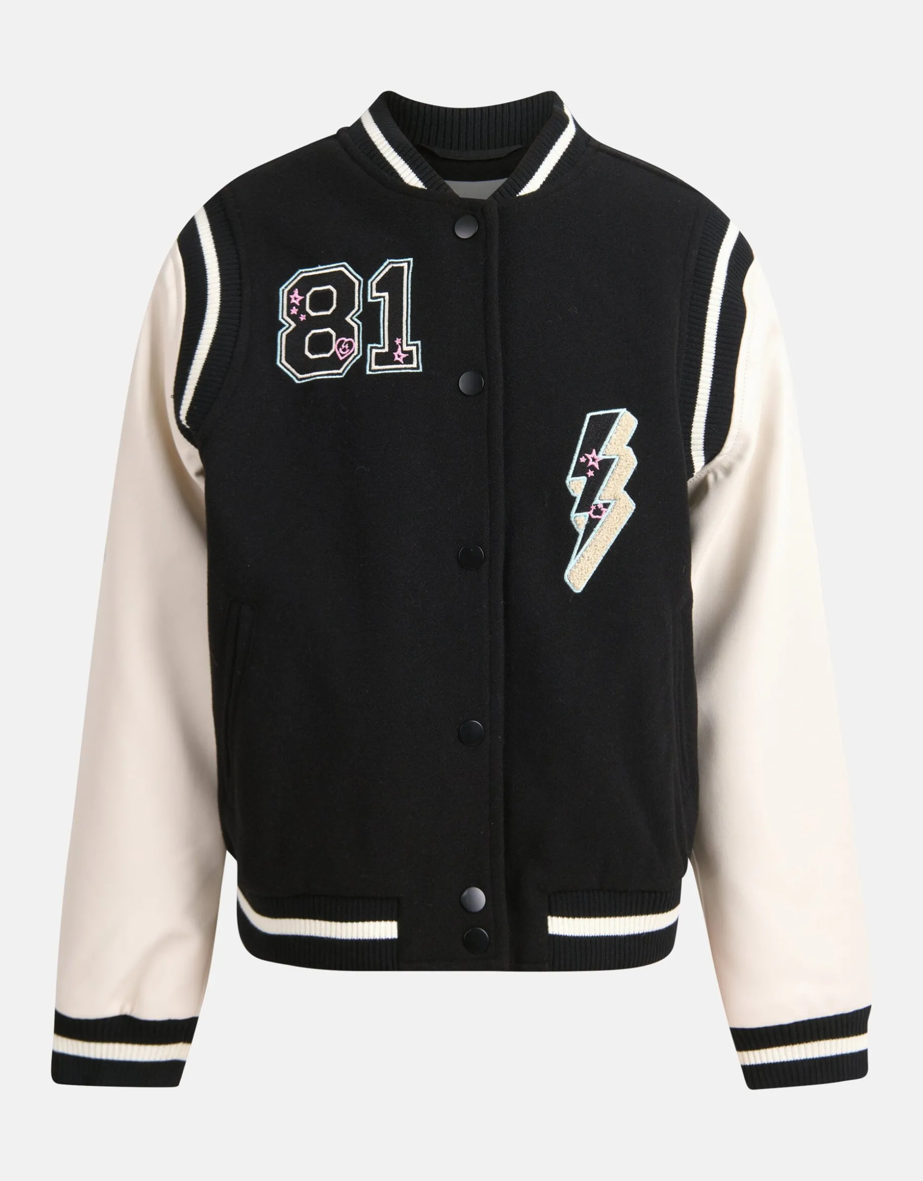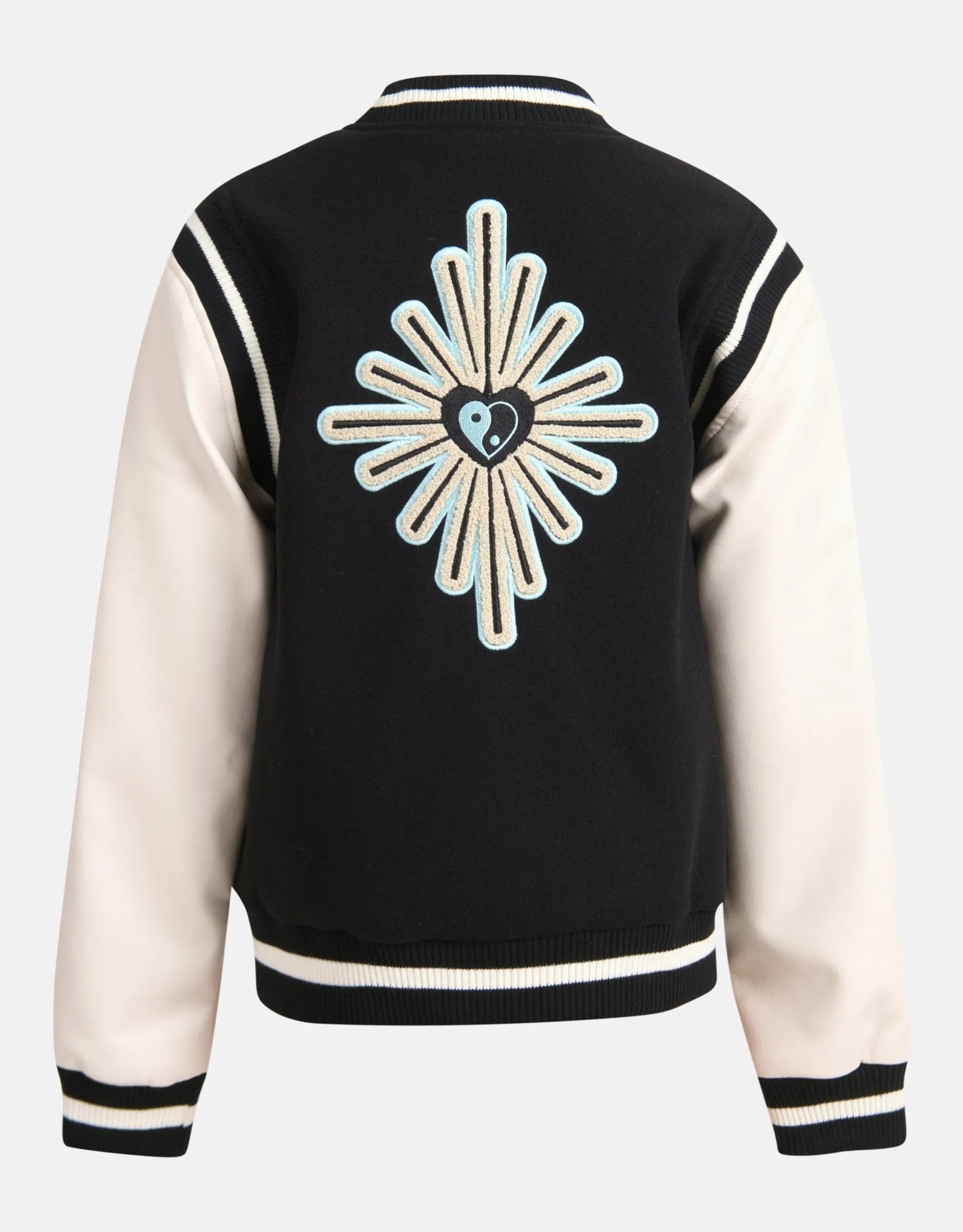 Every stitch, every detail, crafted with love by Shoeby! Het Varsity Jack heeft lange mouwen, een hoge ronde hals, een binnenvoering, een drukknoopsluiting, een non-stretch stof, insteekzakken en een regular fit. Het item wordt gekenmerkt door de vegan leren mouwen, de zwarte kleur met sporty elastieke details. Verder heeft het jack geborduurde emblemen op de voor-en achterzijde voor een edgy effect! Het is gemaakt van polyester. Door deze samenstelling is het sterk van kwaliteit en vormvast. Combineer het samen met een sweater en een stoere denim jeans voor een complete on-trend look!