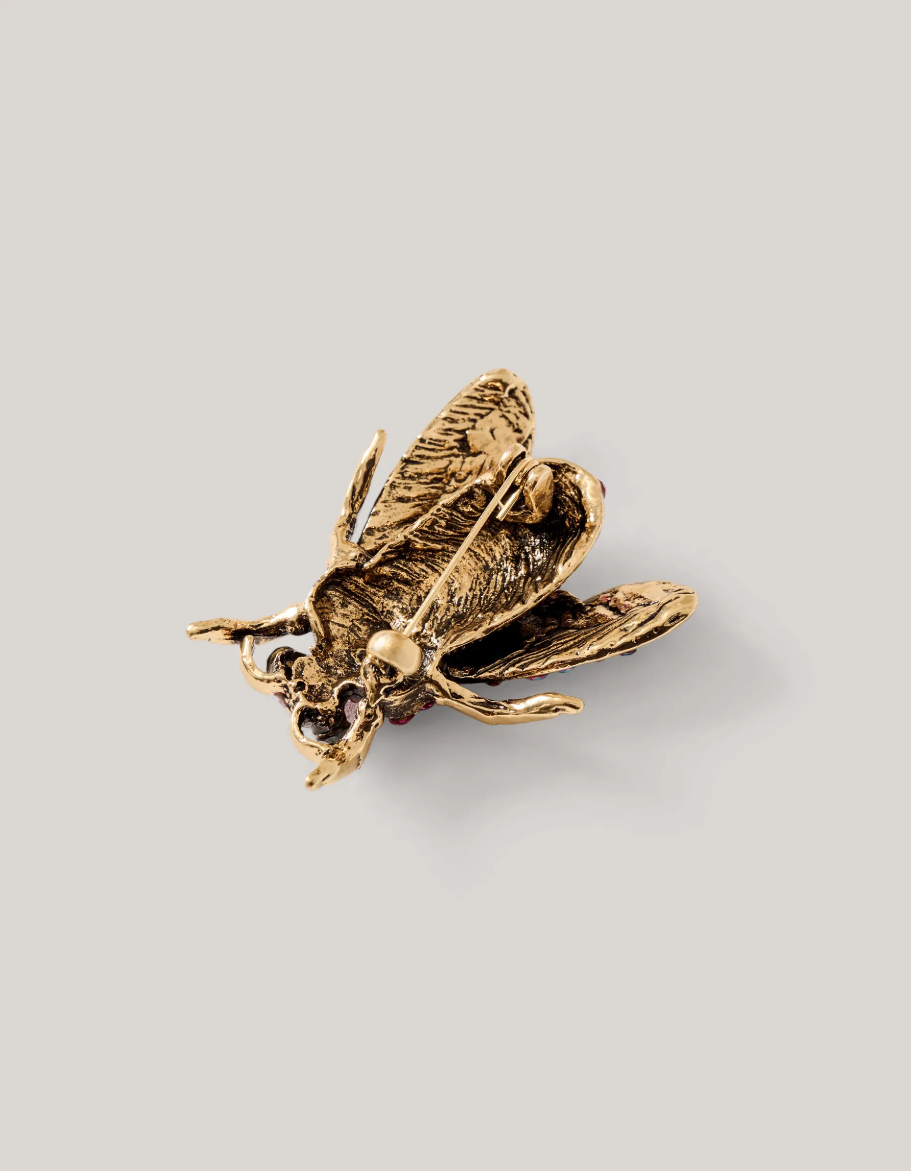 Let your outfit shine! De Grote Vlieg Broche wordt gekenmerkt door de gouden kleur met roze strass steentjes. Via de veiligheidsspeld op de achterzijde kan je het artikel vastmaken aan elk kledingstuk. The perfect finishing touch for any outfit!