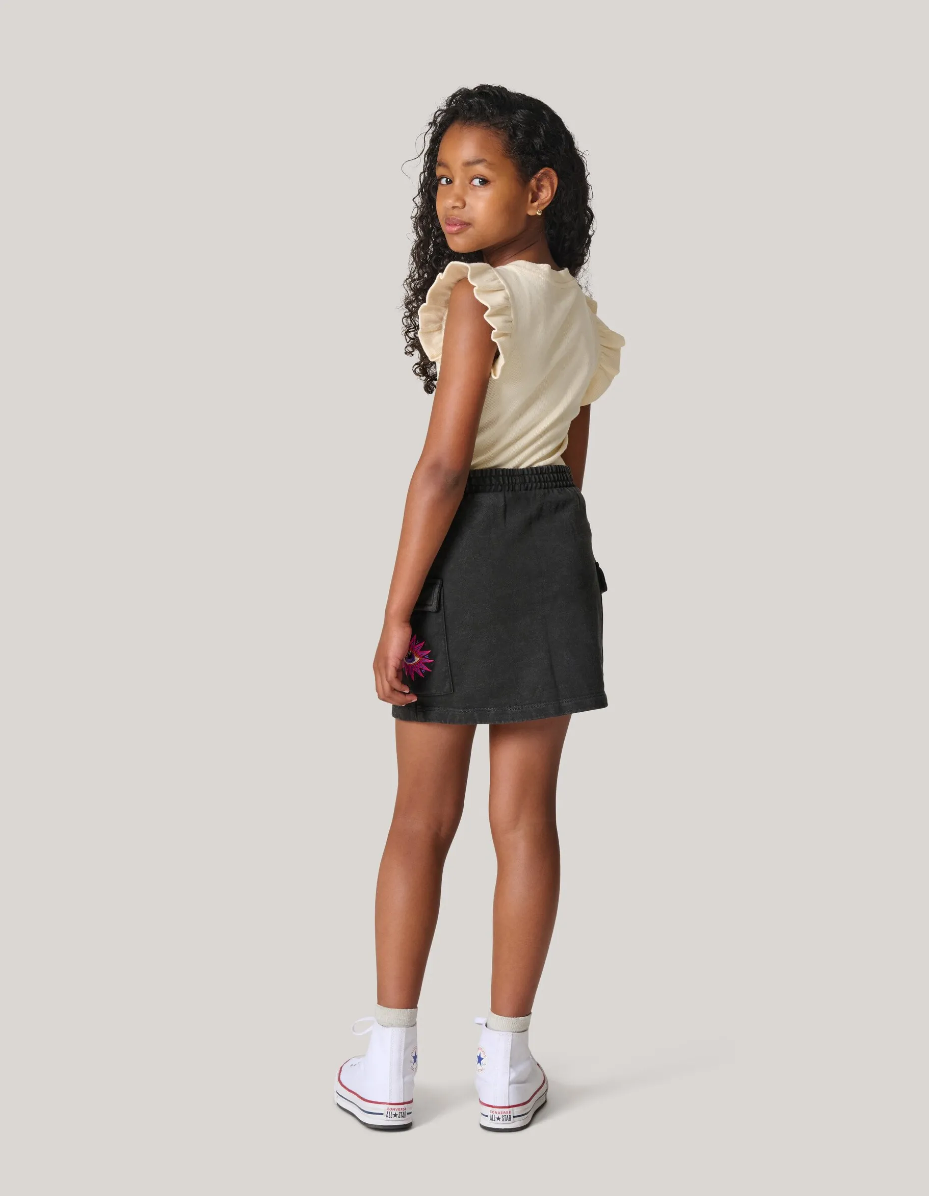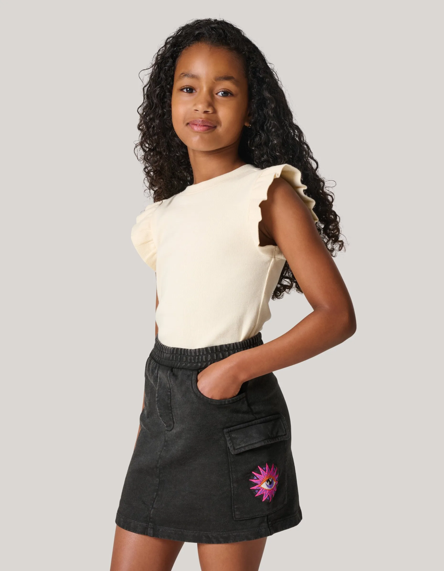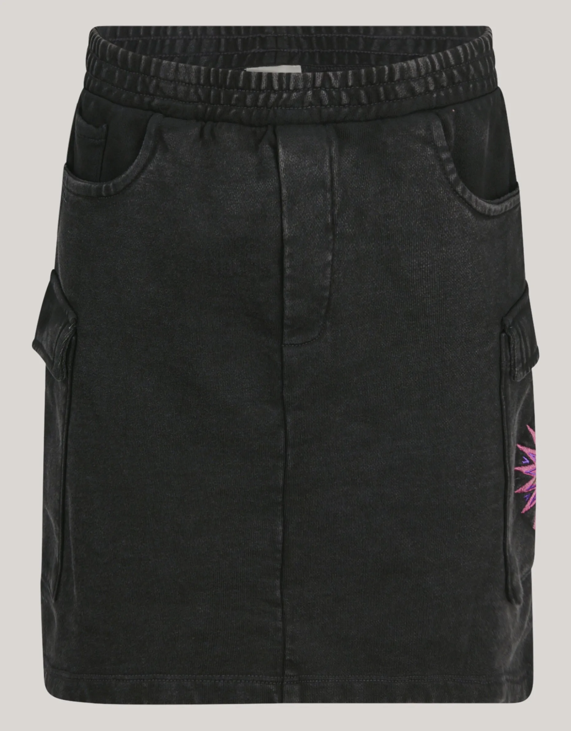 Deze stoere Washed Mini Rok is perfect voor alle gelegenheden. Met een hoge taille, mini lengte, uiteenlopende fit voegt het een stoere touch toe aan elke outfit. Verder heeft de rok aan de bovenkant een elastieken band, heeft het een donkergrijze washed kleur en zit er aan de zijkant op de zak een patch op gebordureerd in een roze kleur. Combineer de rok met een leuke top voor een toffe outfit. Verder is de rok gemaakt van katoen. Hierdoor is het sterk van kwaliteit en heeft het stretch.